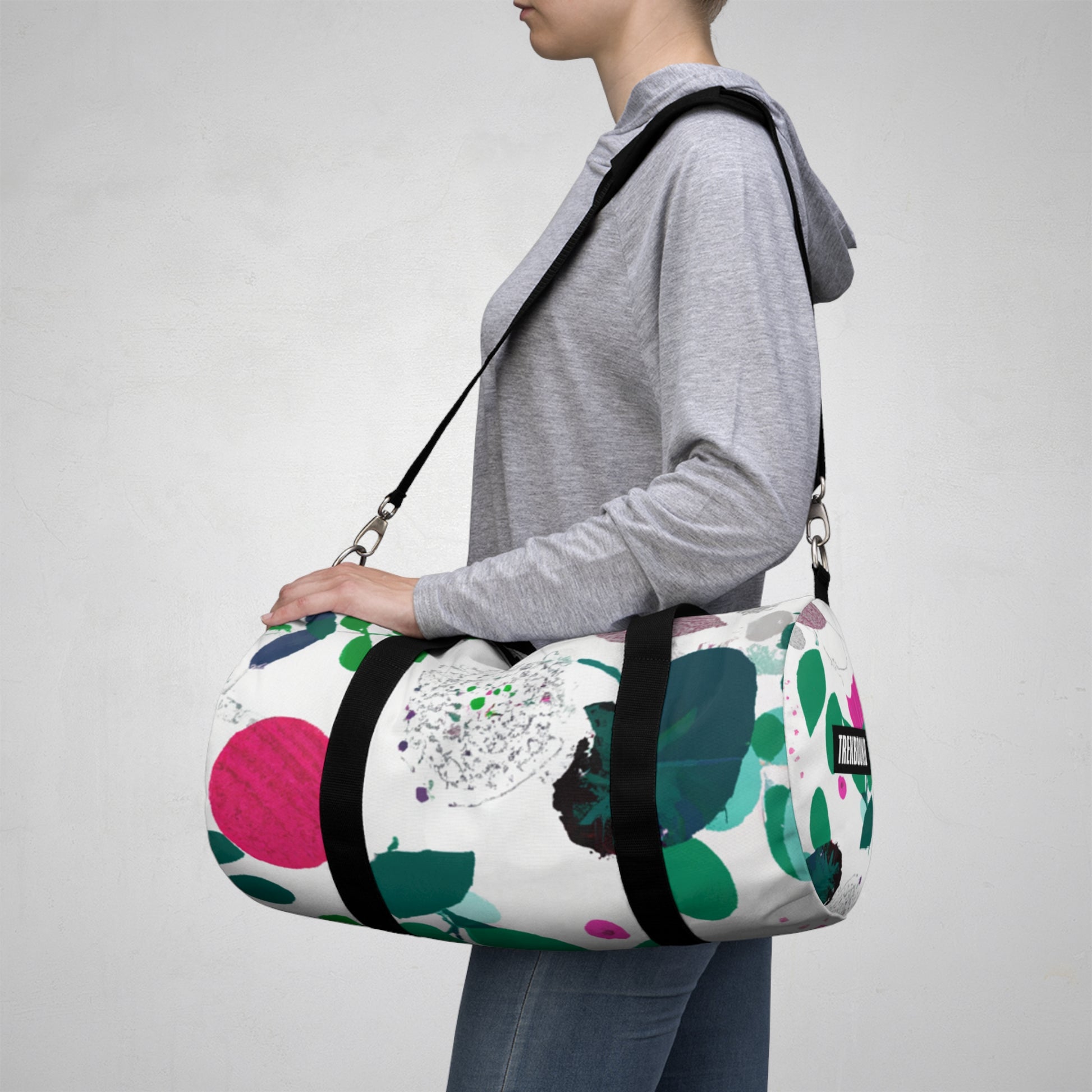 This stylish duffel bag is sure to turn heads with its trendy floral design inspired by the creative genius of Jessica Wilde. Its spacious interior offers plenty of room for all your accessories, while the two exterior pockets offer organizational options. Whether you’re going to the gym or on vacation, this stylish duffel bag is a must. #fashion #style #duffelbag #jessicawilde #pattern #floral #bag #accessories #lifestyle #travel #organization