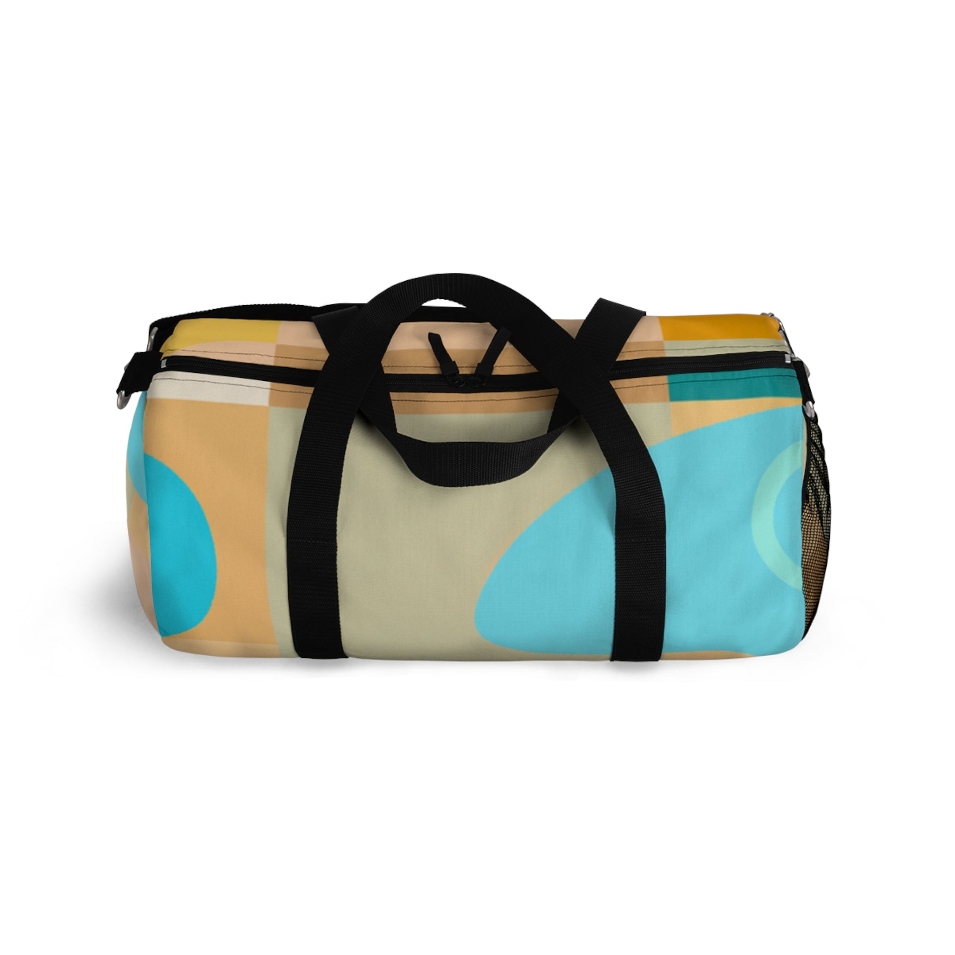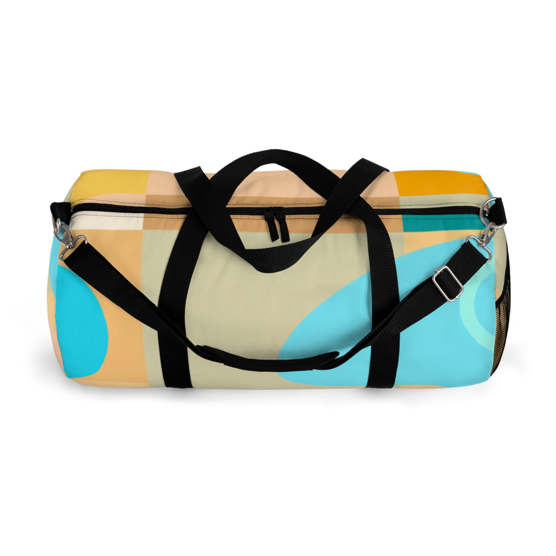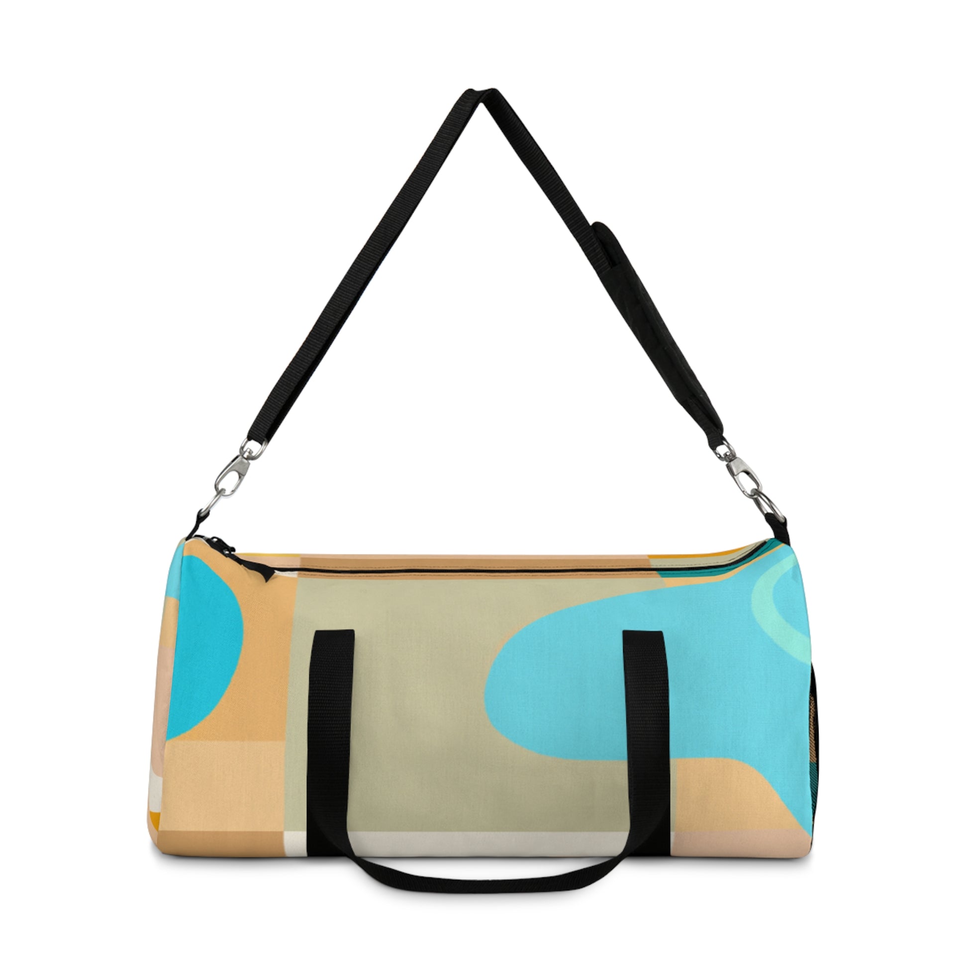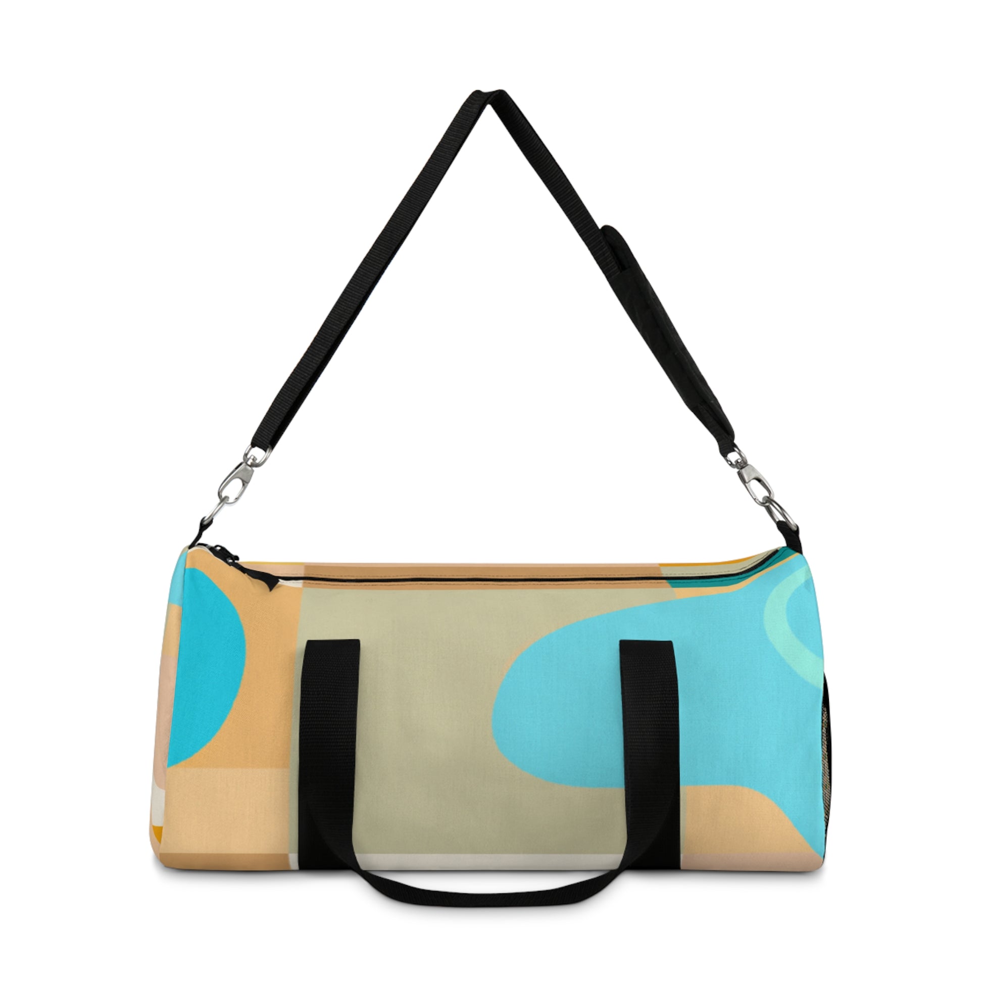 This stylish duffel bag combines abstract geometric pattern with vivid, cool colors adding a modern edge to your weekend look. The roomy interior is perfect for carrying all of your essentials, whether you’re hitting the gym or off to a weekend hideaway. Padded shoulder straps and multiple pockets make it comfortable and easy to carry. #travelbag #duffelbag #summerstyle #weekendlook #abstractgeometric #coolcolors #stylisheveryday #everydayessentials #paddedshoulderstrap #weekendhideaway #roomyinterior #modernstyle