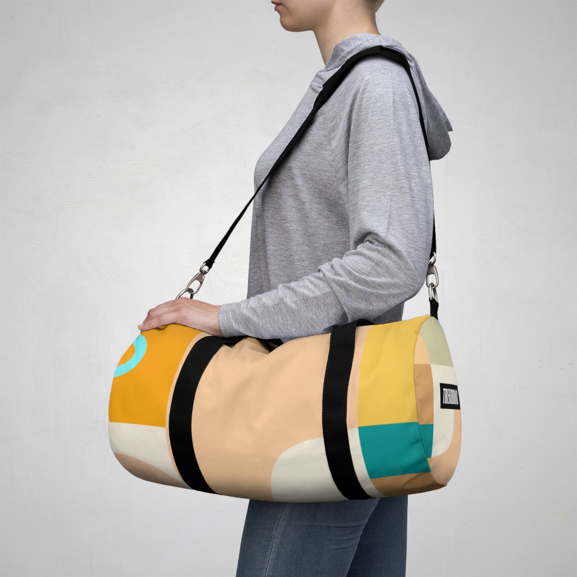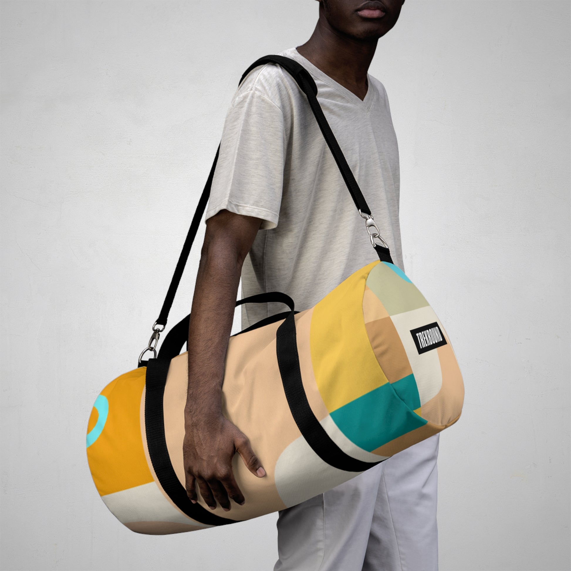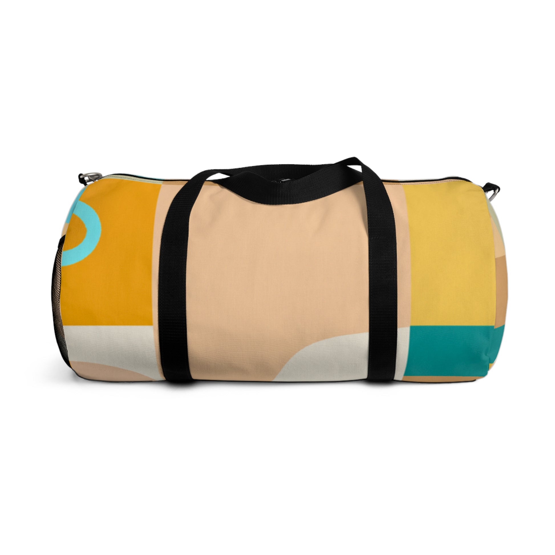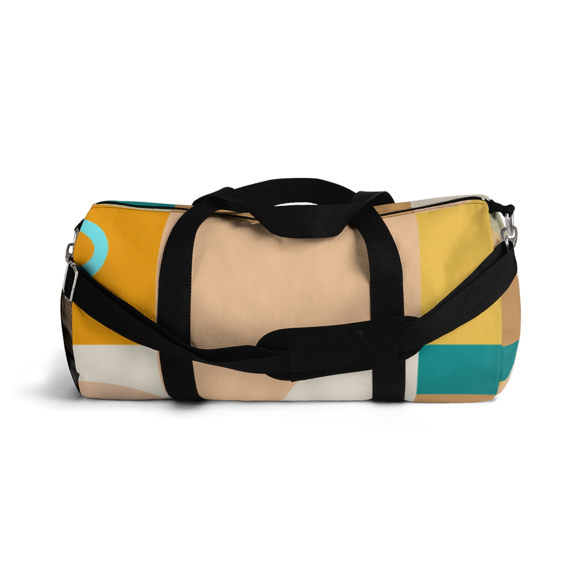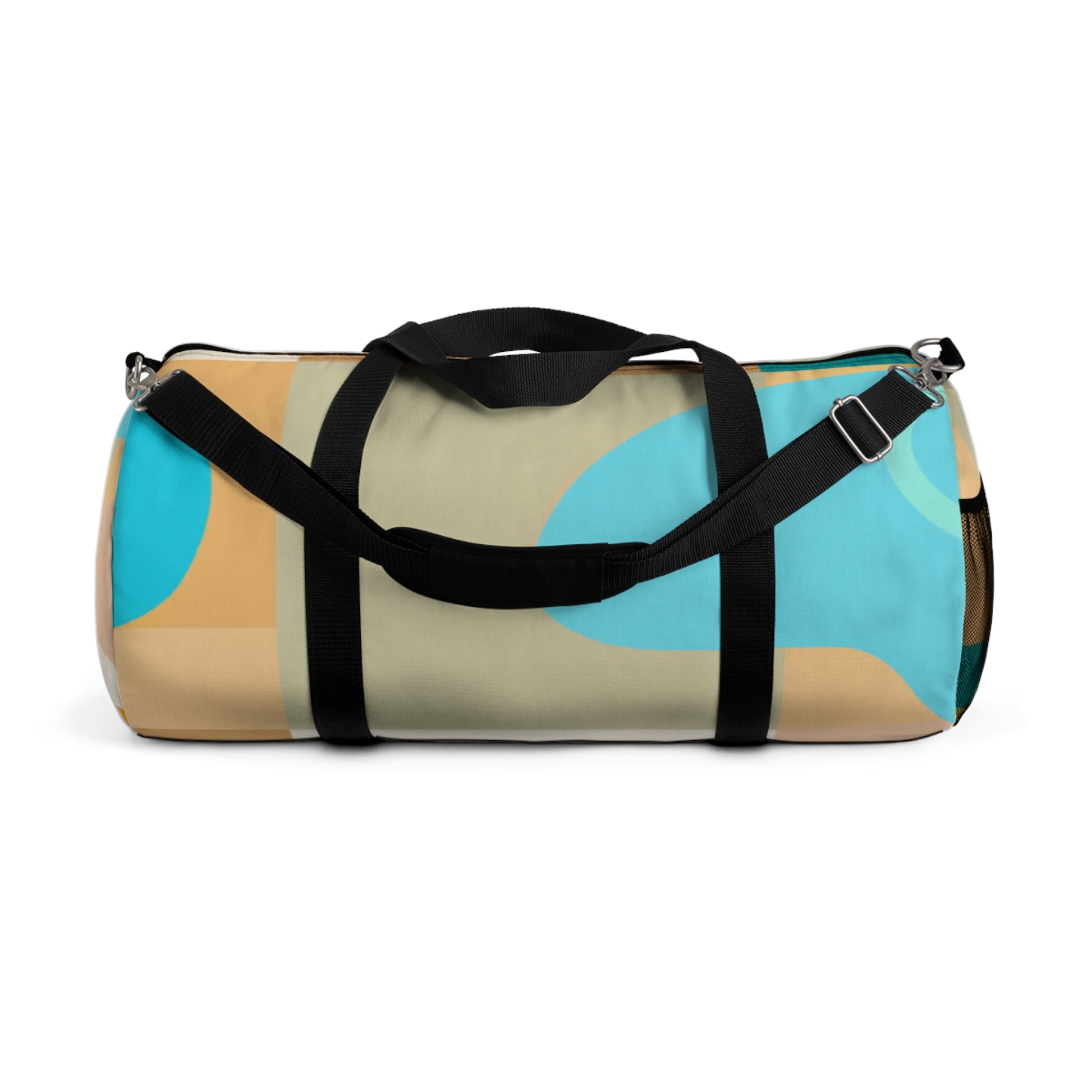This stylish duffel bag combines abstract geometric pattern with vivid, cool colors adding a modern edge to your weekend look. The roomy interior is perfect for carrying all of your essentials, whether you’re hitting the gym or off to a weekend hideaway. Padded shoulder straps and multiple pockets make it comfortable and easy to carry. #travelbag #duffelbag #summerstyle #weekendlook #abstractgeometric #coolcolors #stylisheveryday #everydayessentials #paddedshoulderstrap #weekendhideaway #roomyinterior #modernstyle