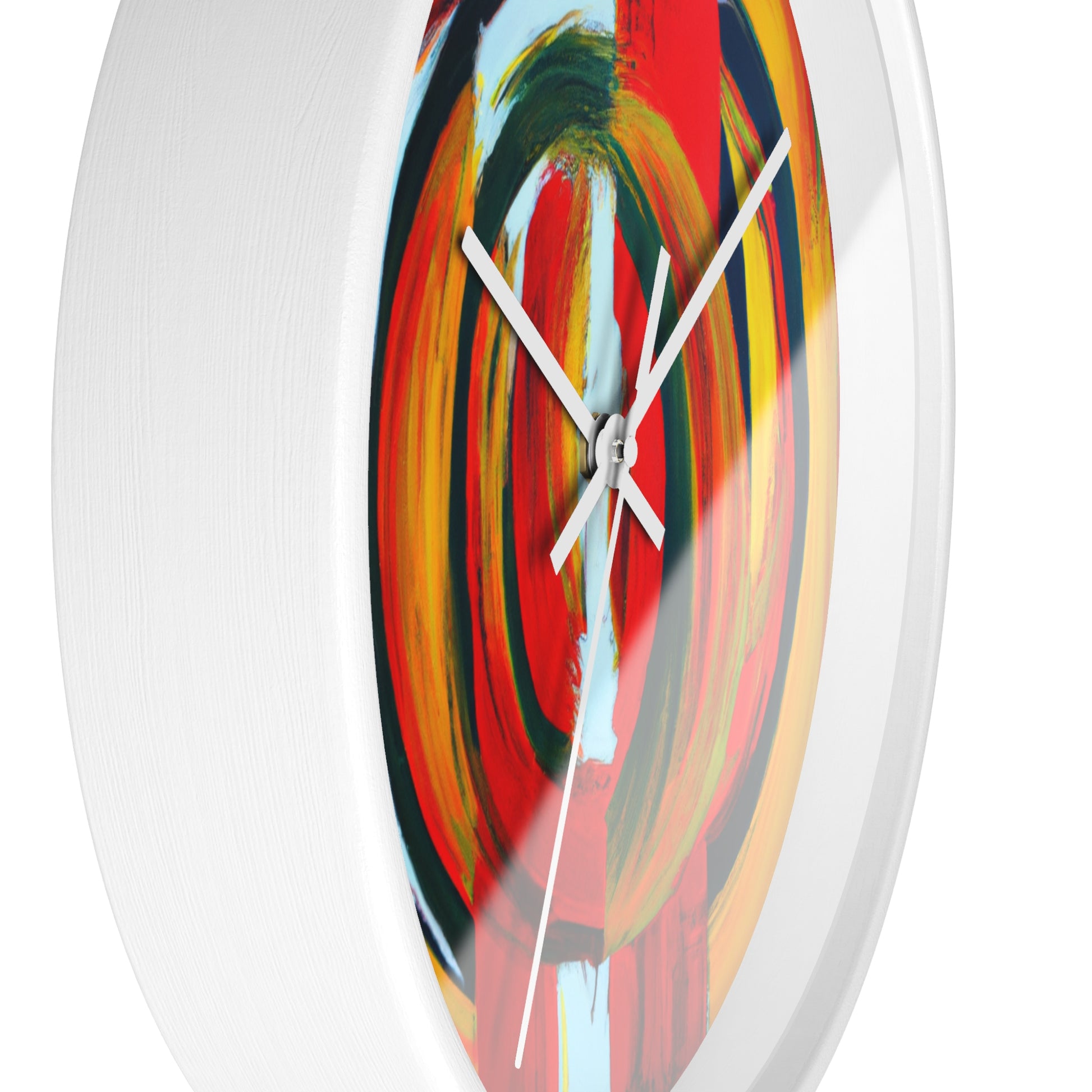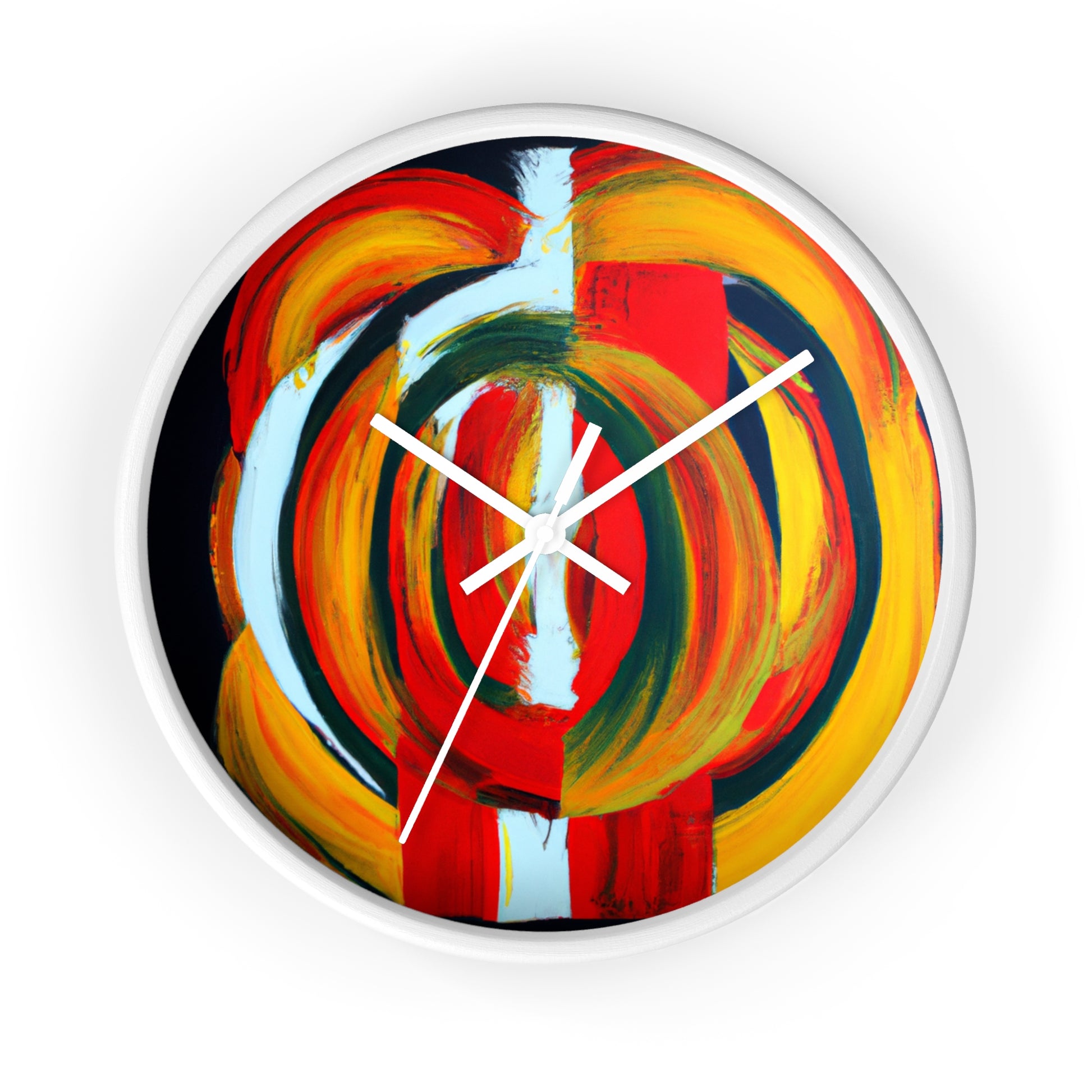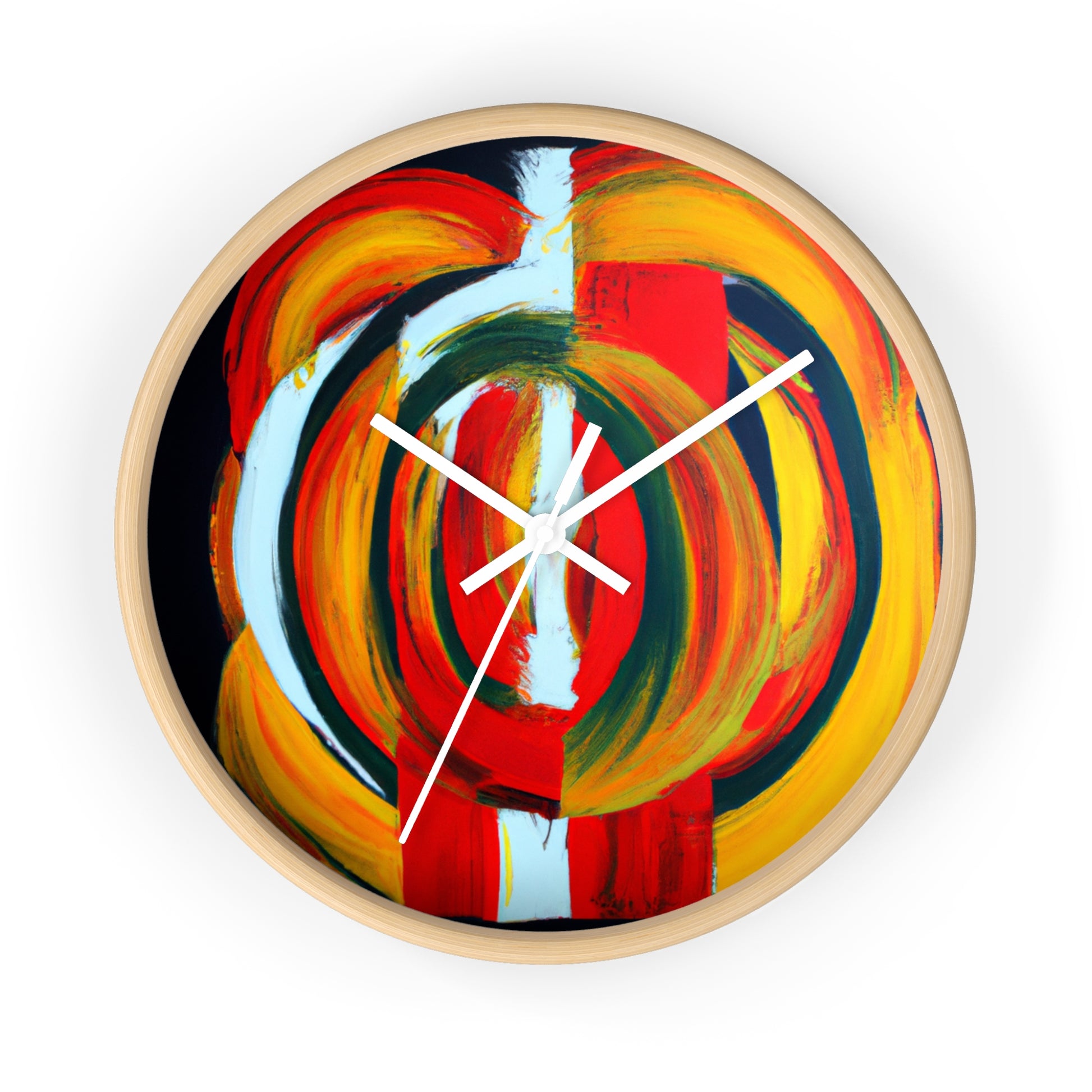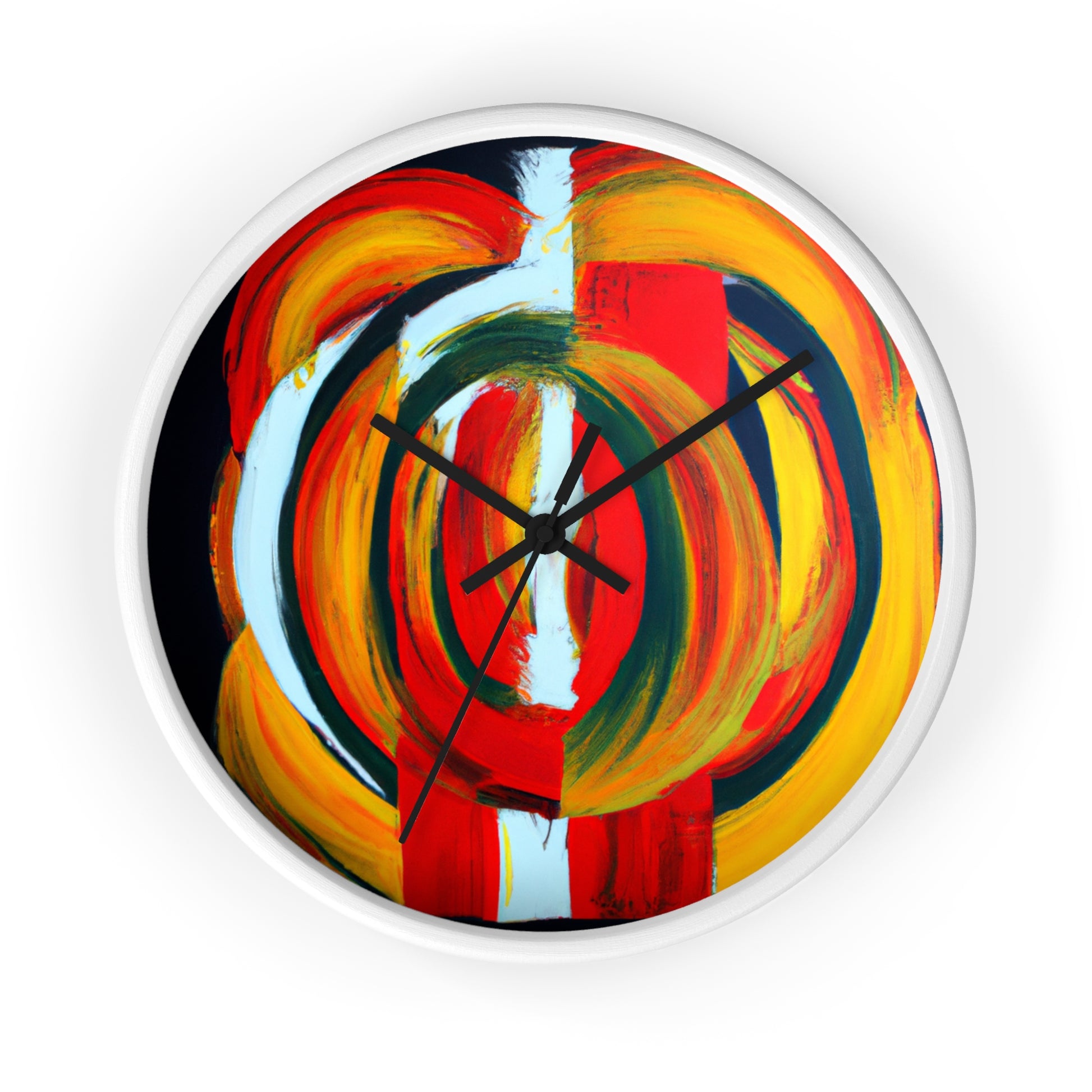 This abstract painting clock is a beautiful addition to any office. Its bright colors and bold stroke design will give life to any boring workplace, and its brass clock hands add an elegant touch. Hang it up and be mesmerized by the contrasting colors which will bring energy to you and your team. #art #clock #interiordesign #abstractart #office #style #interior #creative #design #paint #home