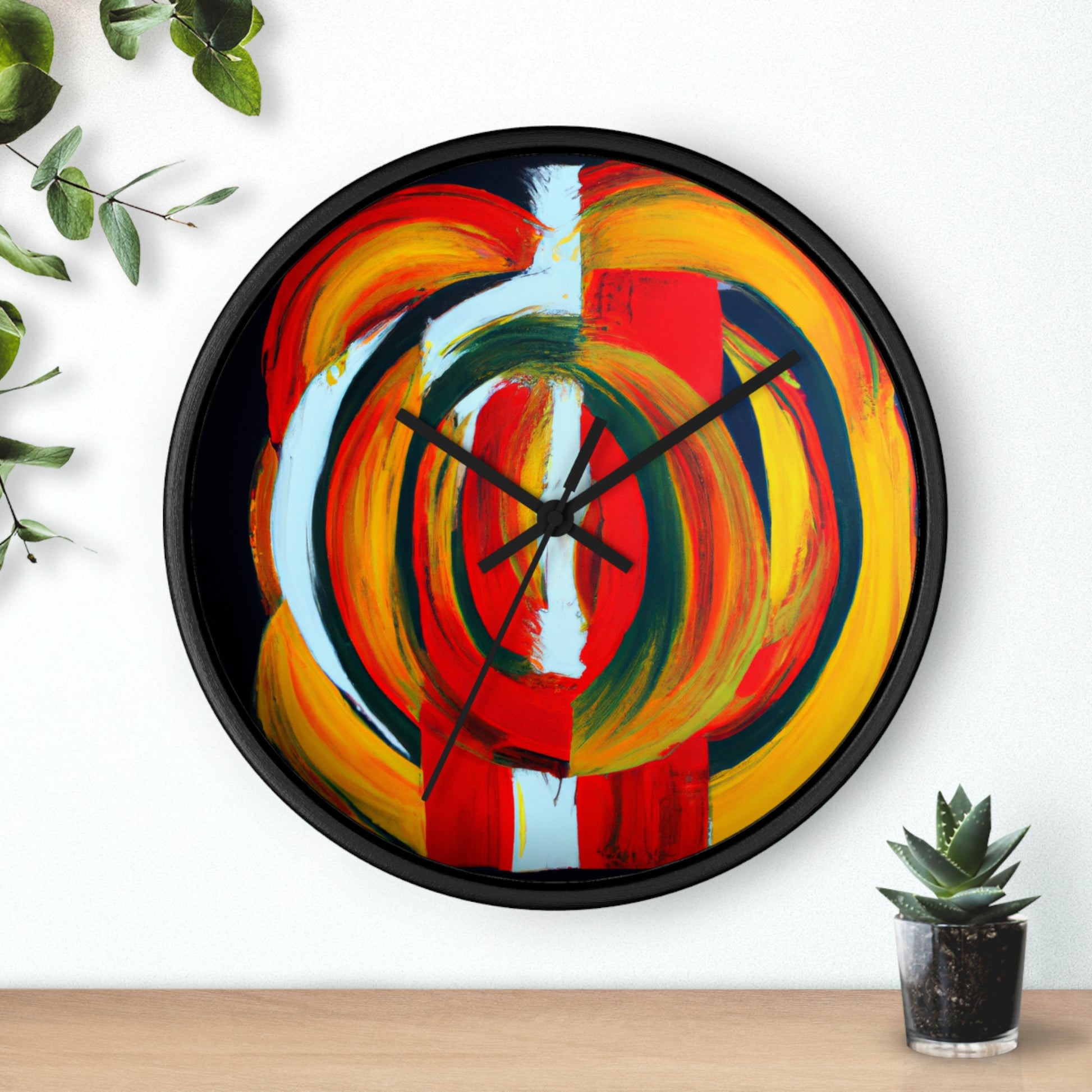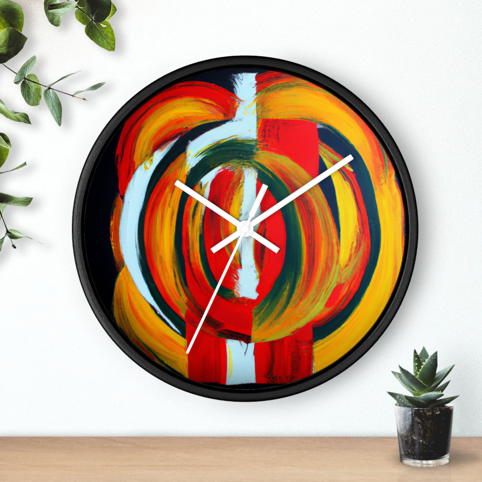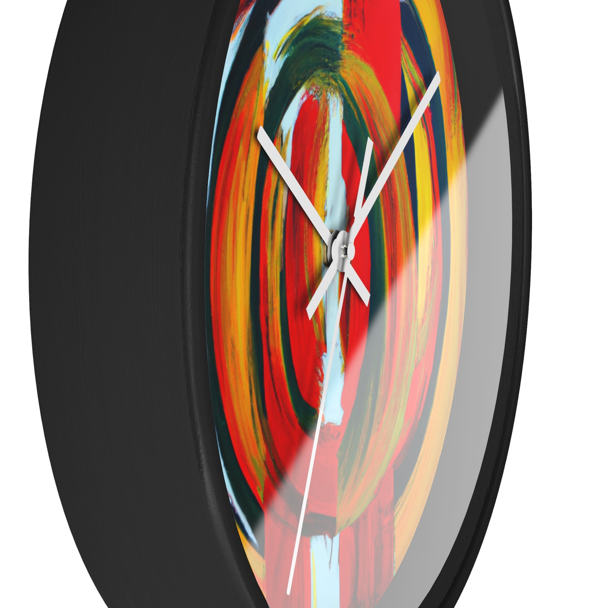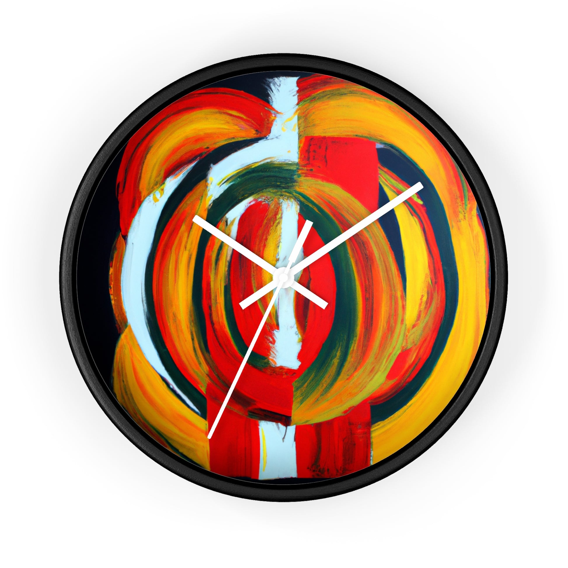This abstract painting clock is a beautiful addition to any office. Its bright colors and bold stroke design will give life to any boring workplace, and its brass clock hands add an elegant touch. Hang it up and be mesmerized by the contrasting colors which will bring energy to you and your team. #art #clock #interiordesign #abstractart #office #style #interior #creative #design #paint #home