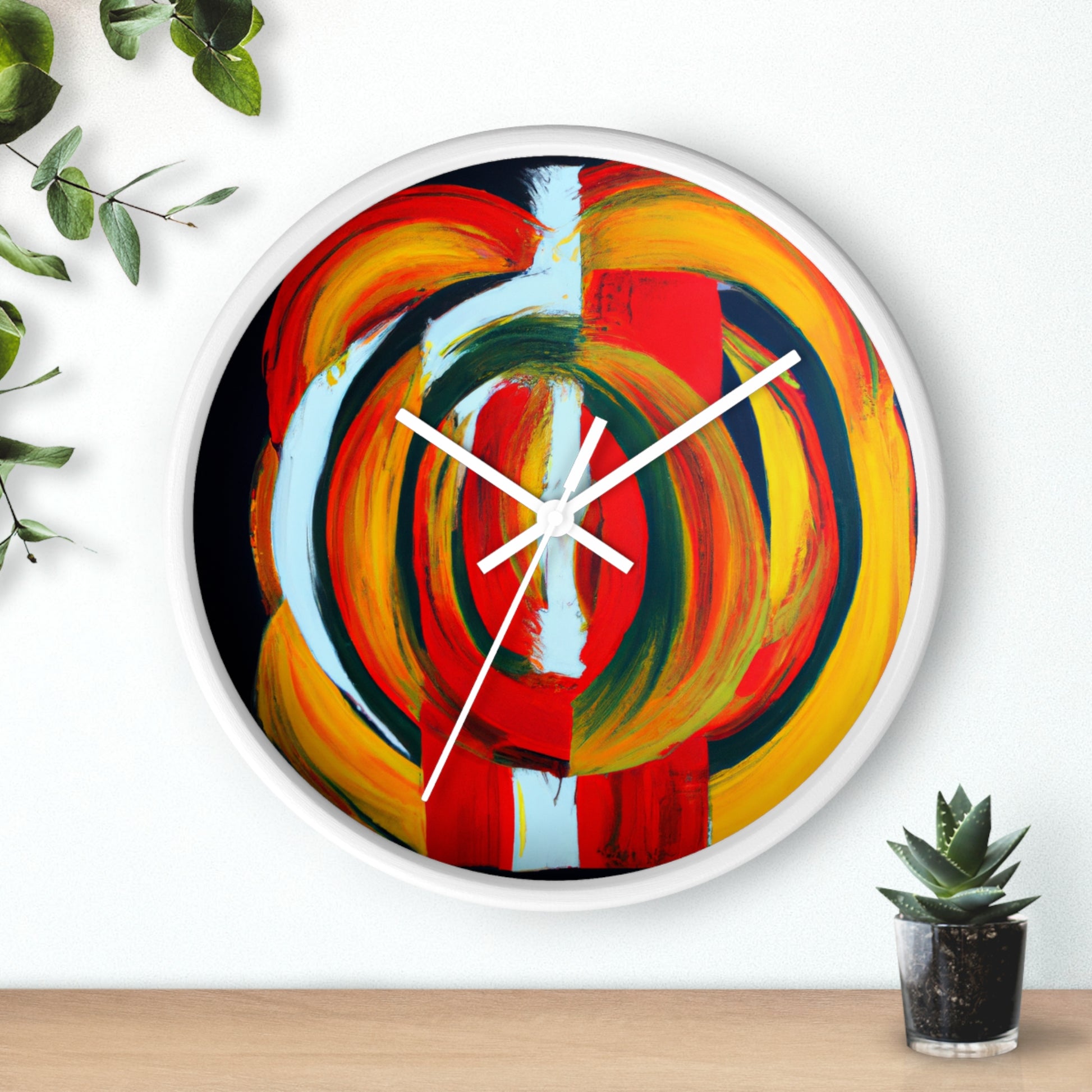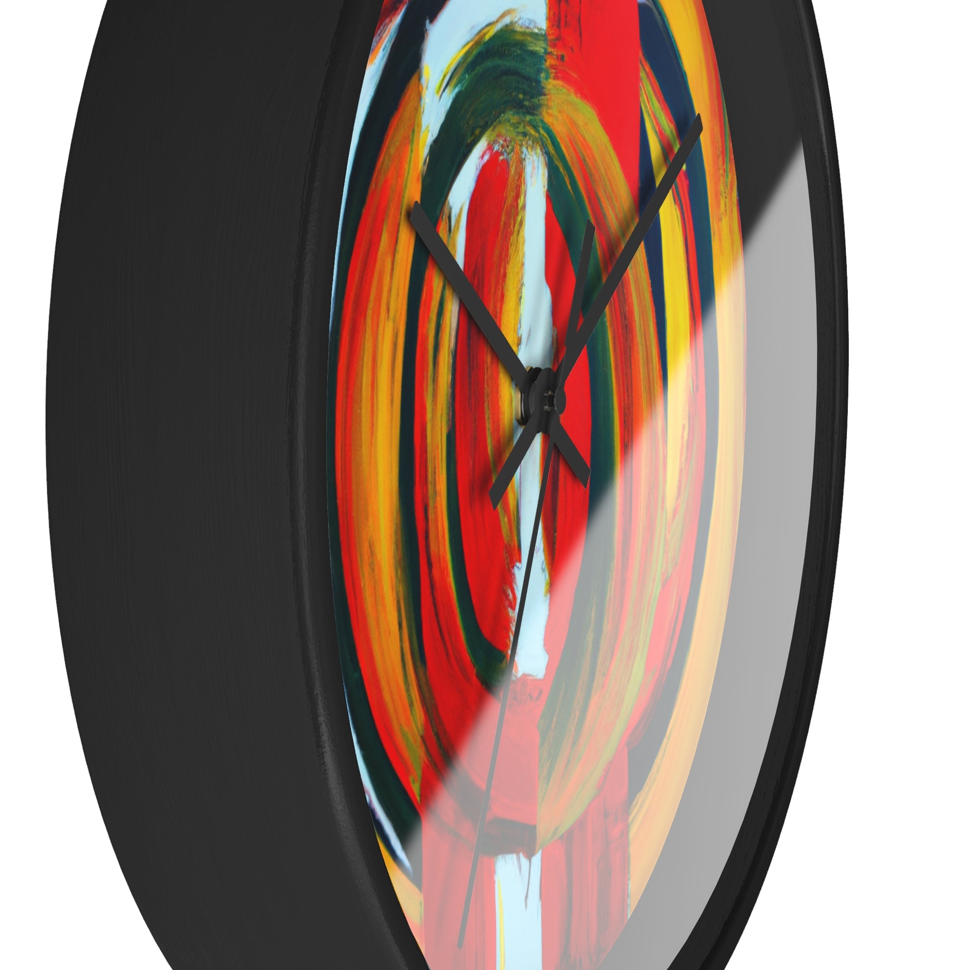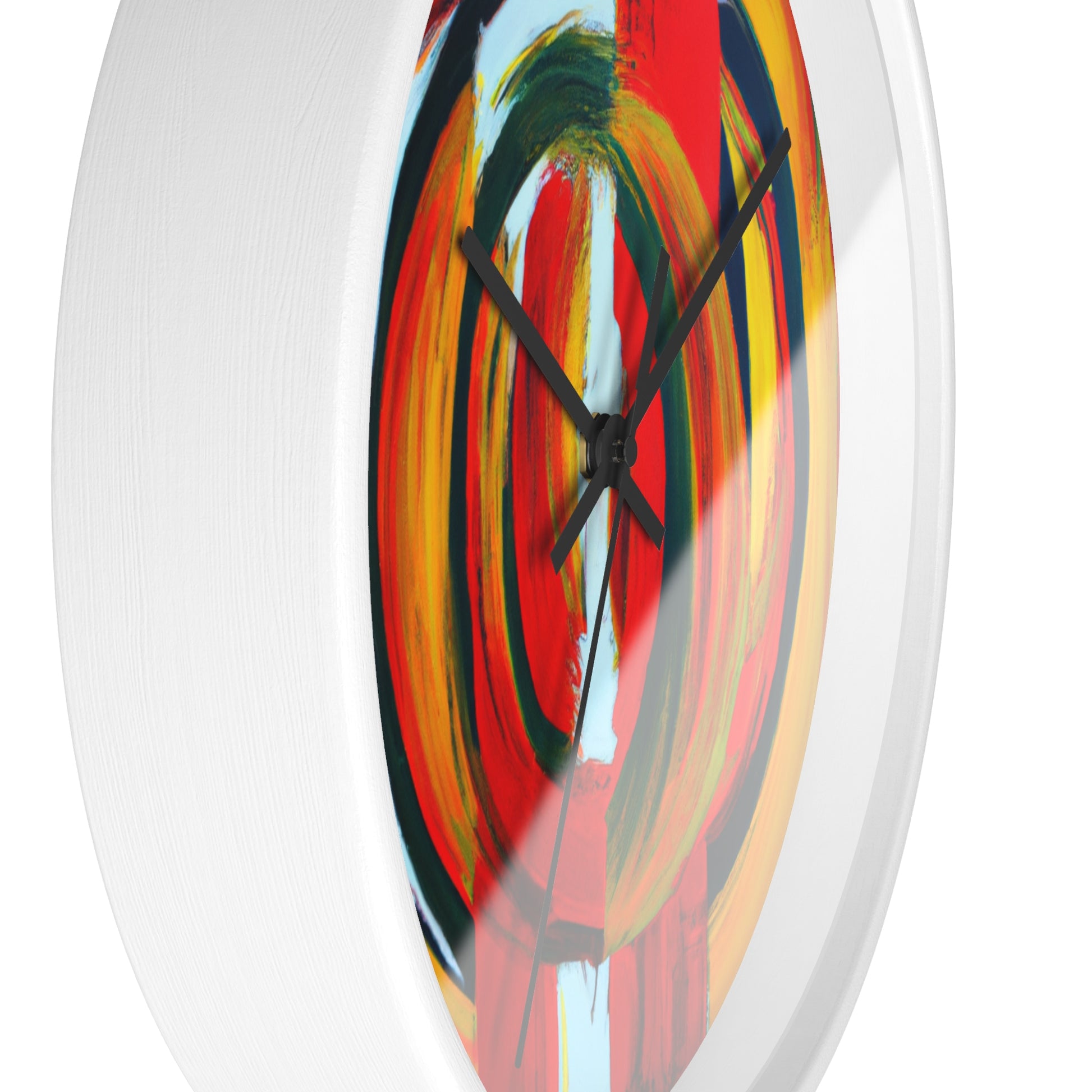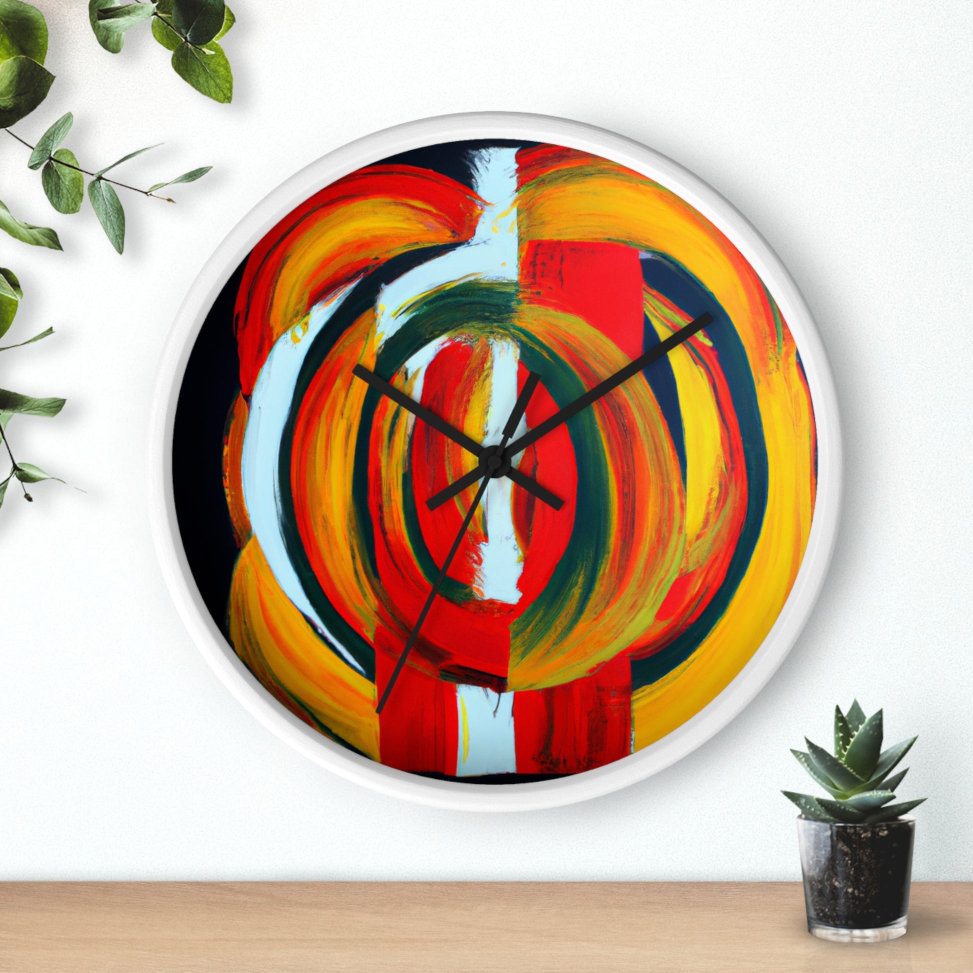 This abstract painting clock is a beautiful addition to any office. Its bright colors and bold stroke design will give life to any boring workplace, and its brass clock hands add an elegant touch. Hang it up and be mesmerized by the contrasting colors which will bring energy to you and your team. #art #clock #interiordesign #abstractart #office #style #interior #creative #design #paint #home