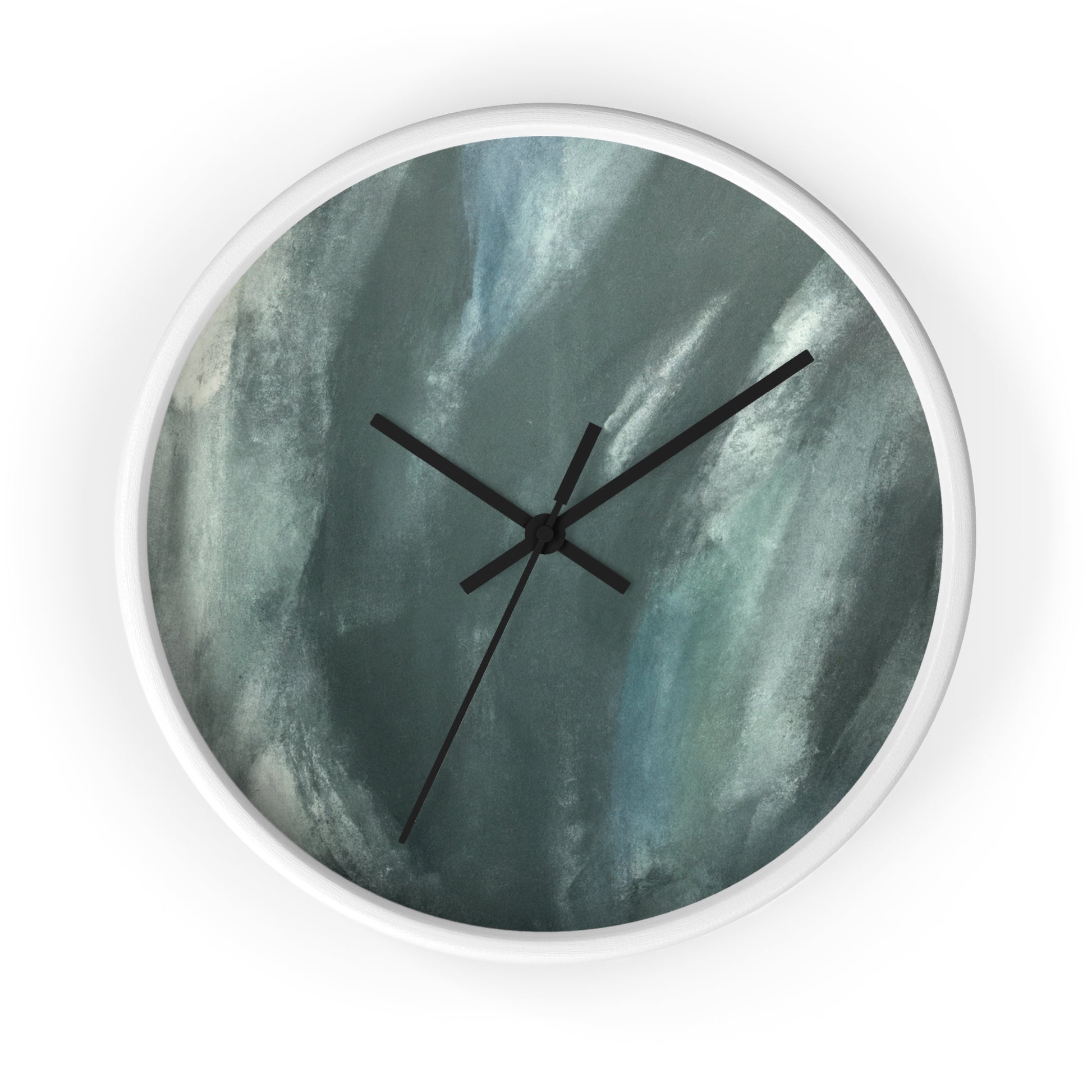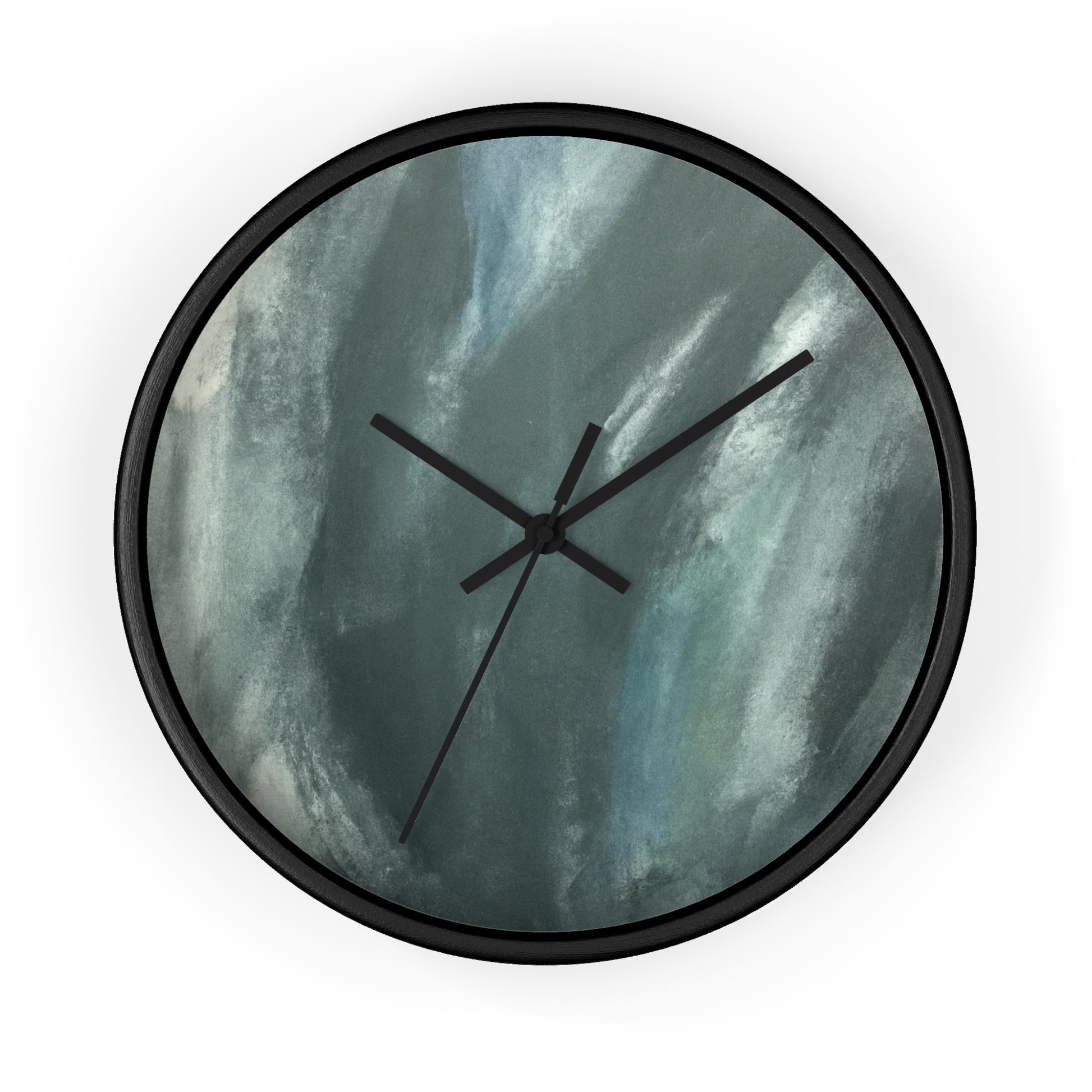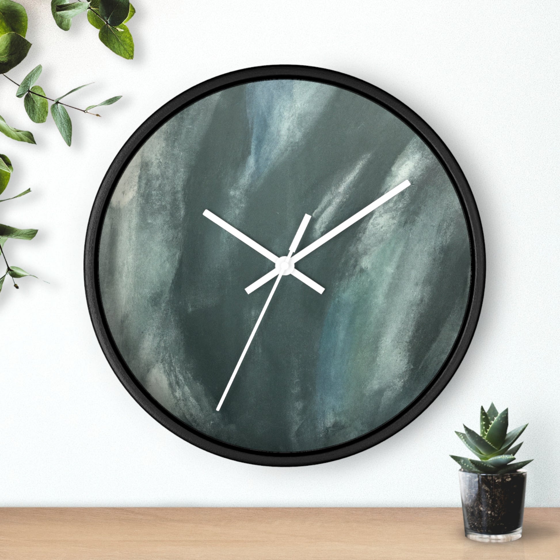This modern and abstract wall clock is an ideal eye-catching artwork for any office space. Its black and white face features a unique and artistic painting, complementing its classic and sleek silver hands and frame. Featuring quartz movement, this clock ensures accurate time and keeps up with the busy and hectic office environment. Spice up your work space with this stunning clock that doubles as an art piece. #AbstractArt #ArtWork #ClockDesign #Decor #ModernDesign #OfficeTheme #ProductDescription #QuartzMovement #SilverFrame #SleekLook #UniqueStyle