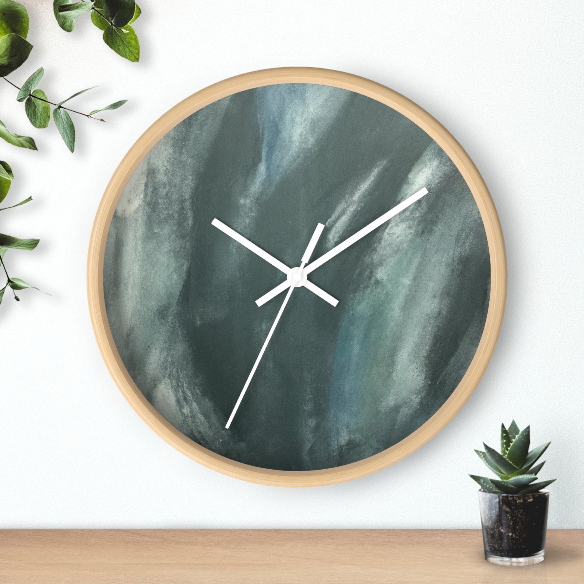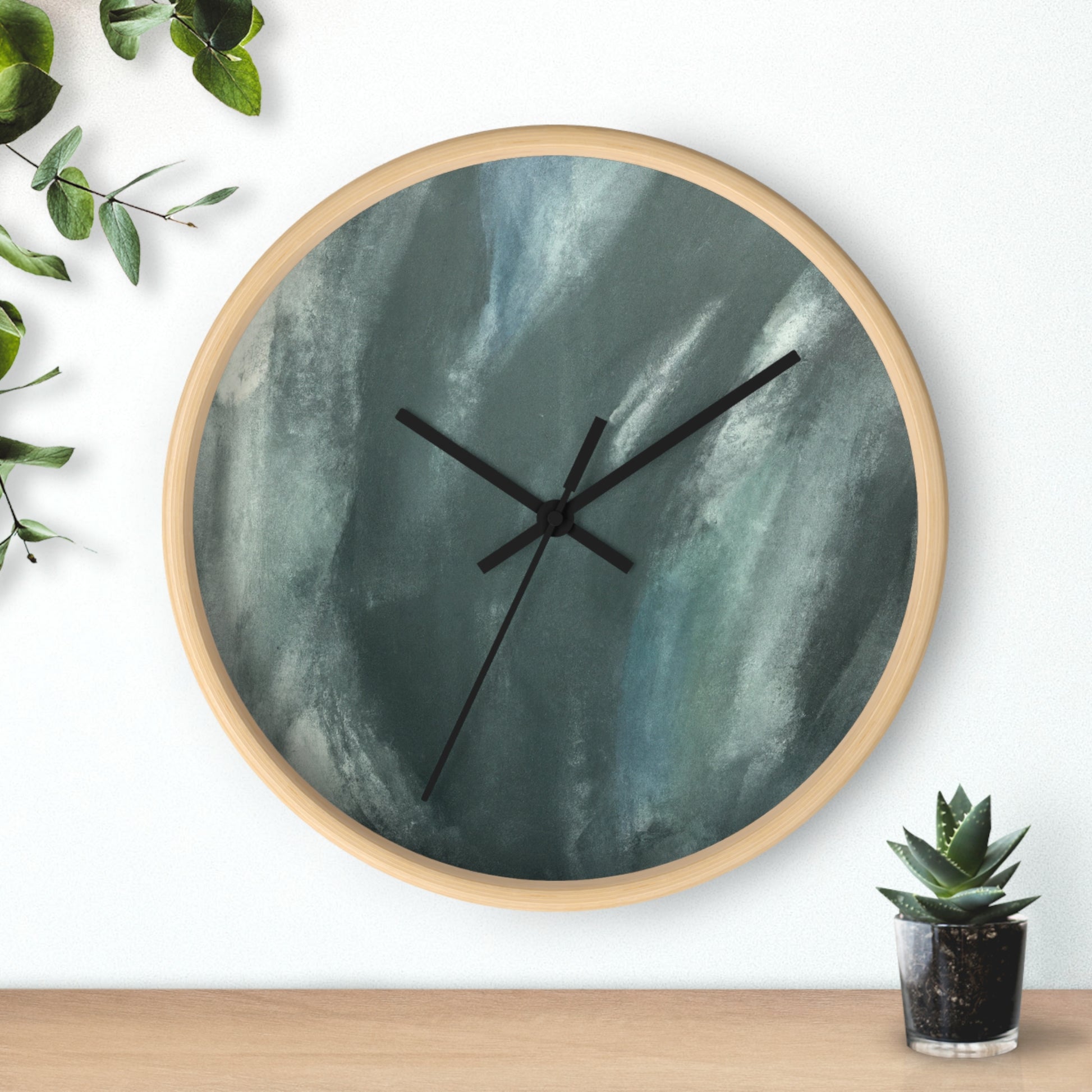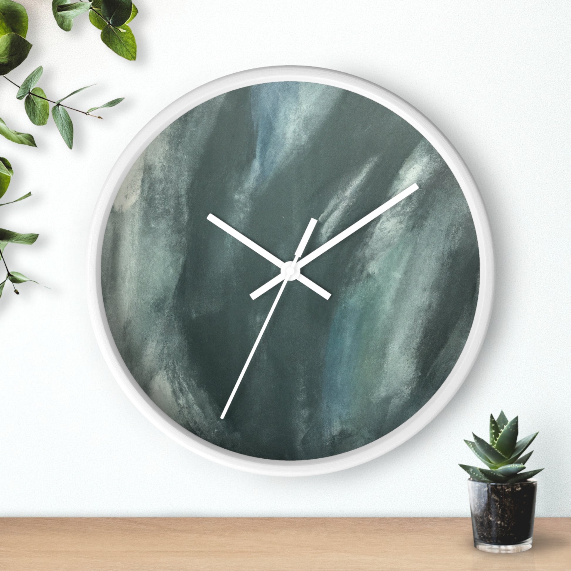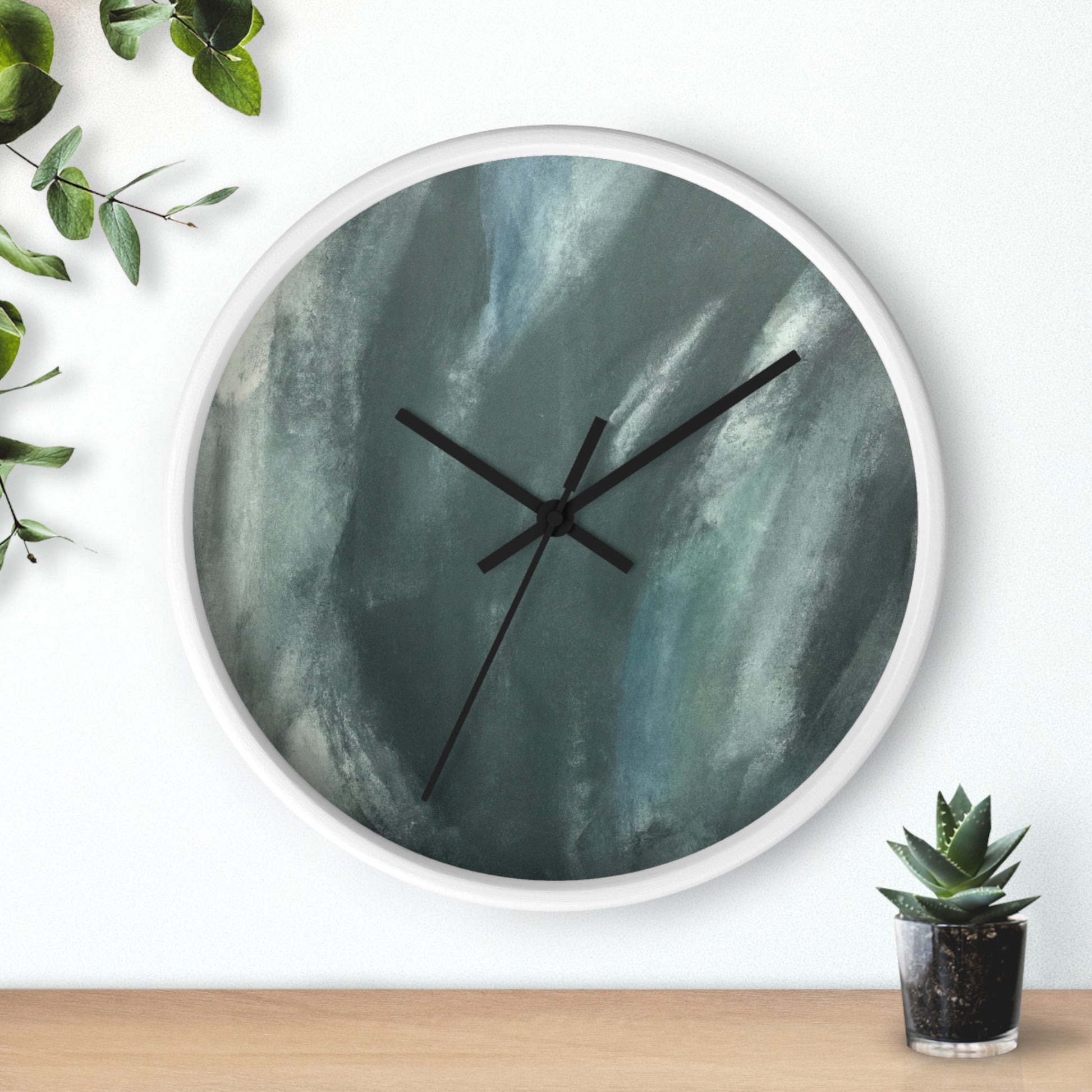 This modern and abstract wall clock is an ideal eye-catching artwork for any office space. Its black and white face features a unique and artistic painting, complementing its classic and sleek silver hands and frame. Featuring quartz movement, this clock ensures accurate time and keeps up with the busy and hectic office environment. Spice up your work space with this stunning clock that doubles as an art piece. #AbstractArt #ArtWork #ClockDesign #Decor #ModernDesign #OfficeTheme #ProductDescription #QuartzMovement #SilverFrame #SleekLook #UniqueStyle