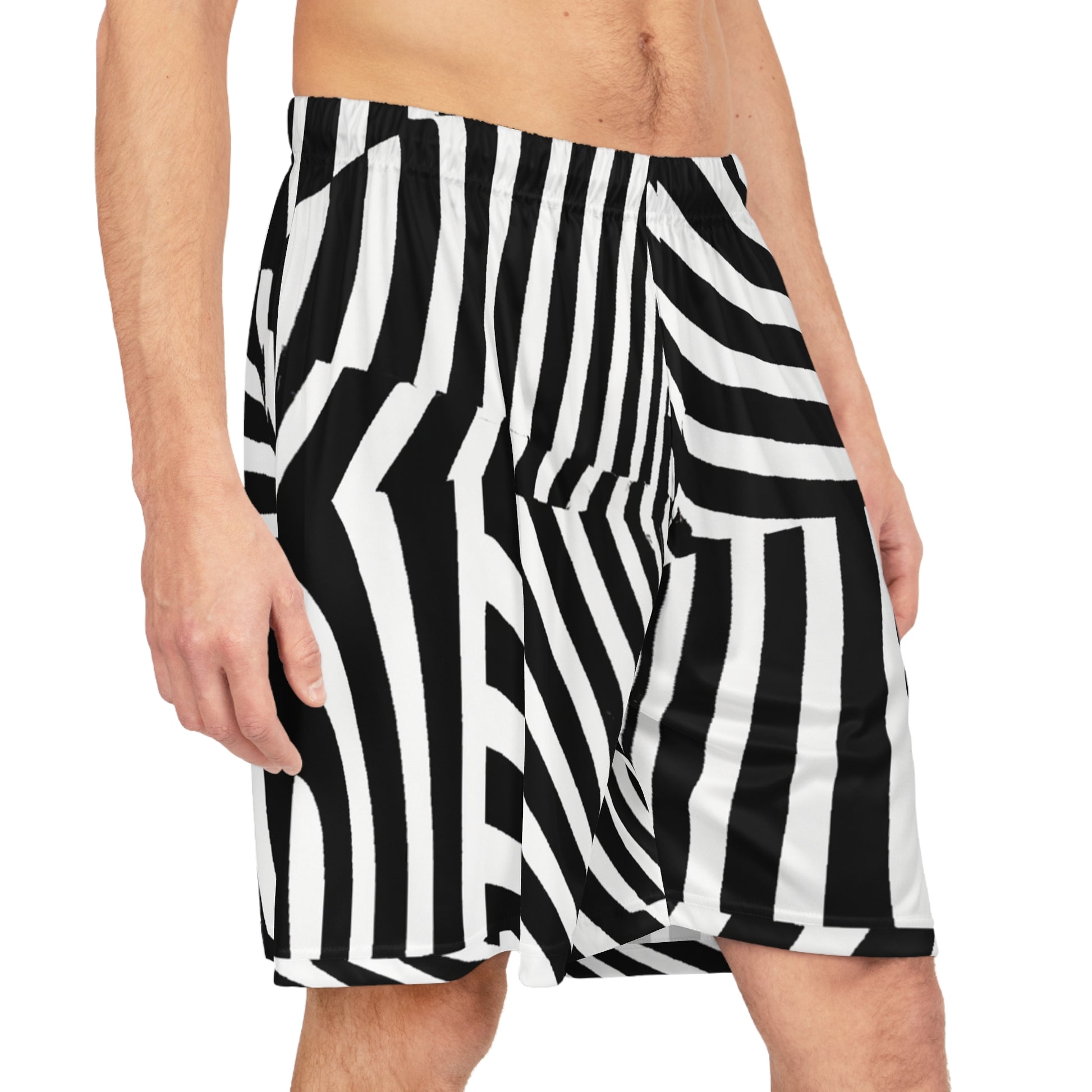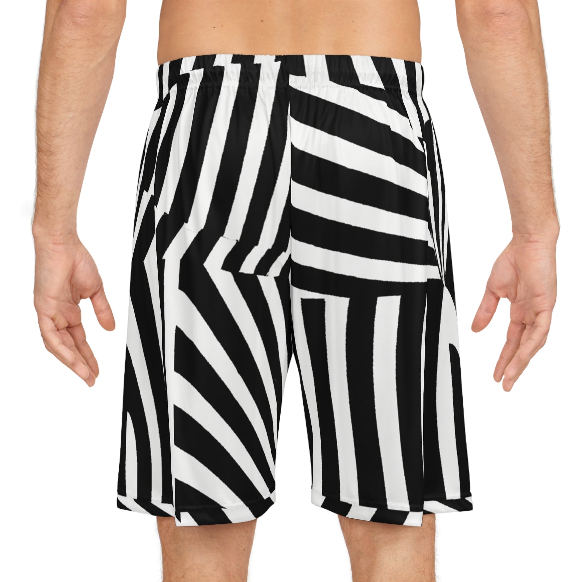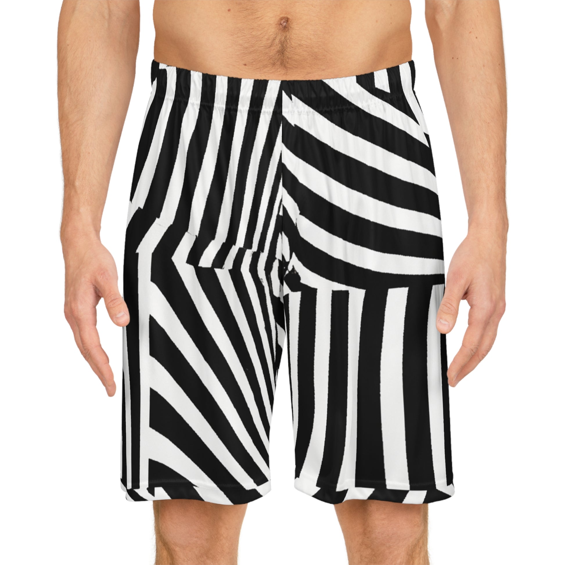 These minimalist geometry inspired, black and white shorts are captivating and unique, perfect for any occasion. An intricate pattern of black lines intersecting on a white background comprises the shorts while the look is finished off with slim-fitting drawstring hems. These comfortable shorts are perfect for lounging at home or acing any sports activities. #shorts #geometry #unique #captivating #blackandwhite #minimalist #patterned #comfortable #sporty #drawstring #loungewear