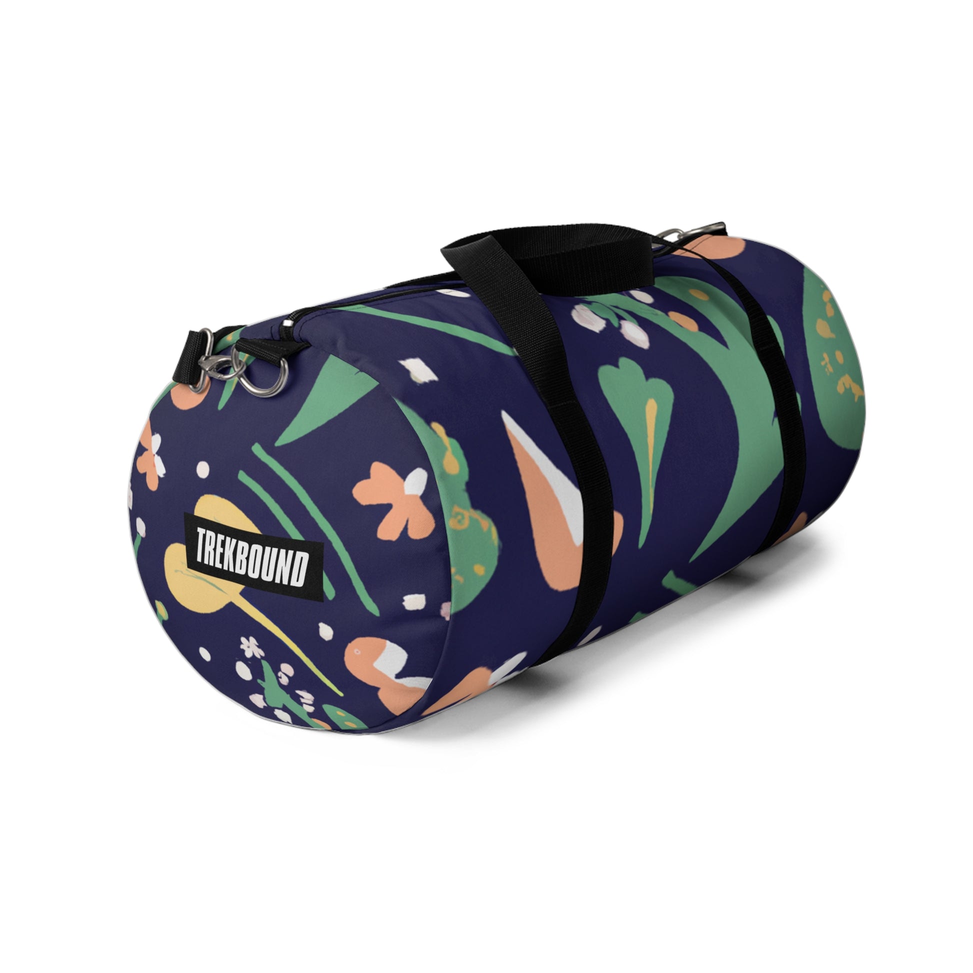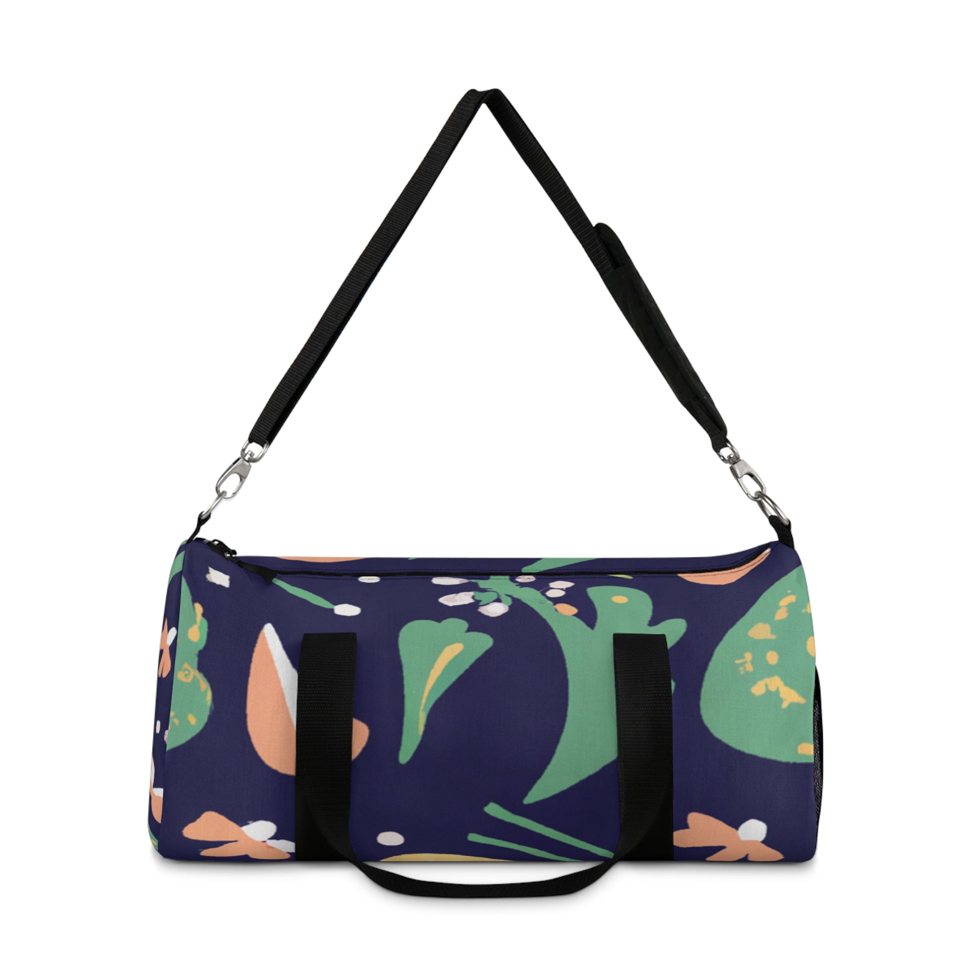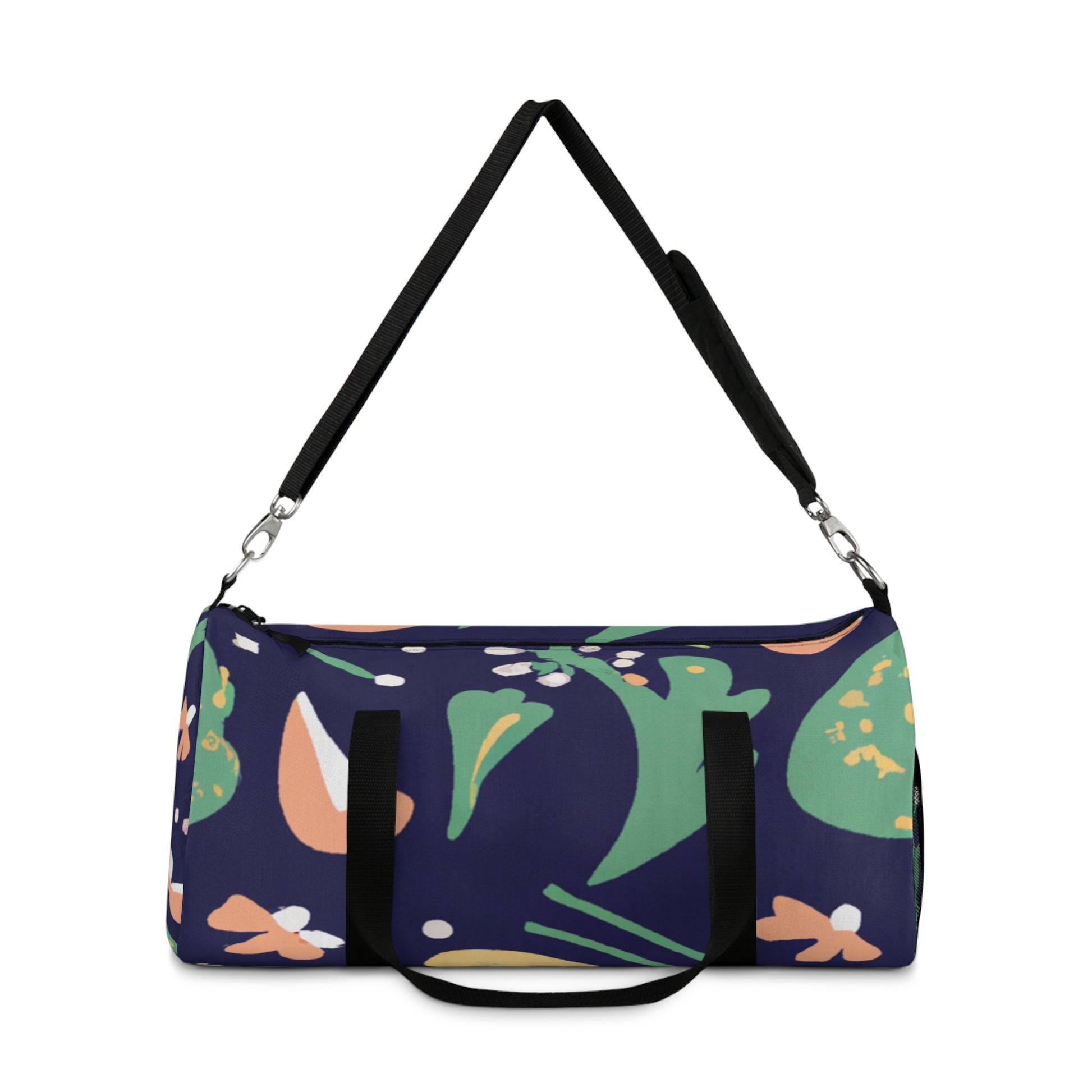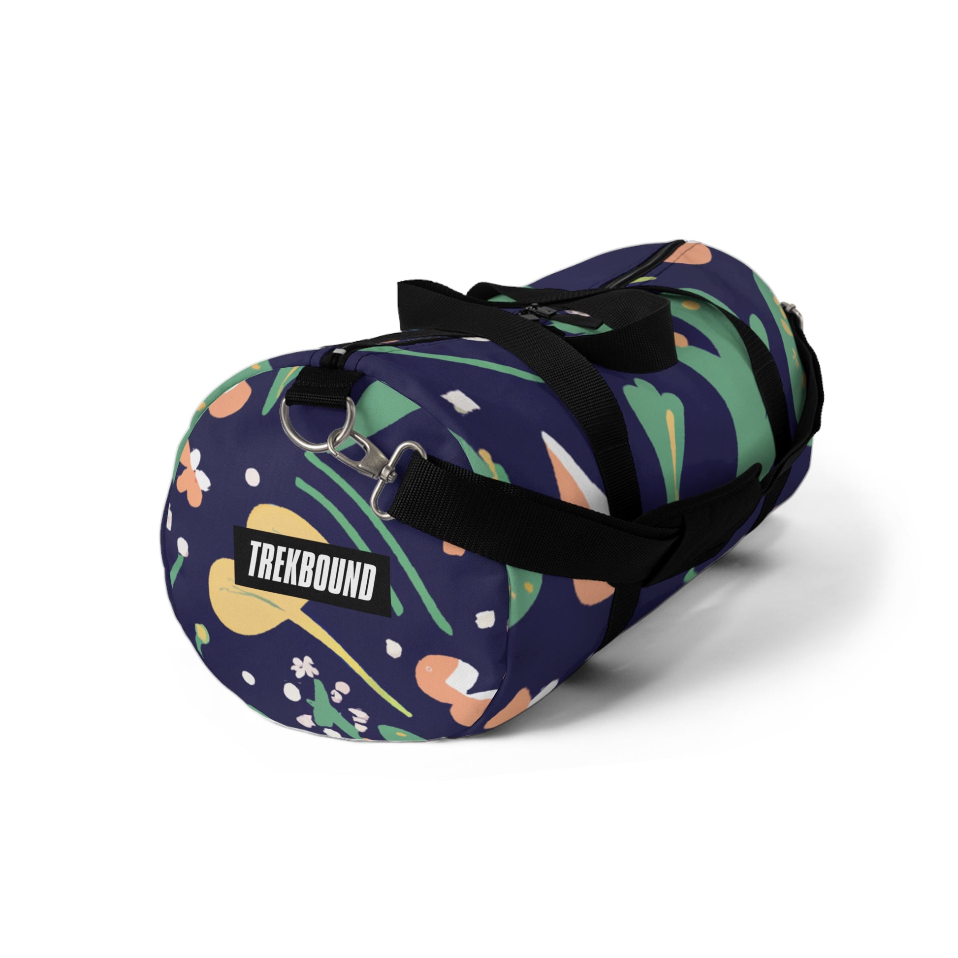 This duffel bag with a surface pattern design inspired by Jessica Wilde, it features an eye-catching floral design perfect for travel, work, play, and beyond. Featuring a spacious design, convenient shoulder strap, and comfortable handles, this bag is sure to get you around in style. So go ahead - have fun and explore while making a statement!#jessicawilde #duffelbag #patternedbag #style #traveling #fun #explore #convenient #statementpiece #duffel #unique