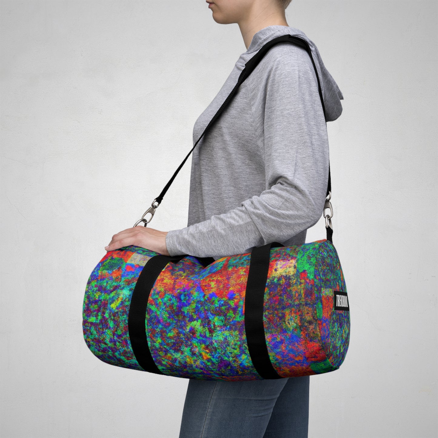 Our stylish and vibrant duffel bag is here to accommodate your short trips! With its abstract geometric textured pattern featuring cool colors for digital art designs, it will quickly become your favorite travel buddy. It's lightweight, durable, and offers plenty of room for your weekend necessities. #duffelbag #patternbag #geometricstyle #travelbag #stylishluggage #texturedbag #coolcolors #weekendtravel #digitalart #abstractpattern #durablebag