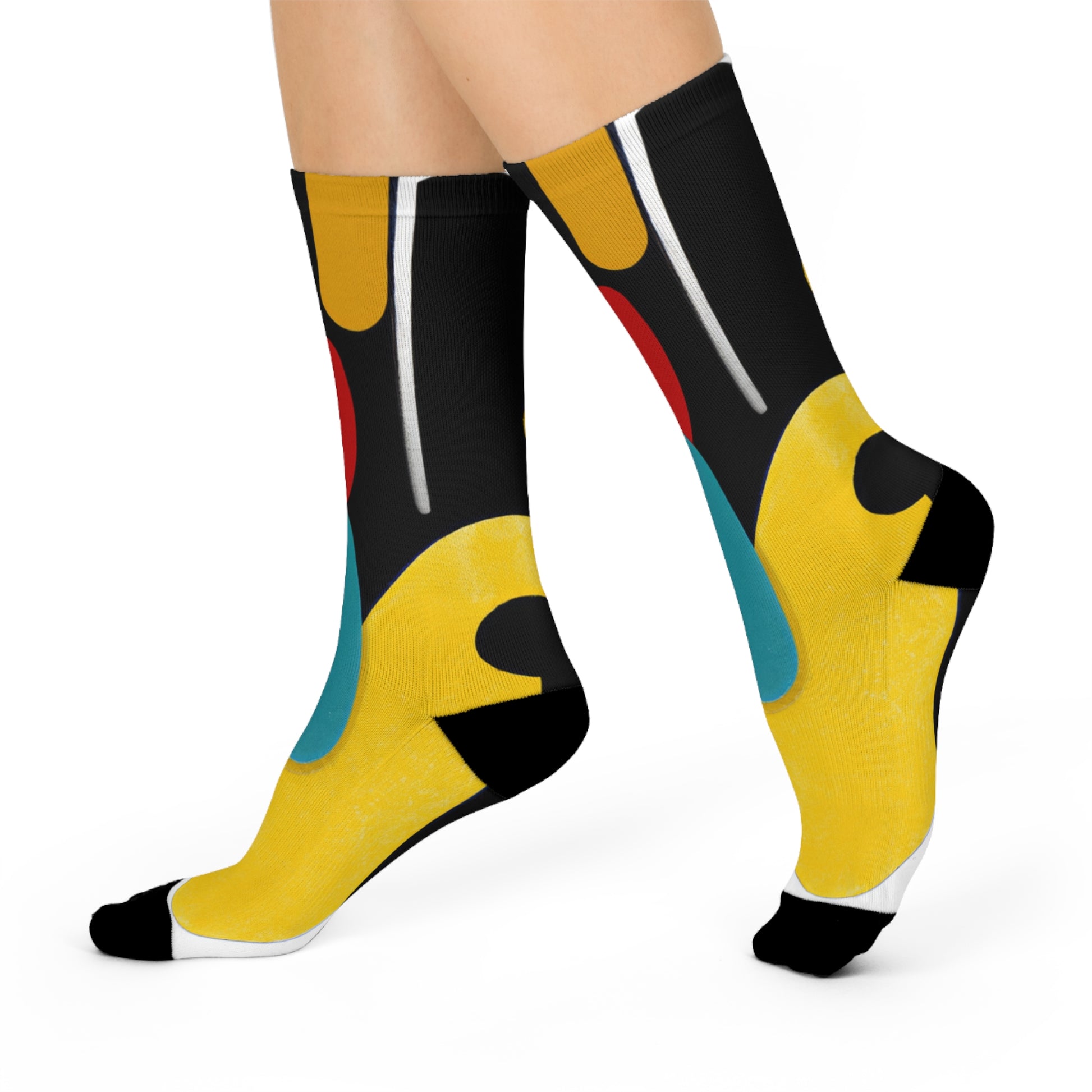 These contemporary abstract painting designed cushioned socks with neon colors will take your look from dull to wow! They'll give your outfit a refreshing and unique twist, and keep your feet warm and snug. A perfect accessory for jackets and other fashion styles. #neonsocks #contemporarystyle #sockgame #fashionaccessory #comfort #paintingstyle #abstractart #neoncolors #cushioning #jackets #styleupgrade
