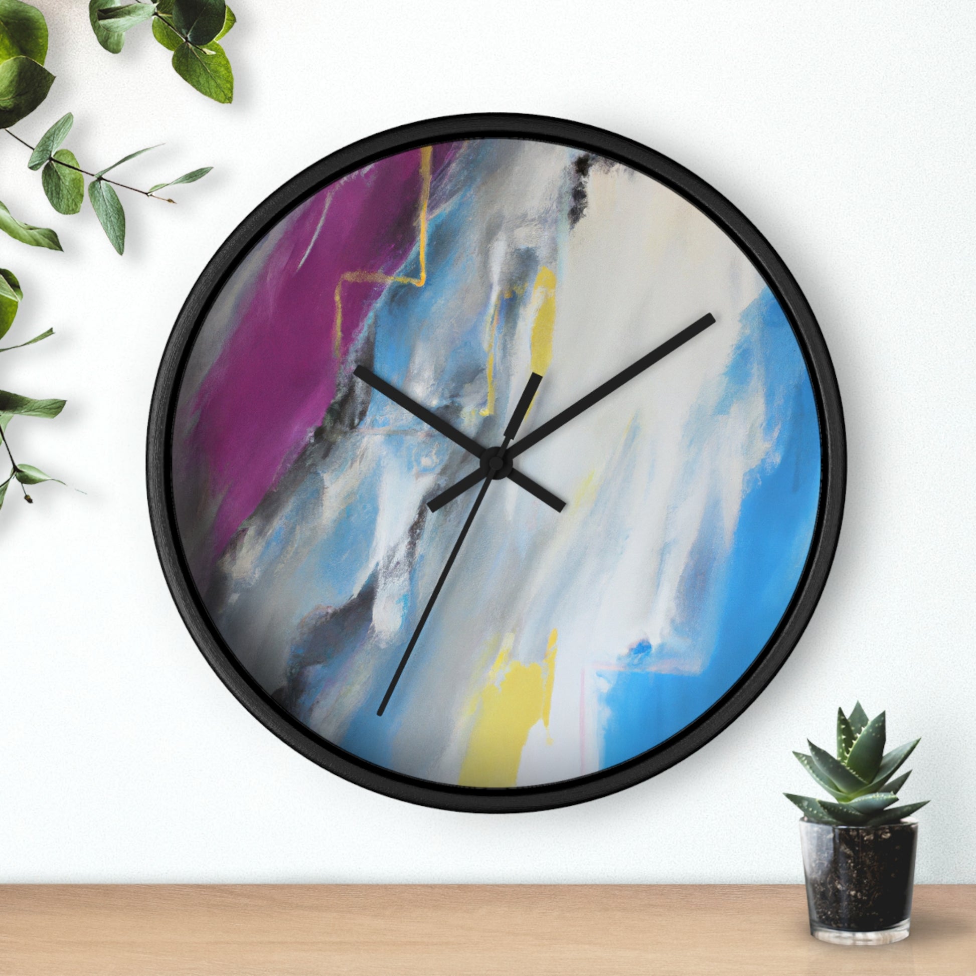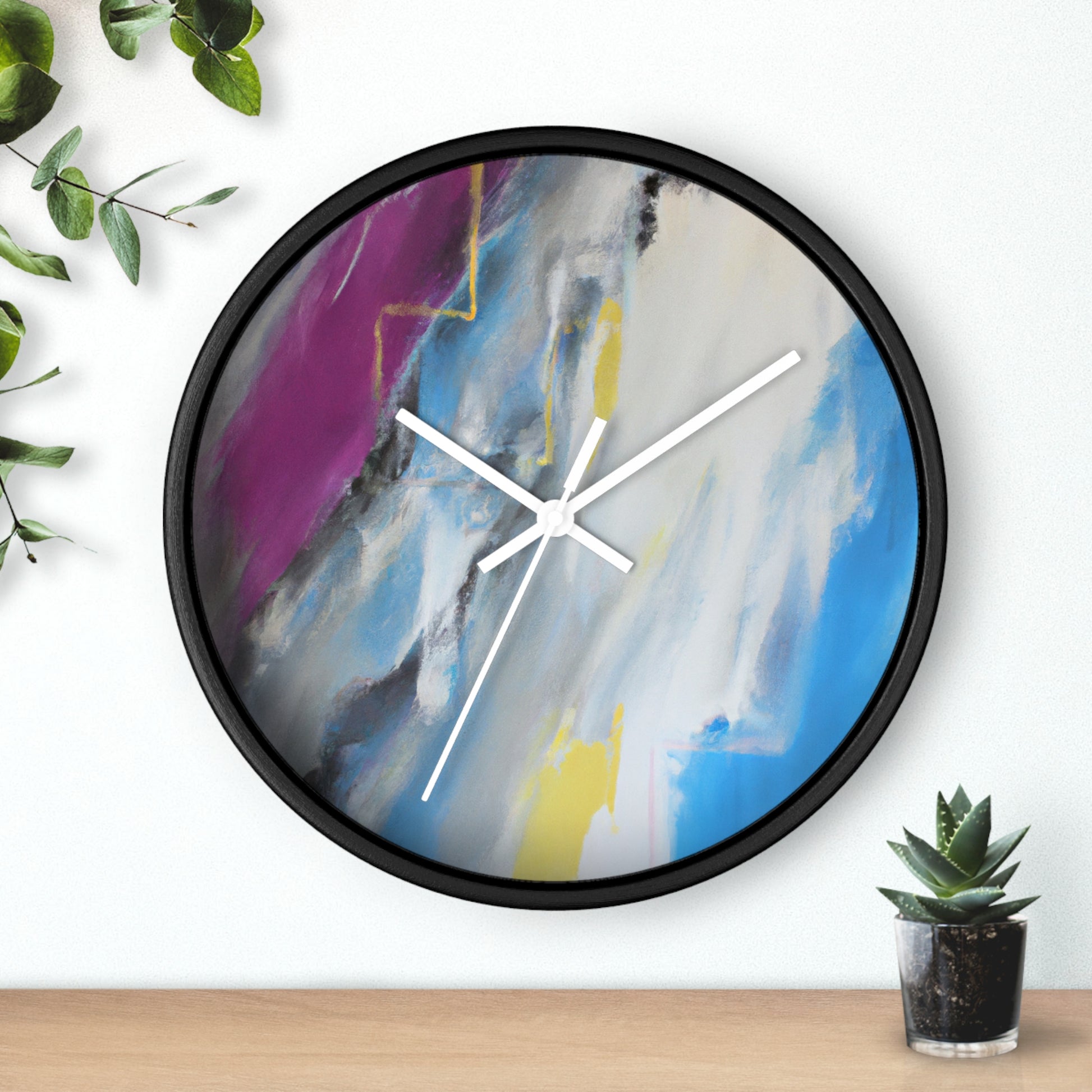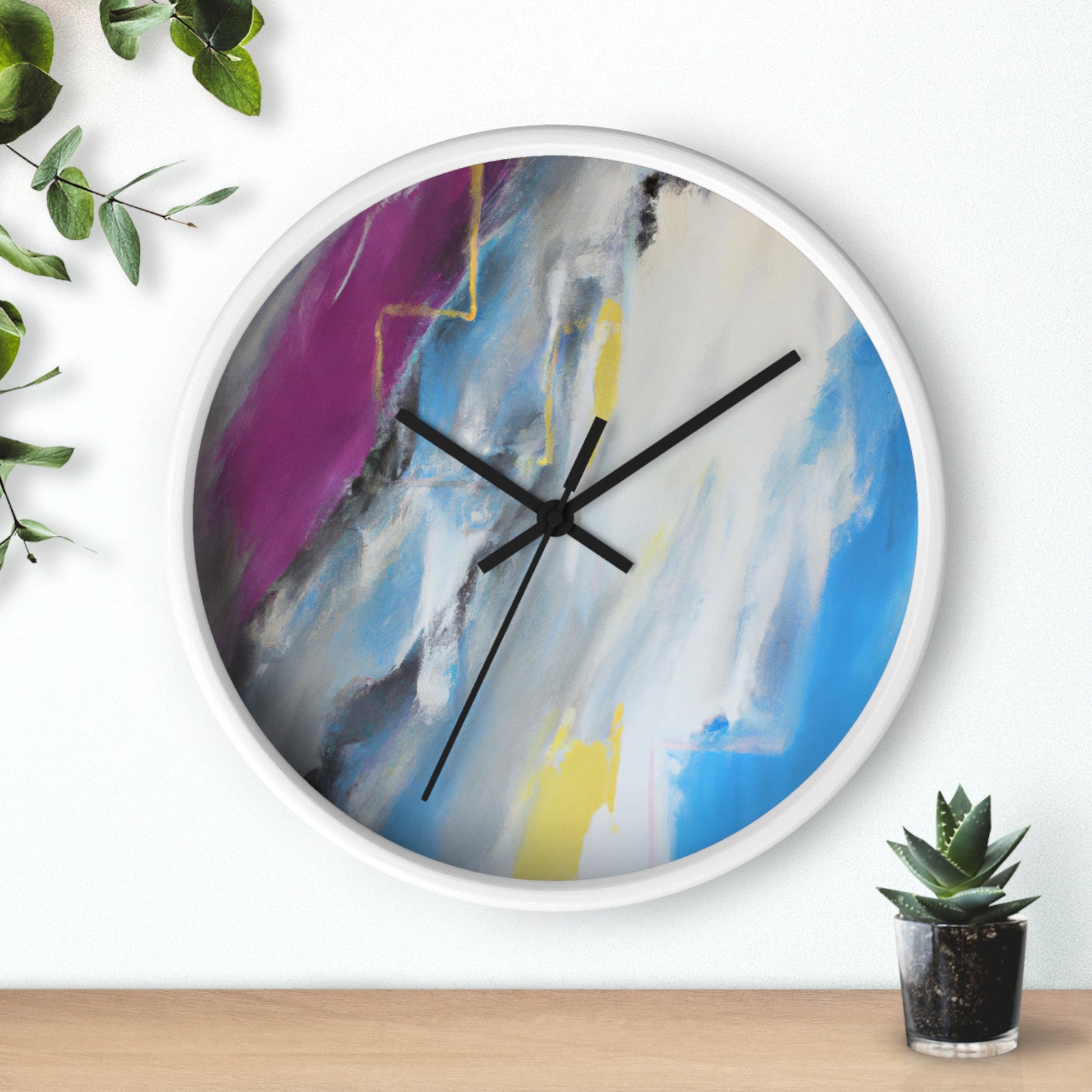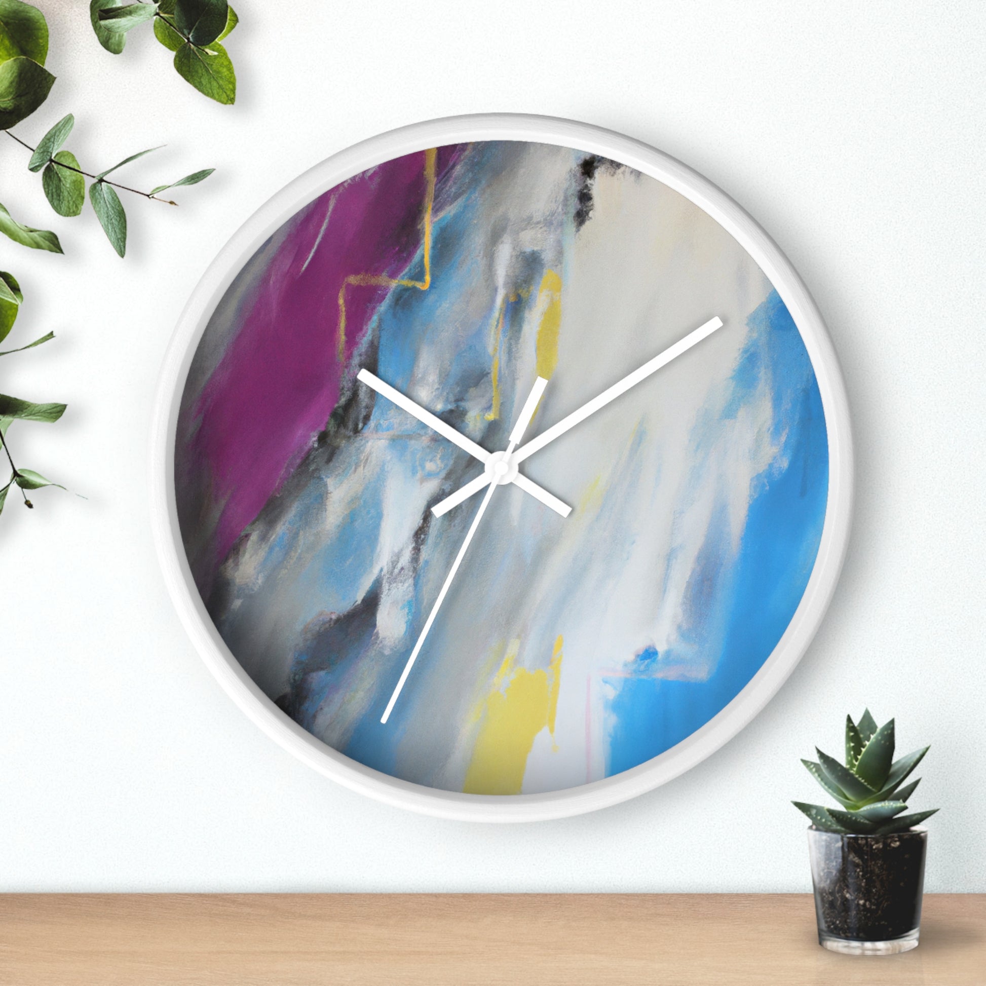 This modern abstract painting clock is perfect for any office! Measuring 12" in diameter, this timeless piece combines the intricate beauty of watercolor artwork with the practical utility of telling time. Made with durable metal hands and a quartz analogue movement, it guarantees accurate timekeeping. The muted color palette compliments any décor and is certain to make a statement. #abstractpainting #clock #office #watercolor #accurate #modern #durable #intricate #timeless #statementpiece #interior
