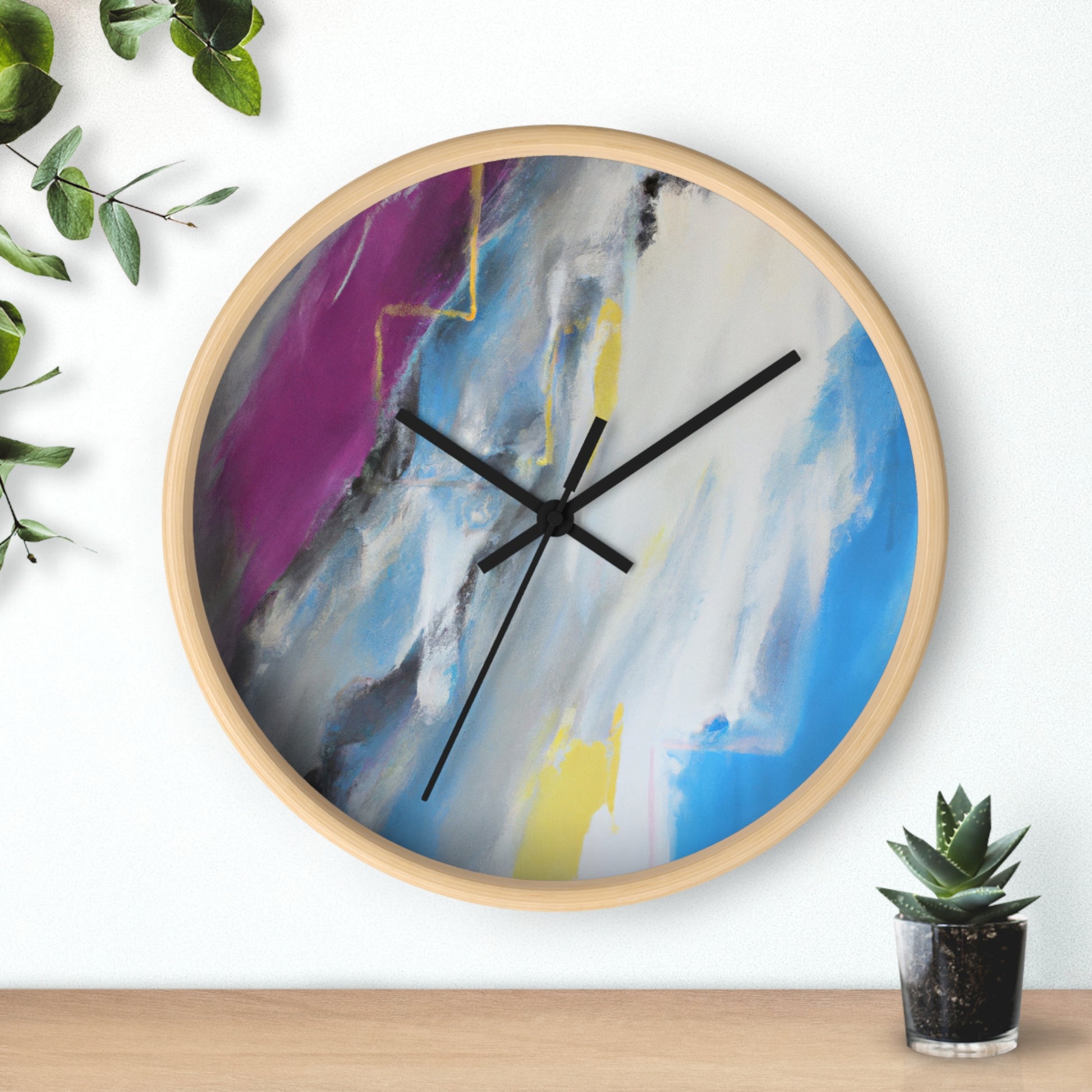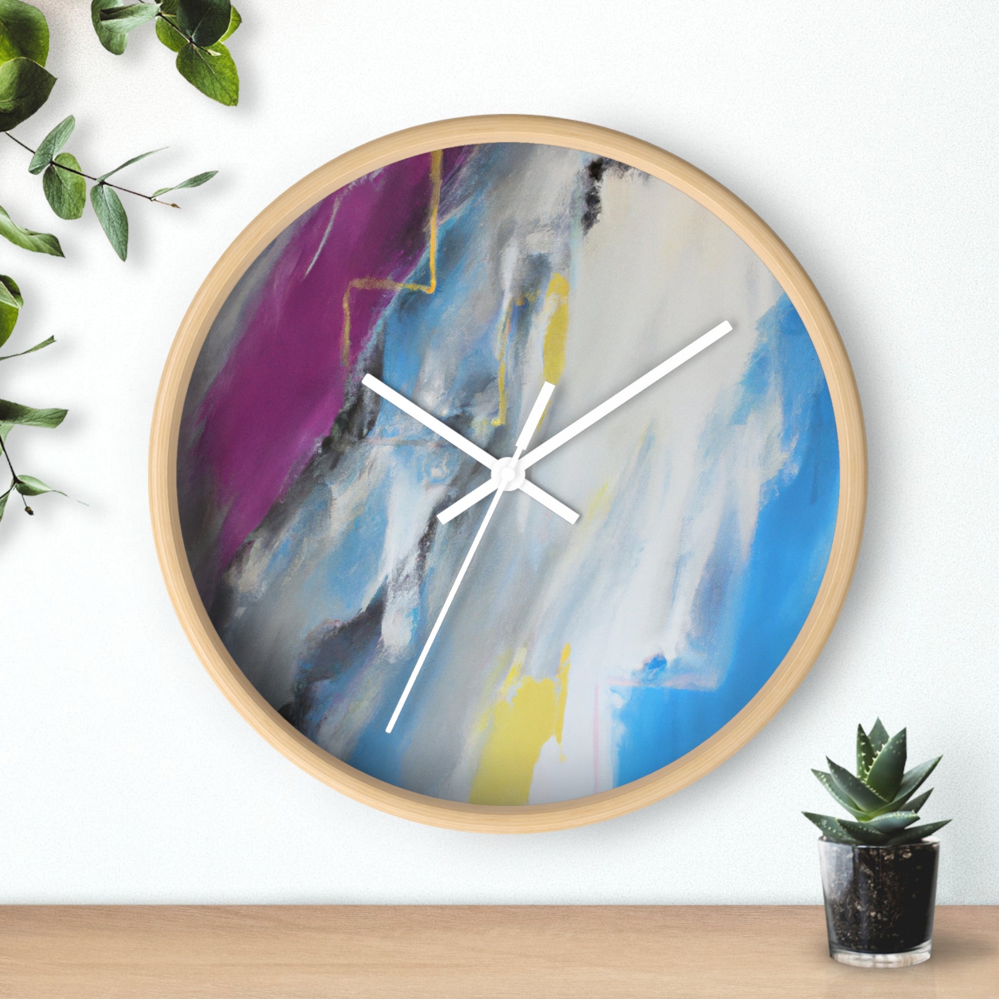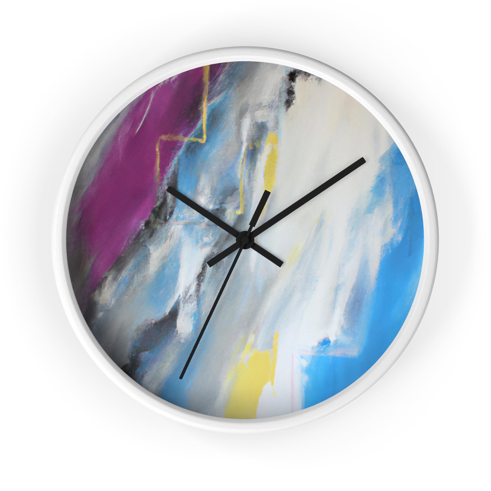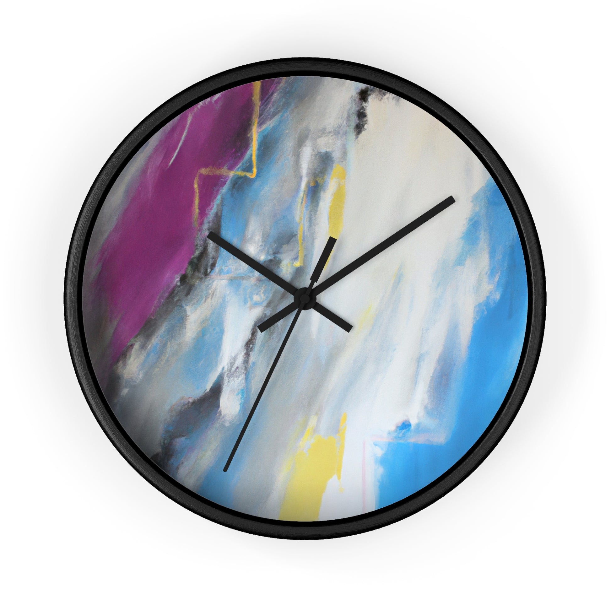 This modern abstract painting clock is perfect for any office! Measuring 12" in diameter, this timeless piece combines the intricate beauty of watercolor artwork with the practical utility of telling time. Made with durable metal hands and a quartz analogue movement, it guarantees accurate timekeeping. The muted color palette compliments any décor and is certain to make a statement. #abstractpainting #clock #office #watercolor #accurate #modern #durable #intricate #timeless #statementpiece #interior