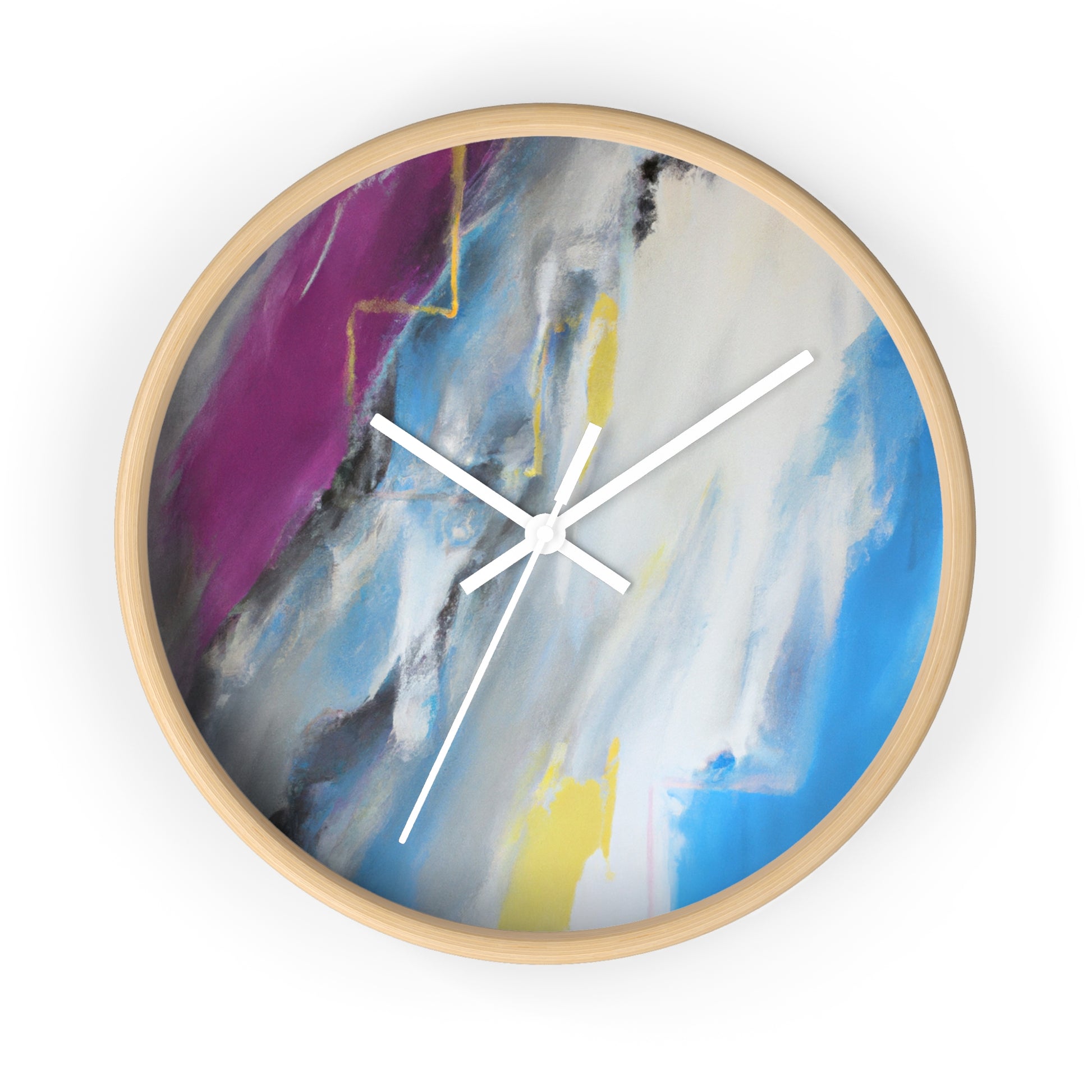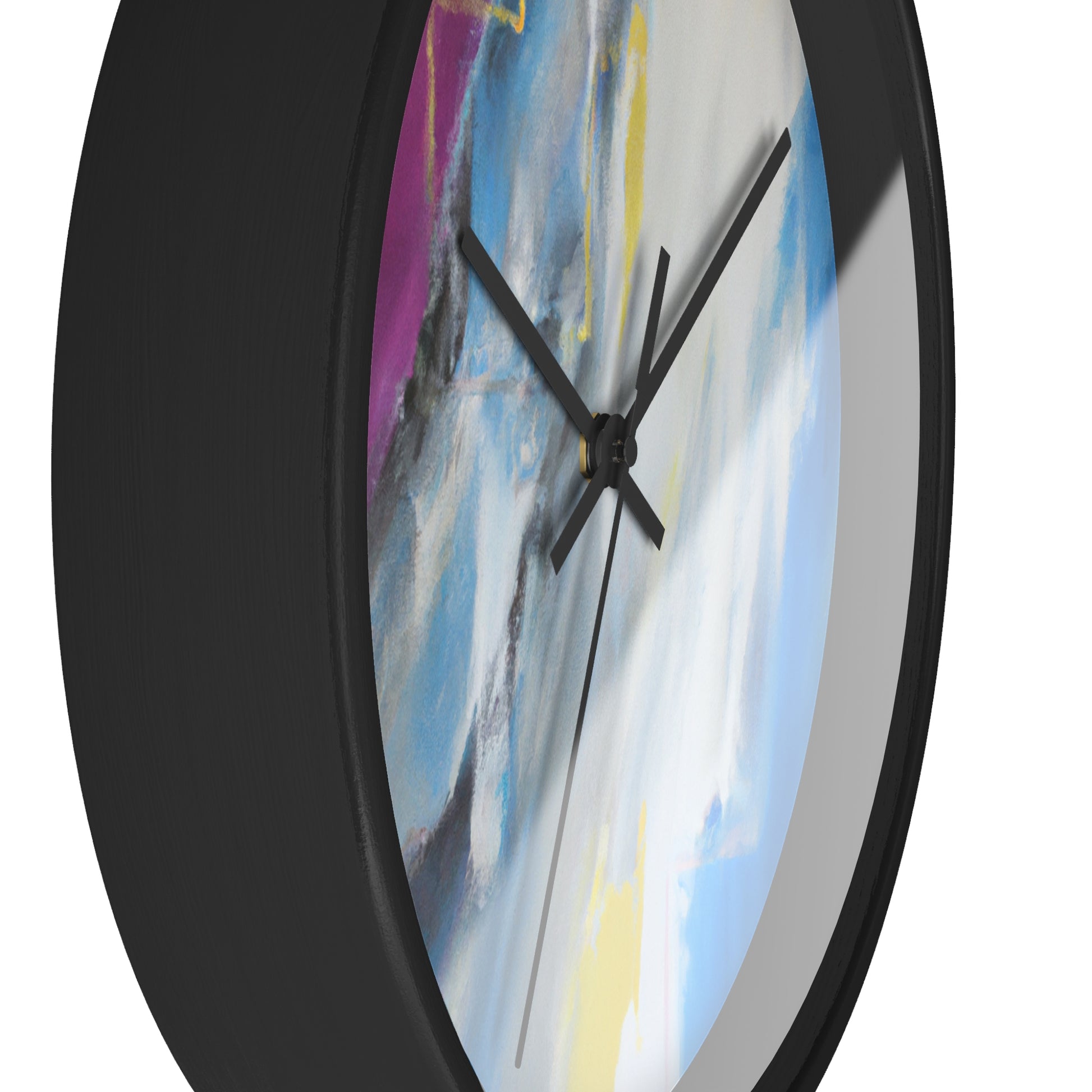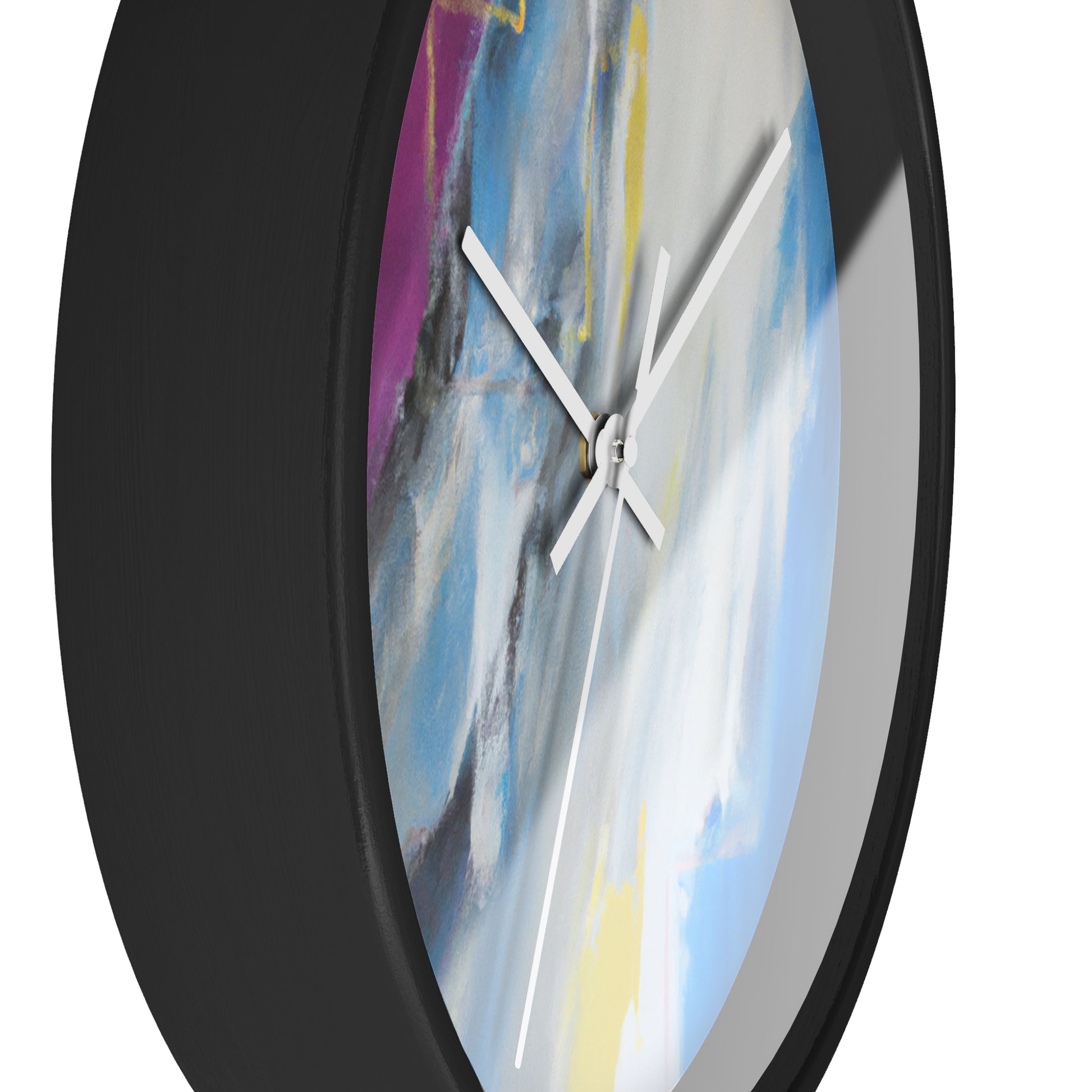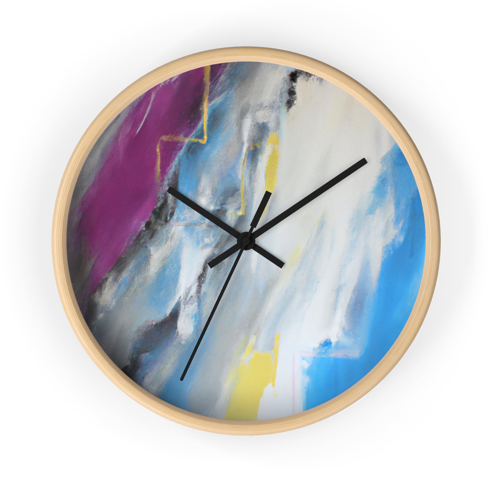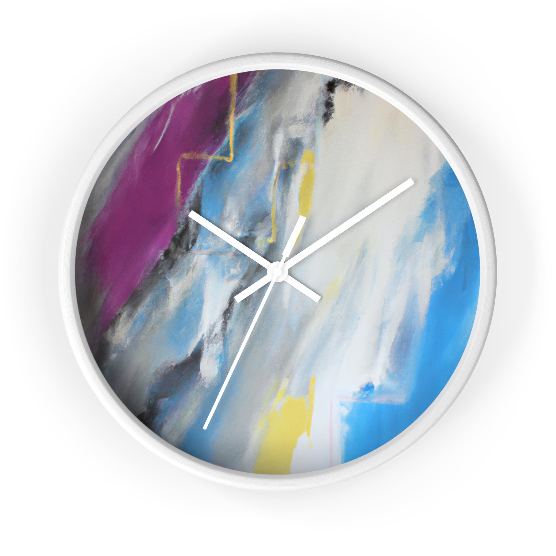 This modern abstract painting clock is perfect for any office! Measuring 12" in diameter, this timeless piece combines the intricate beauty of watercolor artwork with the practical utility of telling time. Made with durable metal hands and a quartz analogue movement, it guarantees accurate timekeeping. The muted color palette compliments any décor and is certain to make a statement. #abstractpainting #clock #office #watercolor #accurate #modern #durable #intricate #timeless #statementpiece #interior