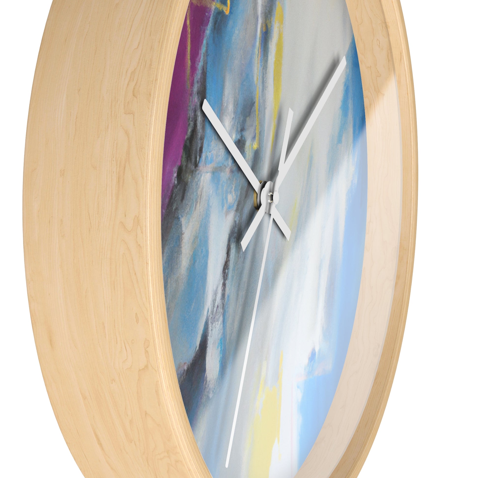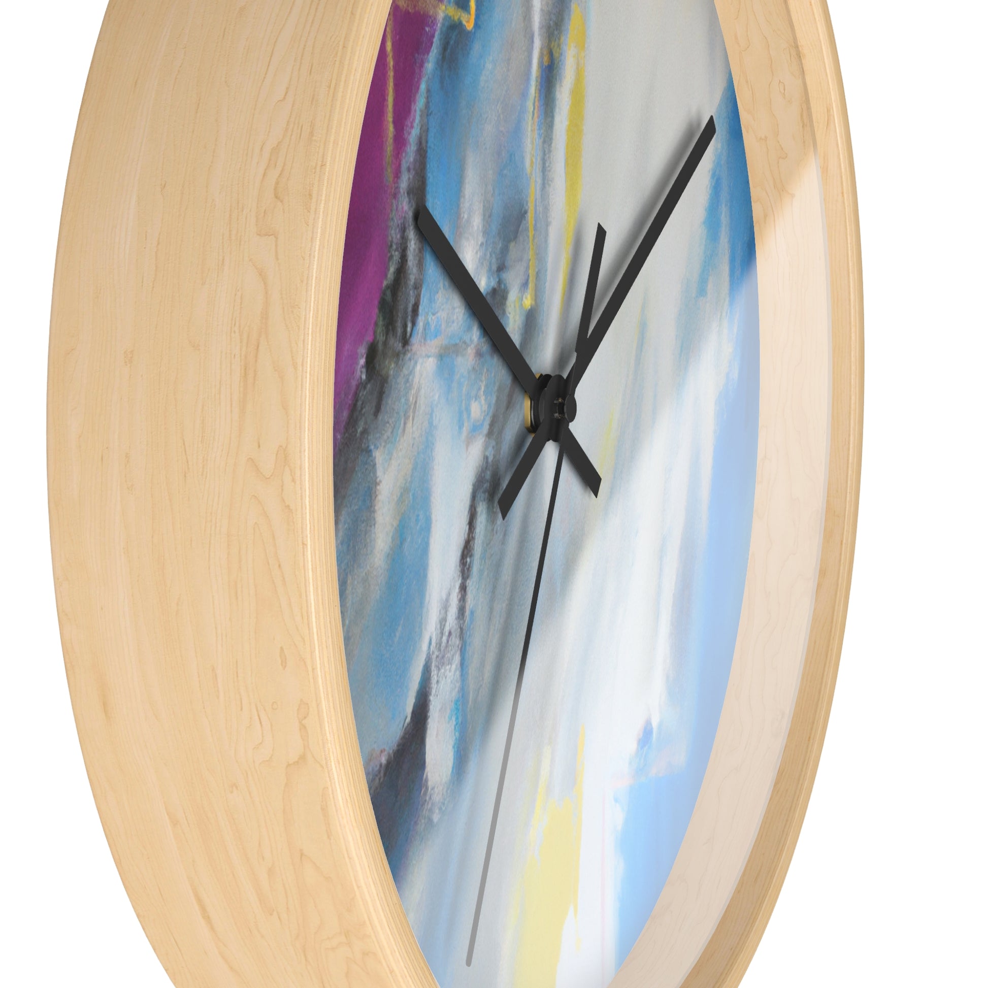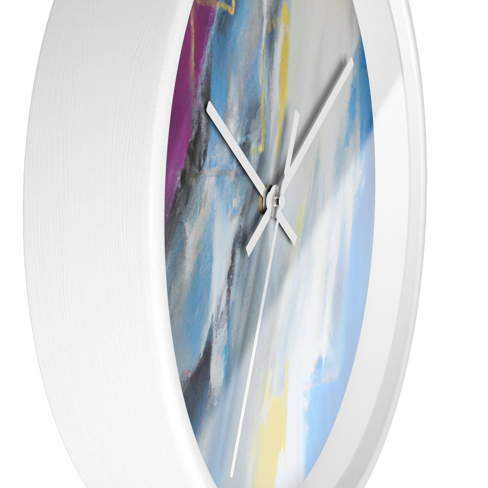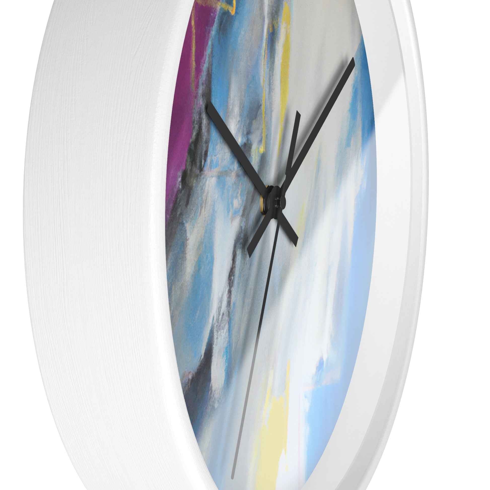 This modern abstract painting clock is perfect for any office! Measuring 12" in diameter, this timeless piece combines the intricate beauty of watercolor artwork with the practical utility of telling time. Made with durable metal hands and a quartz analogue movement, it guarantees accurate timekeeping. The muted color palette compliments any décor and is certain to make a statement. #abstractpainting #clock #office #watercolor #accurate #modern #durable #intricate #timeless #statementpiece #interior