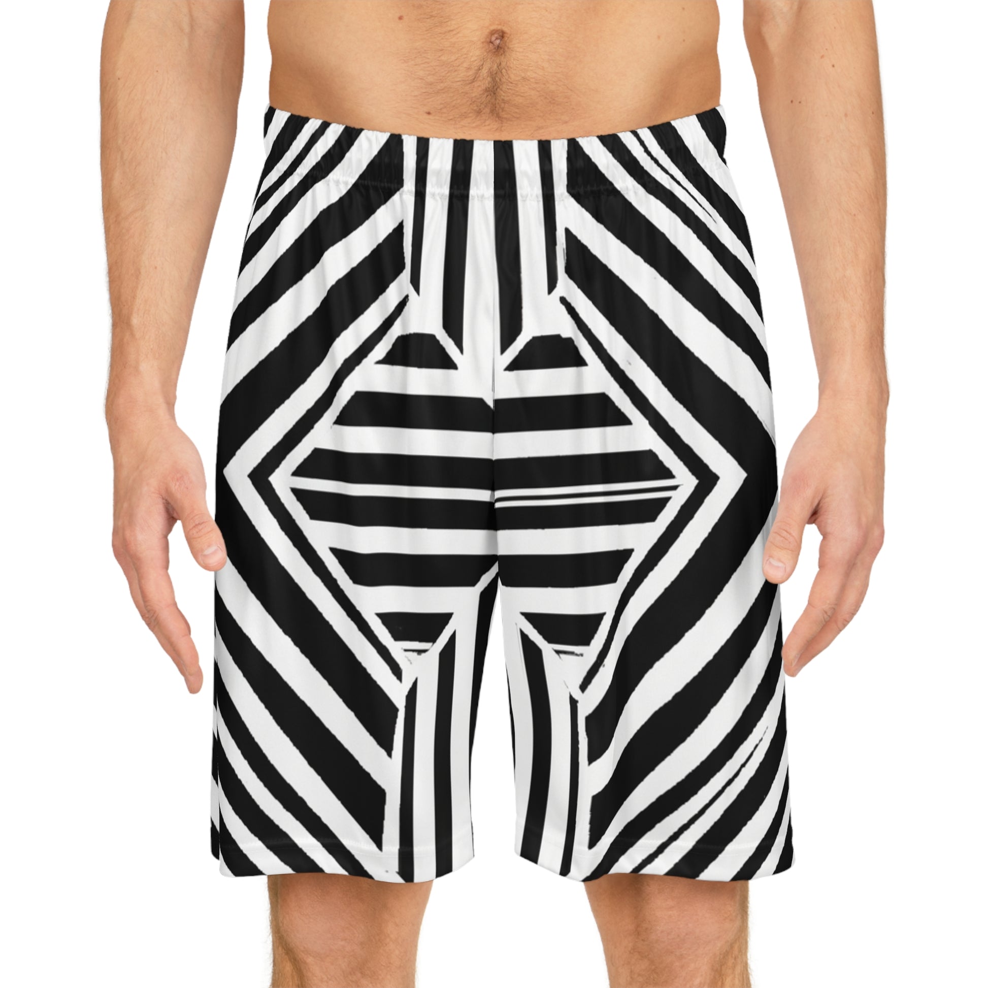 These stylish geometric patterned shorts are the perfect addition to your summer wardrobe. Featuring an alluring black and white print inspired by captivating geometry, these shorts offer maximum comfort and flexibility. Detailed with a drawstring for a perfect fit, you won't want to take them off! #shorts #geometricpattern #blackandwhite #style #summer #comfort #flexible #drawstring #breathable #unisex #outfitready