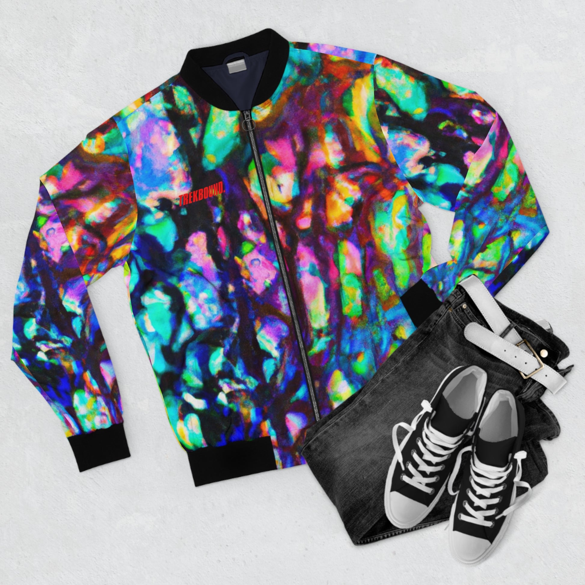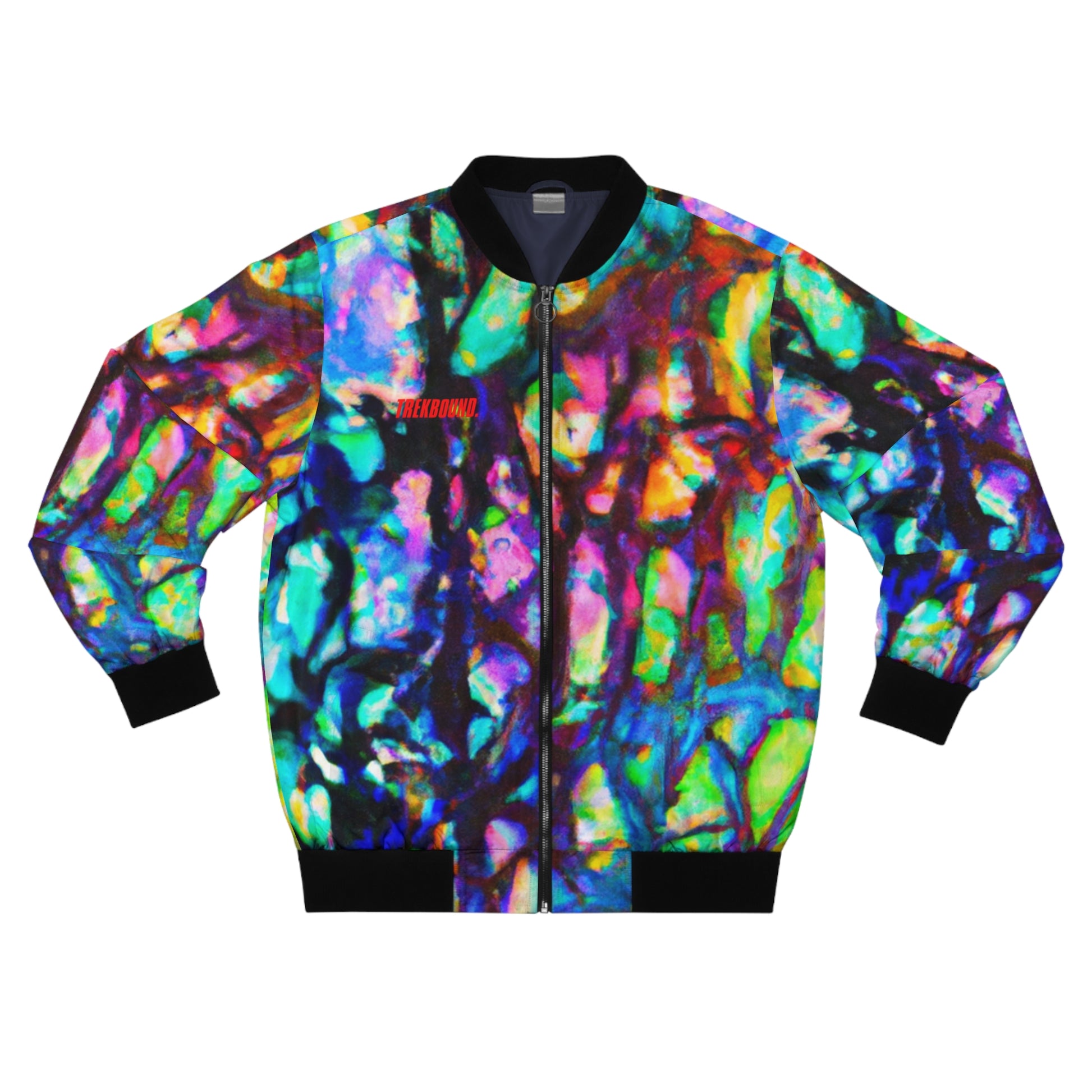 This eye-catching jacket features an intricate and detailed pattern in an unique holographic color palette designed inspired by Owen Jones. From the bold golds and purples to the delicate aquas and oranges, every inch of this painting creates an atmosphere of intrigue and excitement. Add a unique accent to your wordrobe with this one-of-a-kind jacket! #holographic #OwenJones #pattern #canvas #accentpiece #artistic #dynamic #unique #colorful #modern #statementpiece