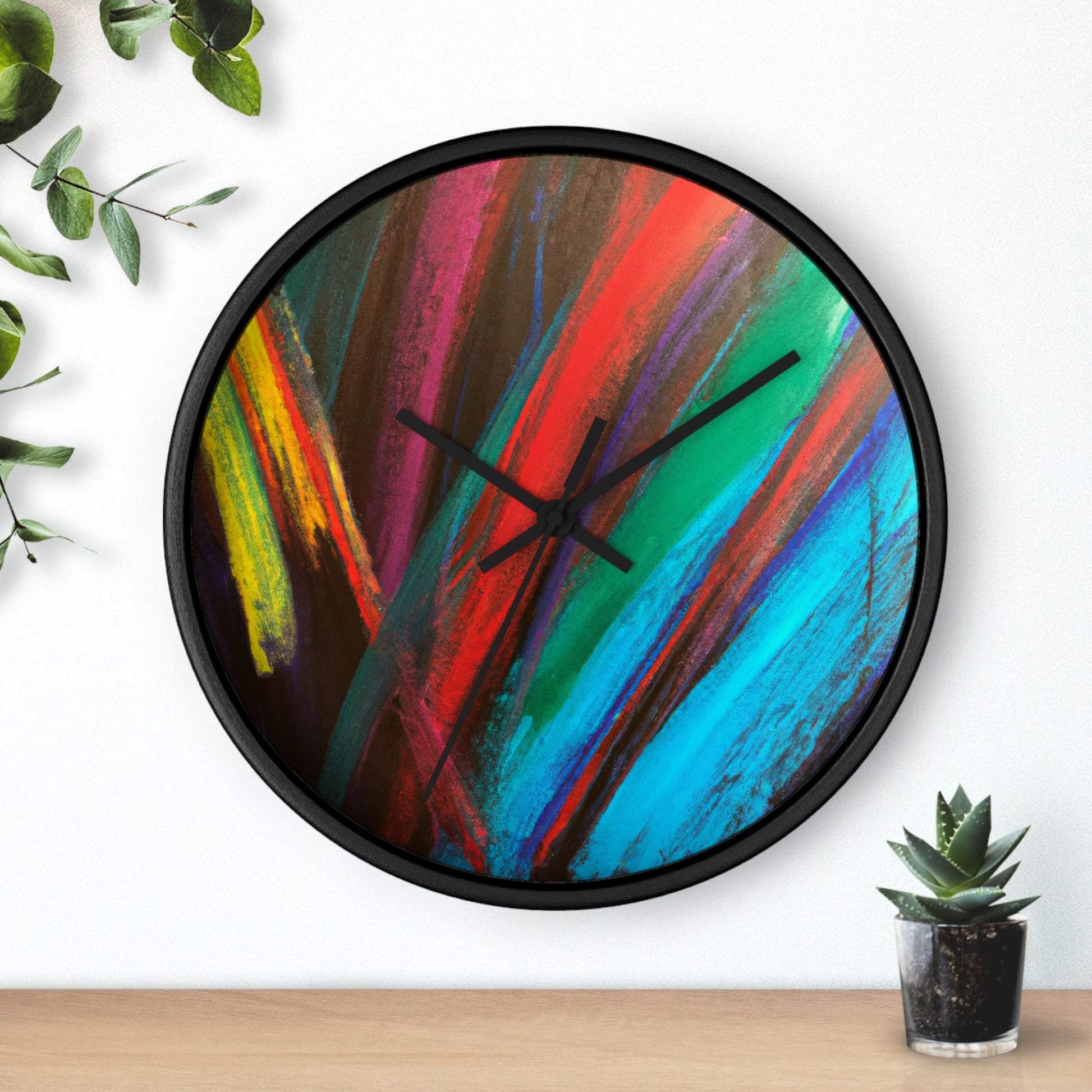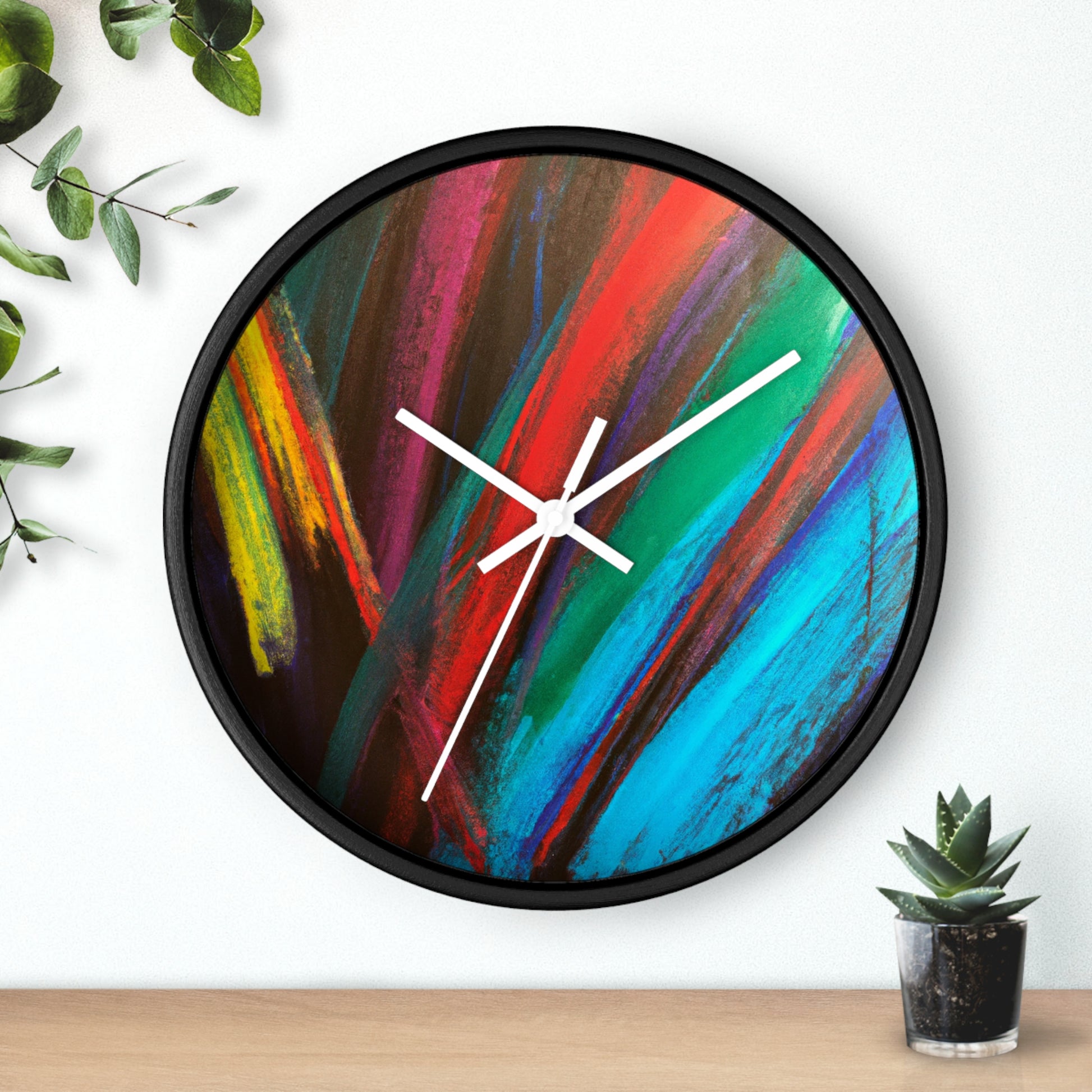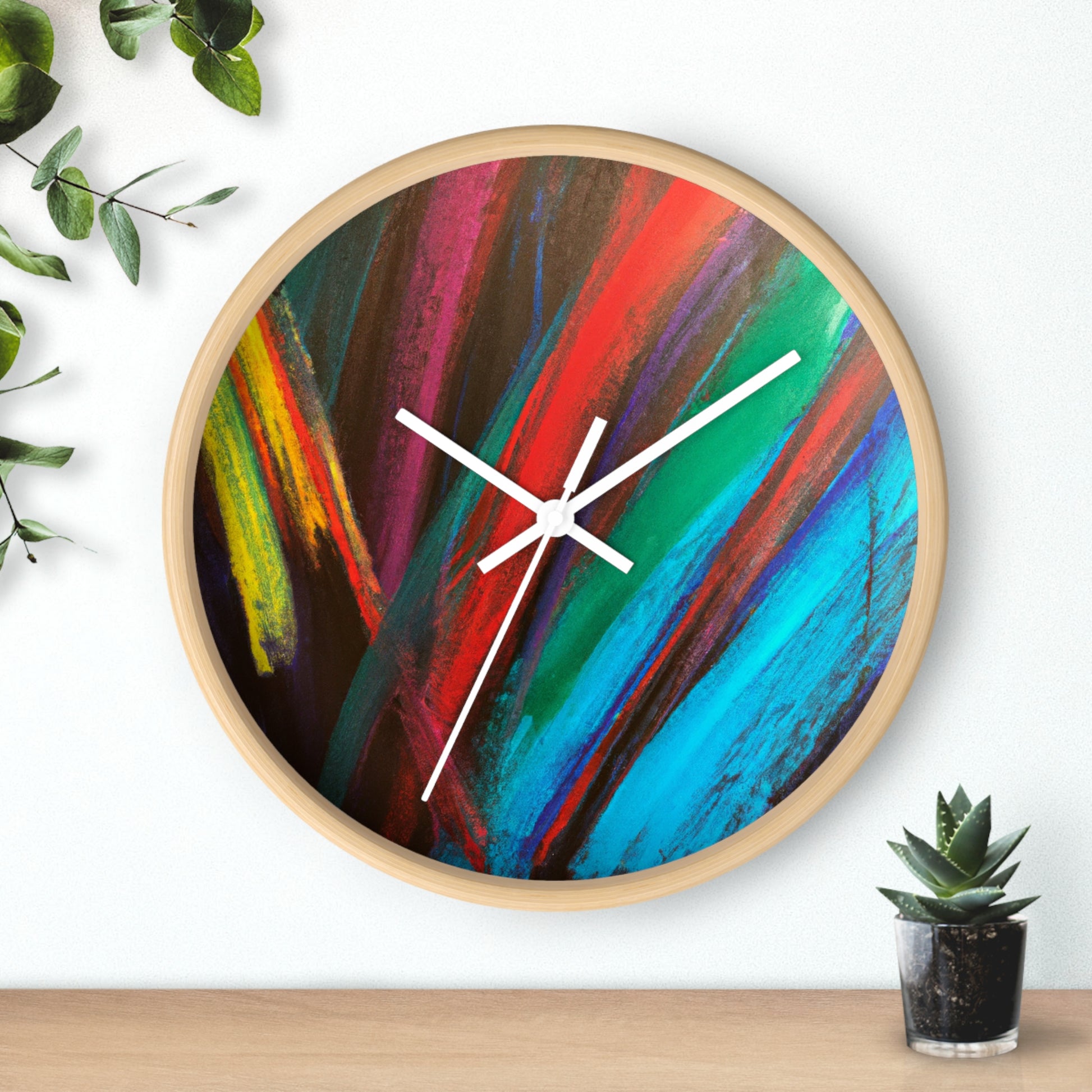 This modern and stylish office clock is a perfect combination of abstract painting and clock elements. The stylish design blends in perfectly with the office business atmosphere. The clock is constructed of a wooden frame and the vivid abstract painting in the center. Modern and eye-catching, this clock is the perfect addition to any office. #officeclock #abstractpainting #clock #modernClock #abstract #woodenclock #stylish #vivid #perfectaddition #businesstatmosphere #officeaccessory