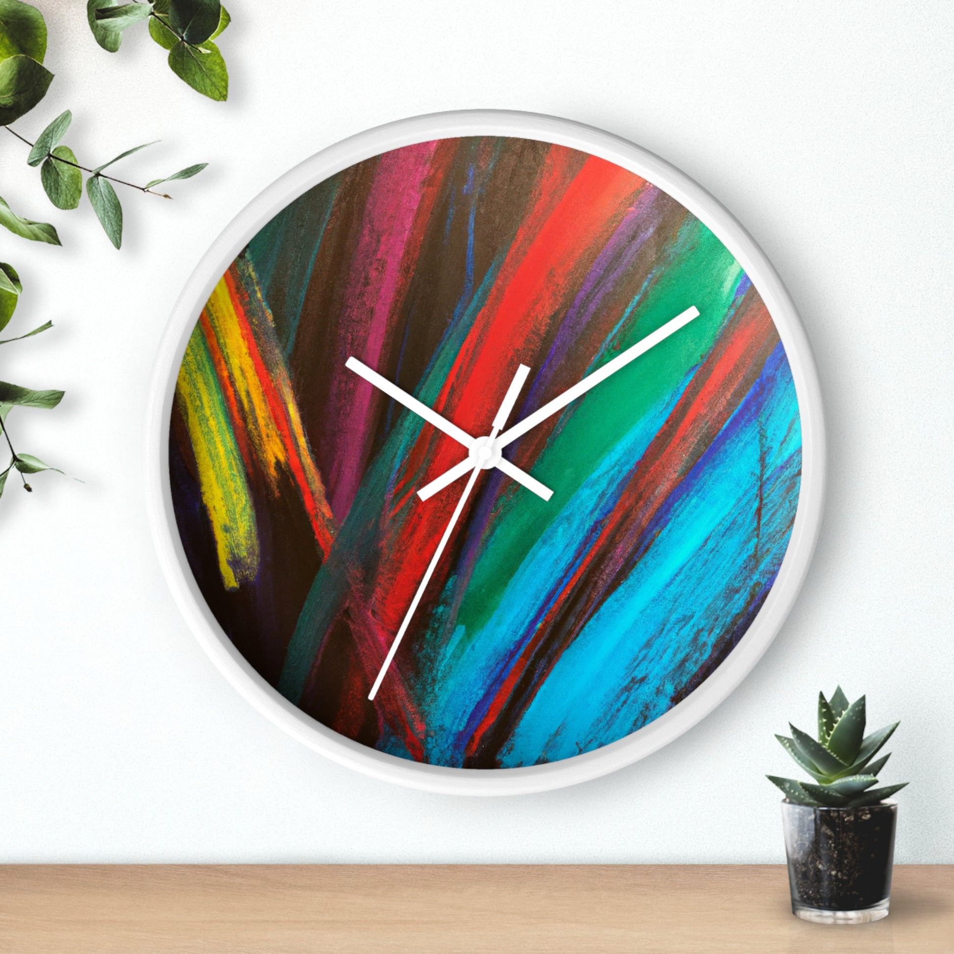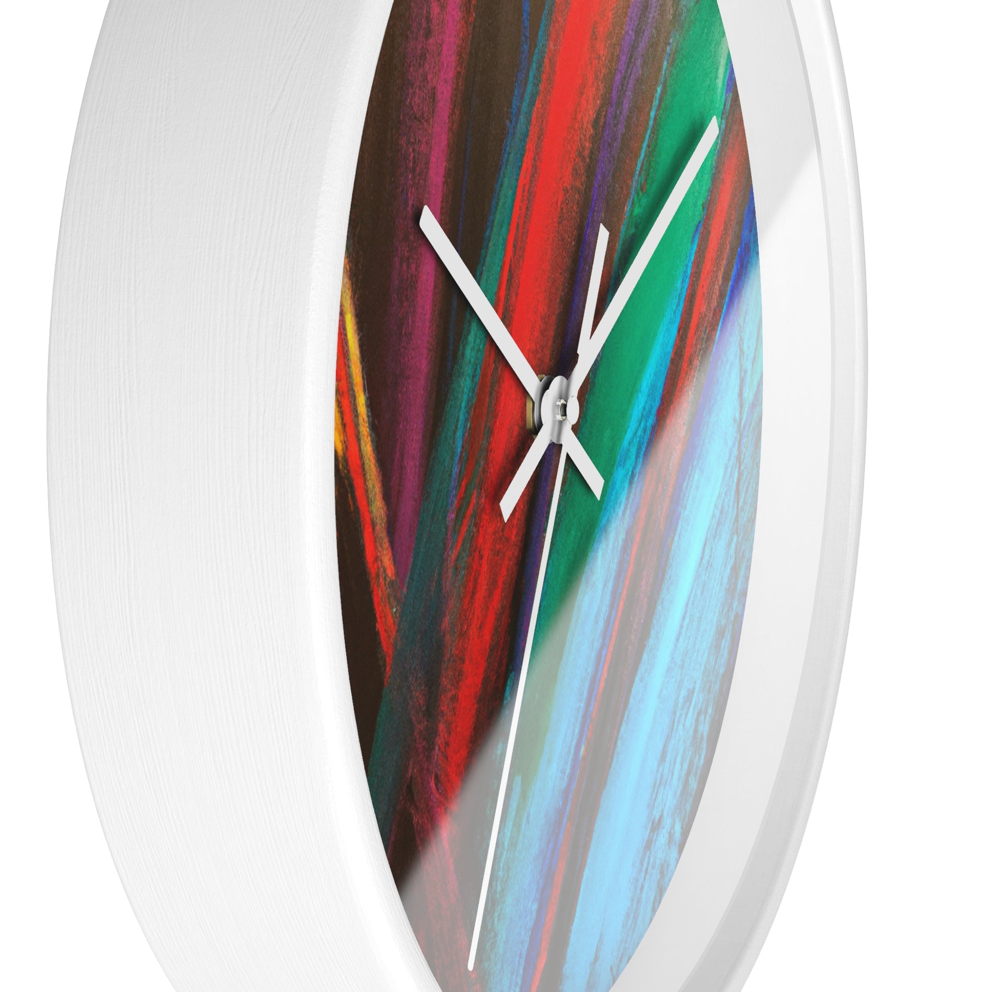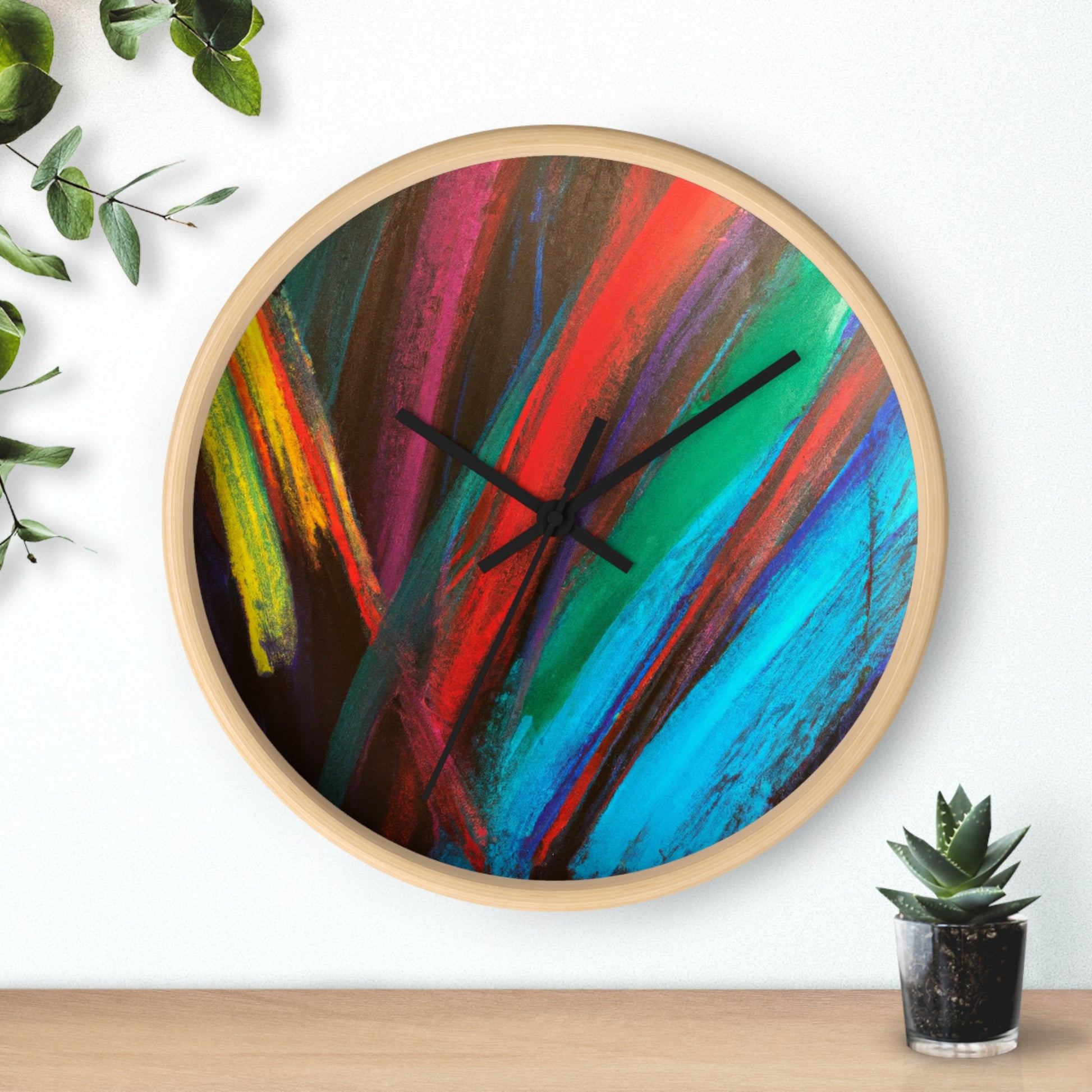 This modern and stylish office clock is a perfect combination of abstract painting and clock elements. The stylish design blends in perfectly with the office business atmosphere. The clock is constructed of a wooden frame and the vivid abstract painting in the center. Modern and eye-catching, this clock is the perfect addition to any office. #officeclock #abstractpainting #clock #modernClock #abstract #woodenclock #stylish #vivid #perfectaddition #businesstatmosphere #officeaccessory