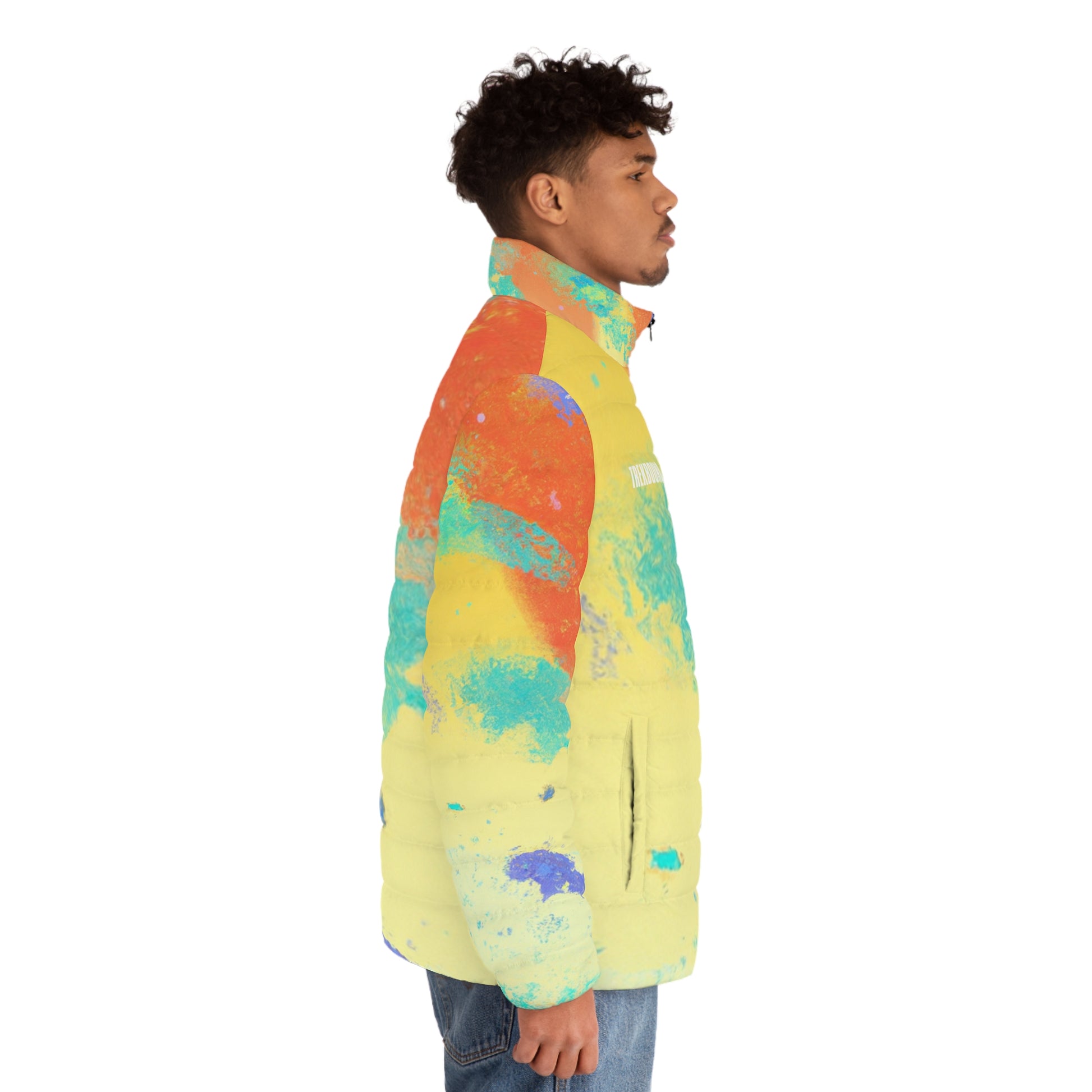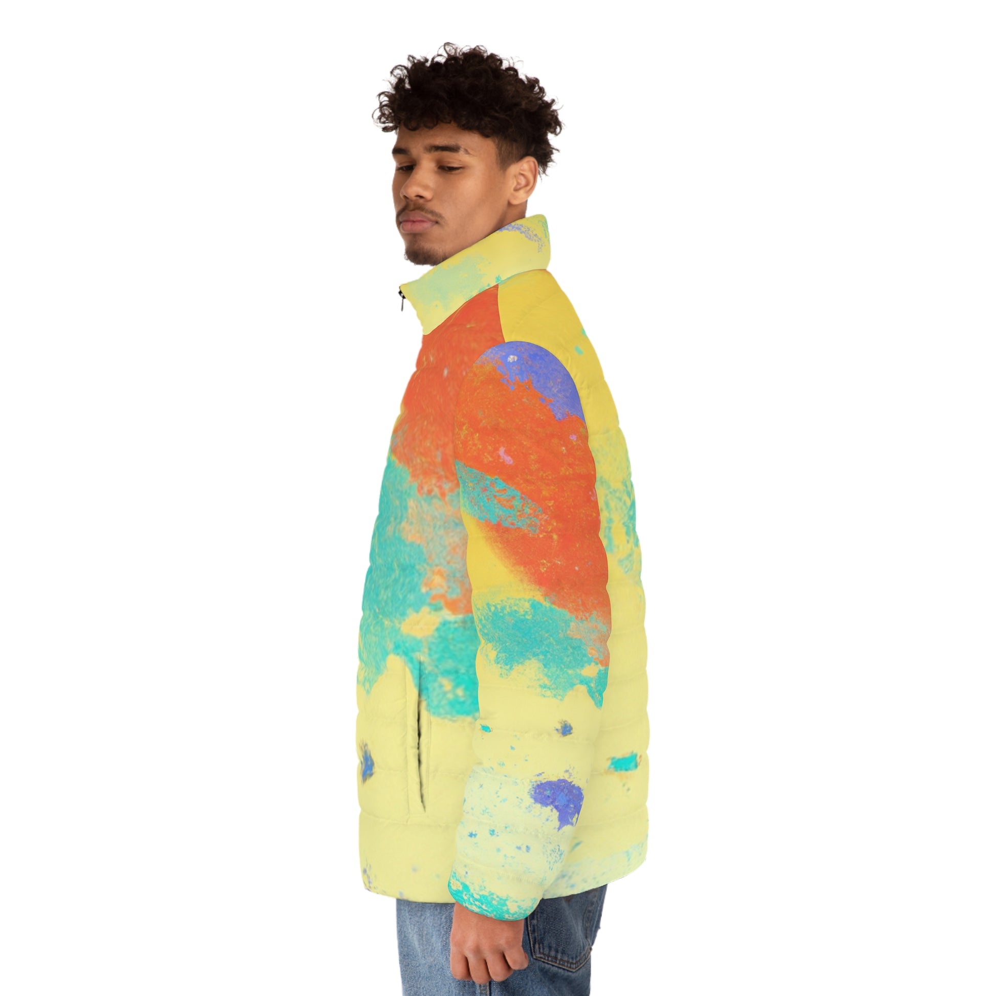 Feel the dreamy comforts of the sky each time you put on this stylish bomber jacket. Its beautiful painting of a cloud-filled sky with vibrant abstract elements will surely mesmerize you. It features an iconic silhoutte with ribbed trims and an interior lining filled with warmth and comfort. You'll be sure to turn heads with this fashionable outerwear! #bomberjacket #painting #dreamsky #abstract #style #vibrant #clouds #outerwear #comfort #silhoutte #warmth