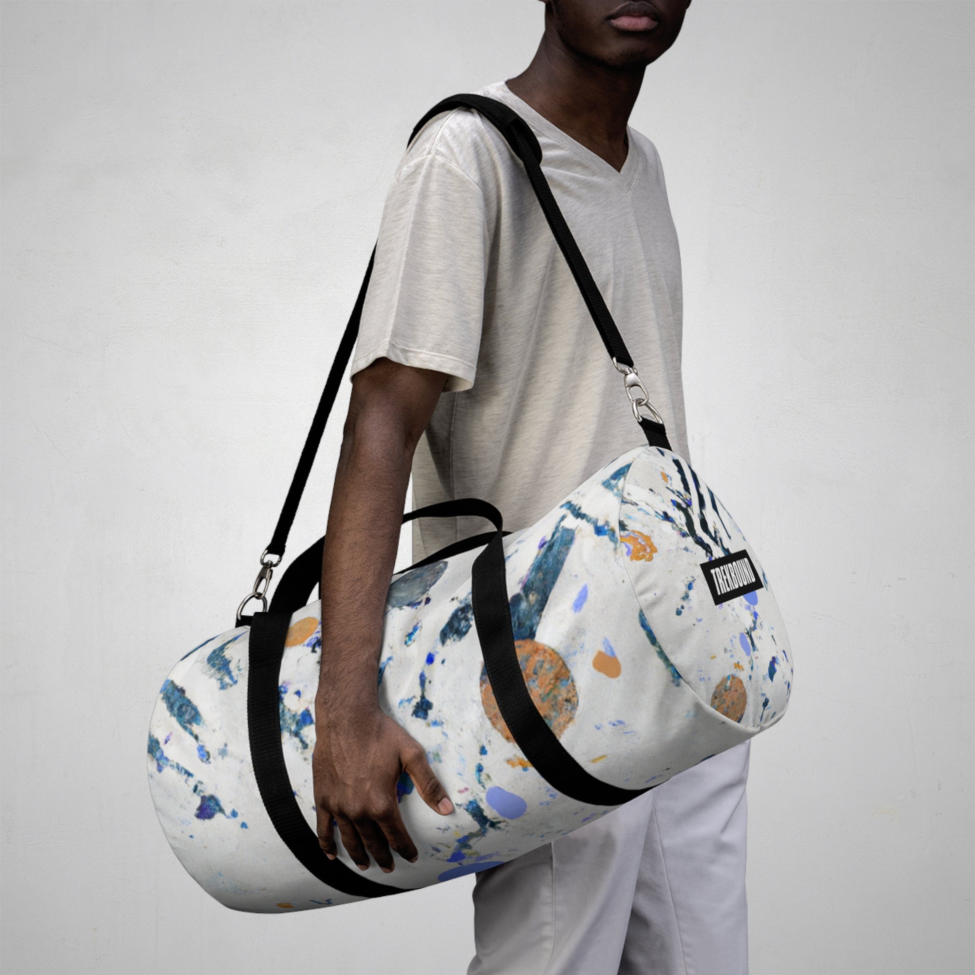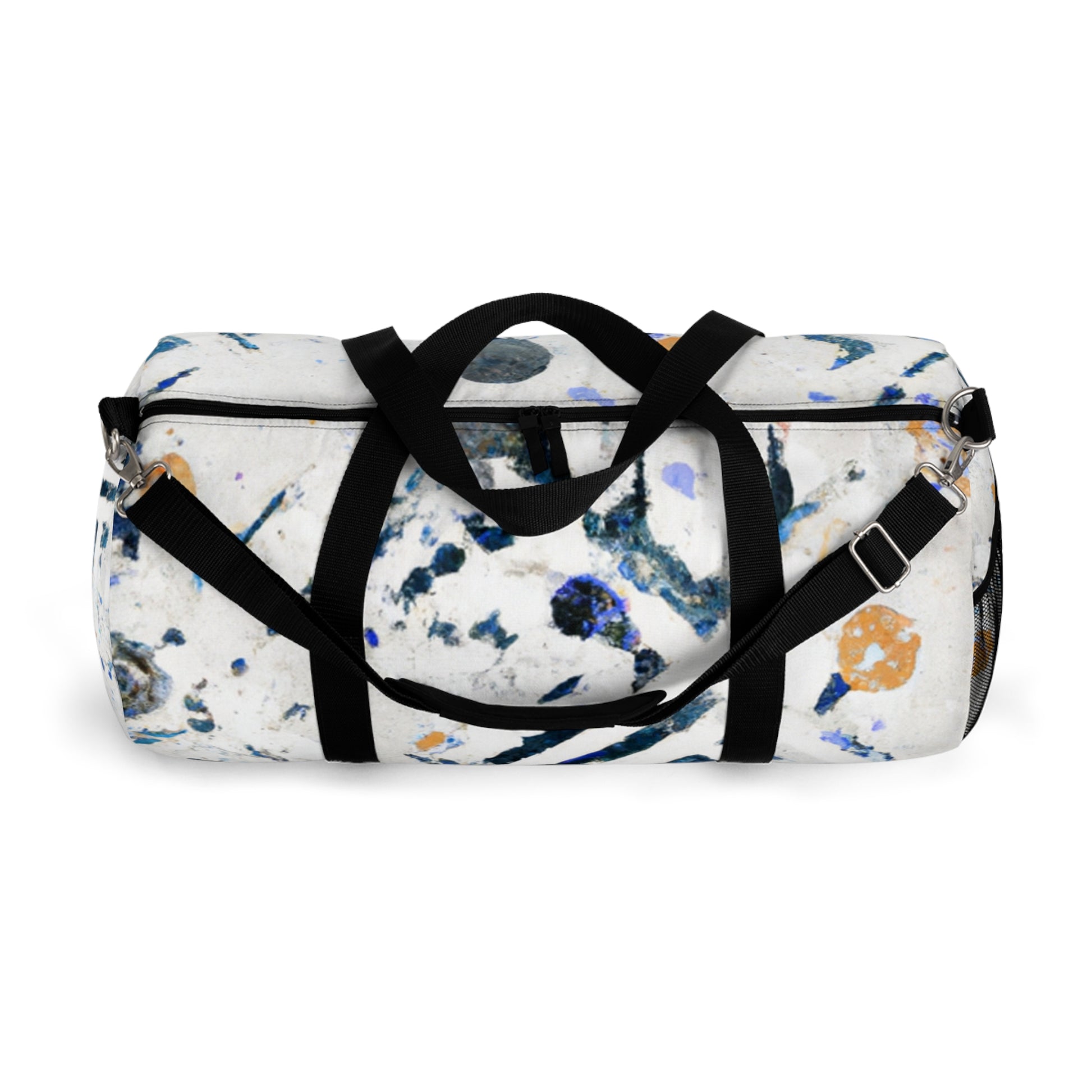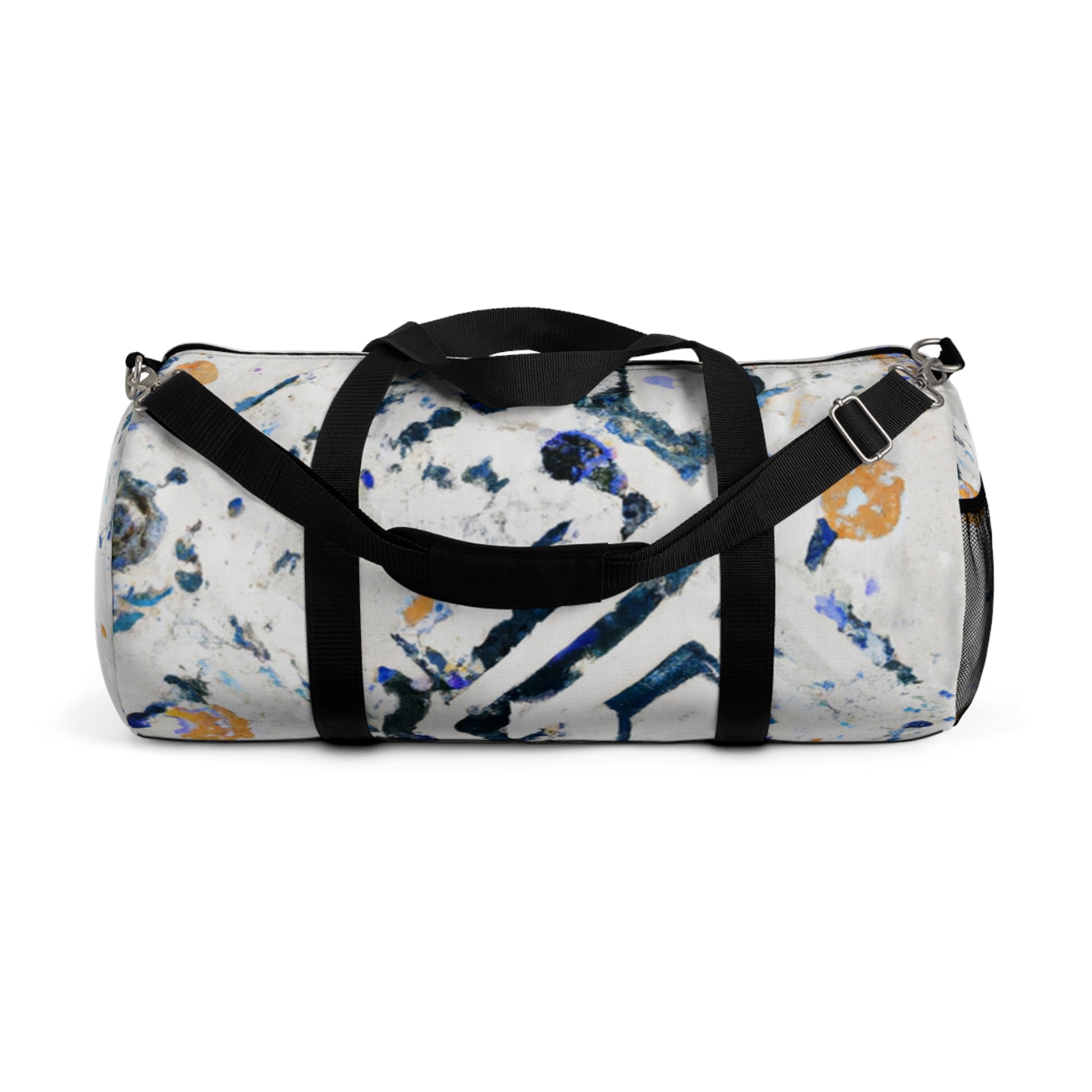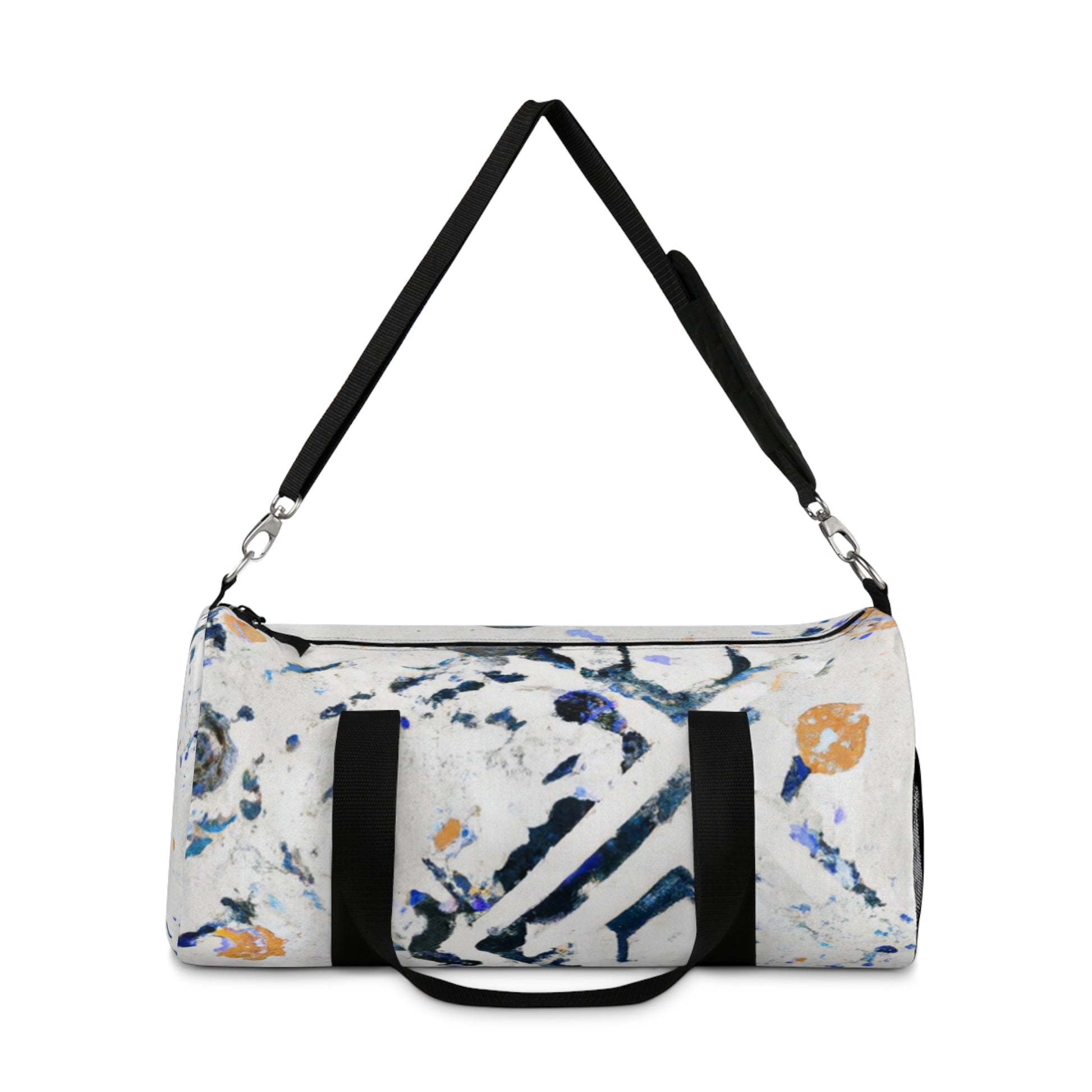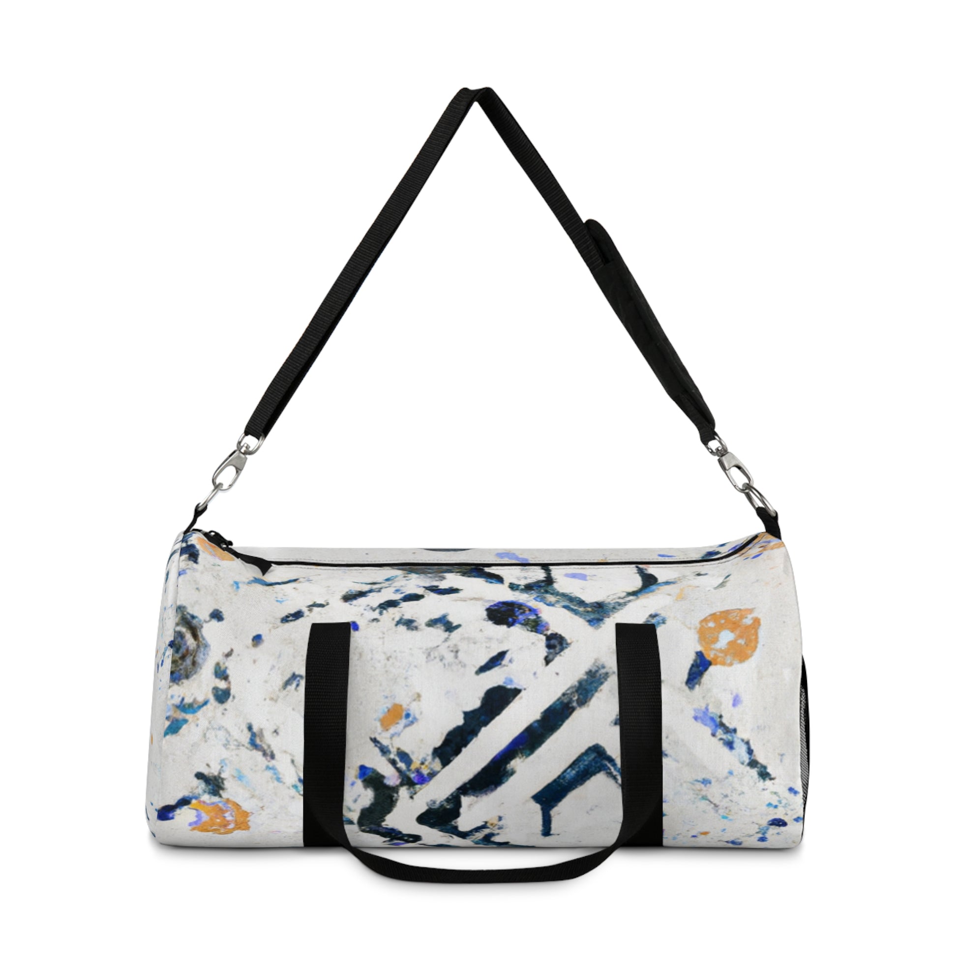 This bright and bold duffel bag is the perfect way to lug your everyday essentials around. With an abstract geometric pattern and cool colors perfect for any digital art design, this bag has an eye-catching look that'll make you stand out. And with plenty of room for all your belongings, you'll never have to worry about running out of space! #duffelbag #abstractgeometric #digitalartdesigns #style #colors #travel #essentials #convenient #shoulderbag #niceandroomy #goeverywhere