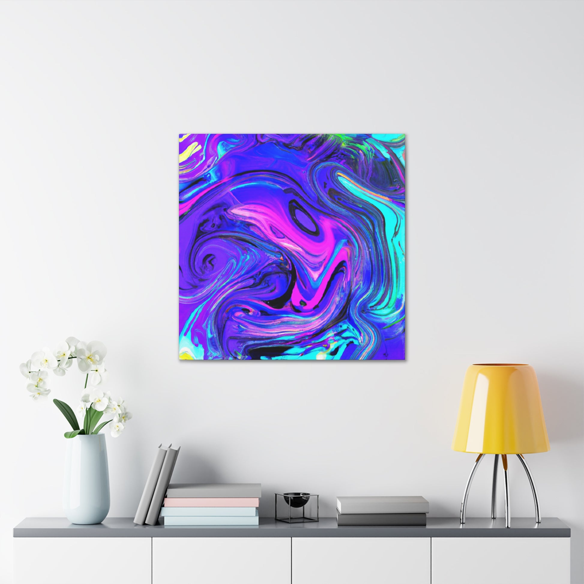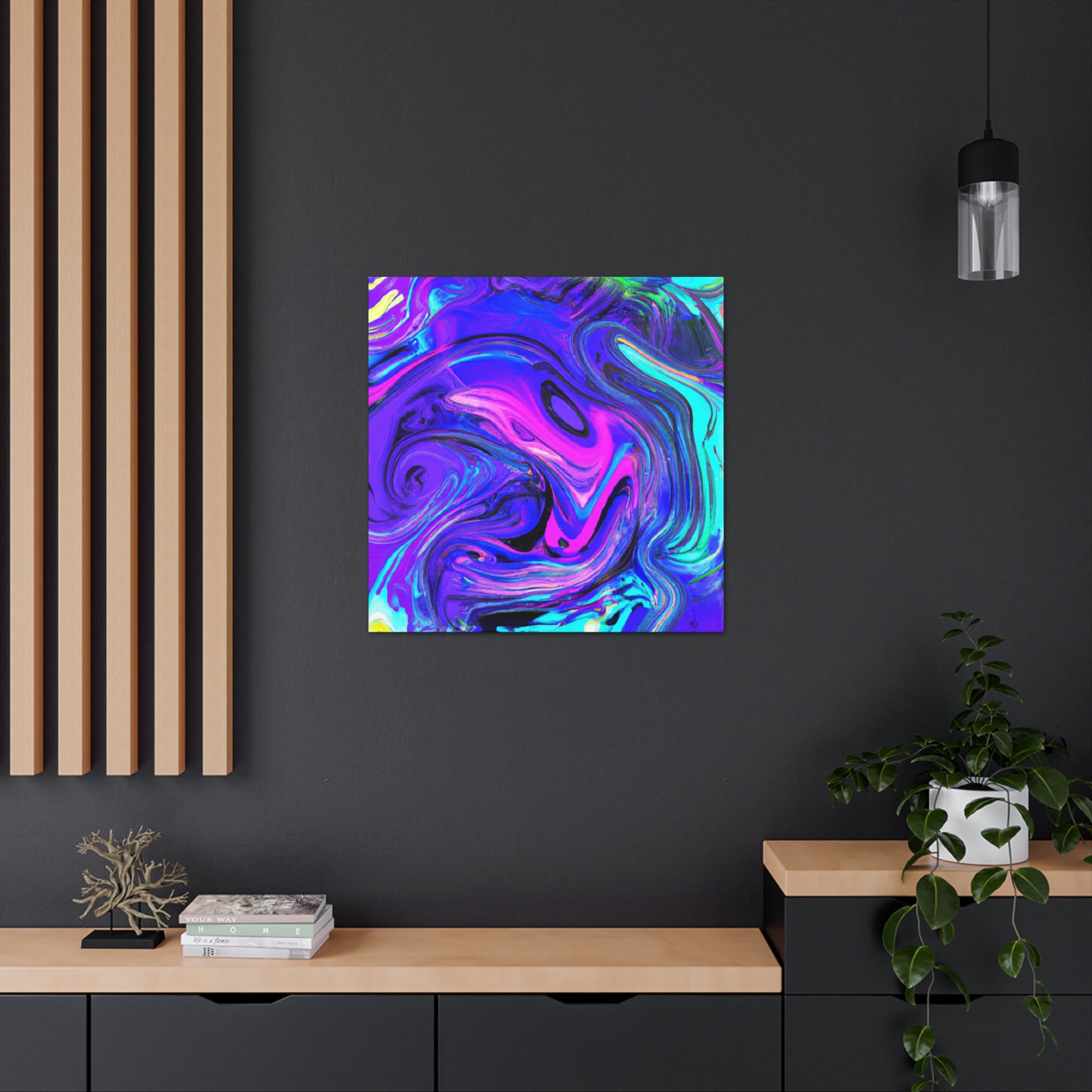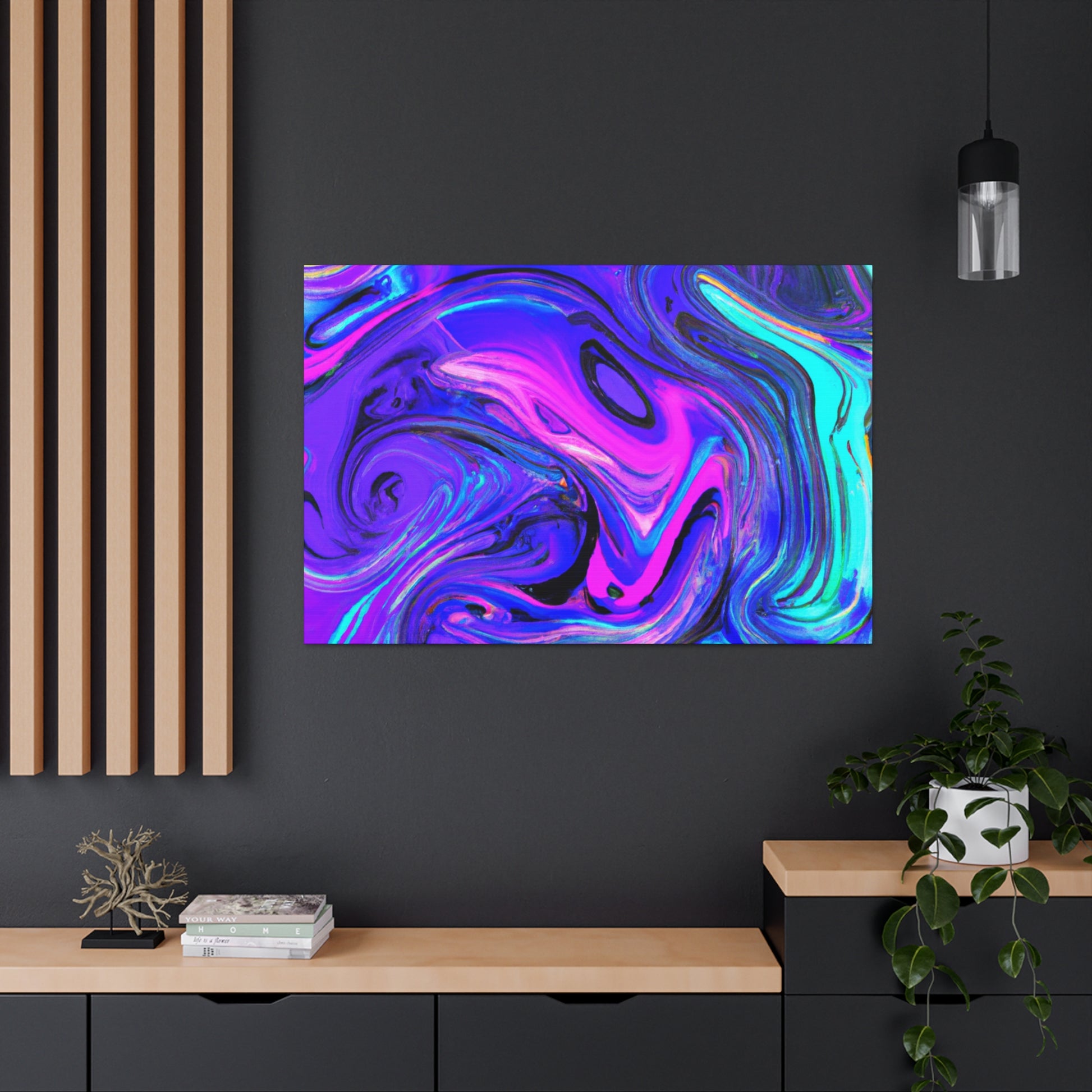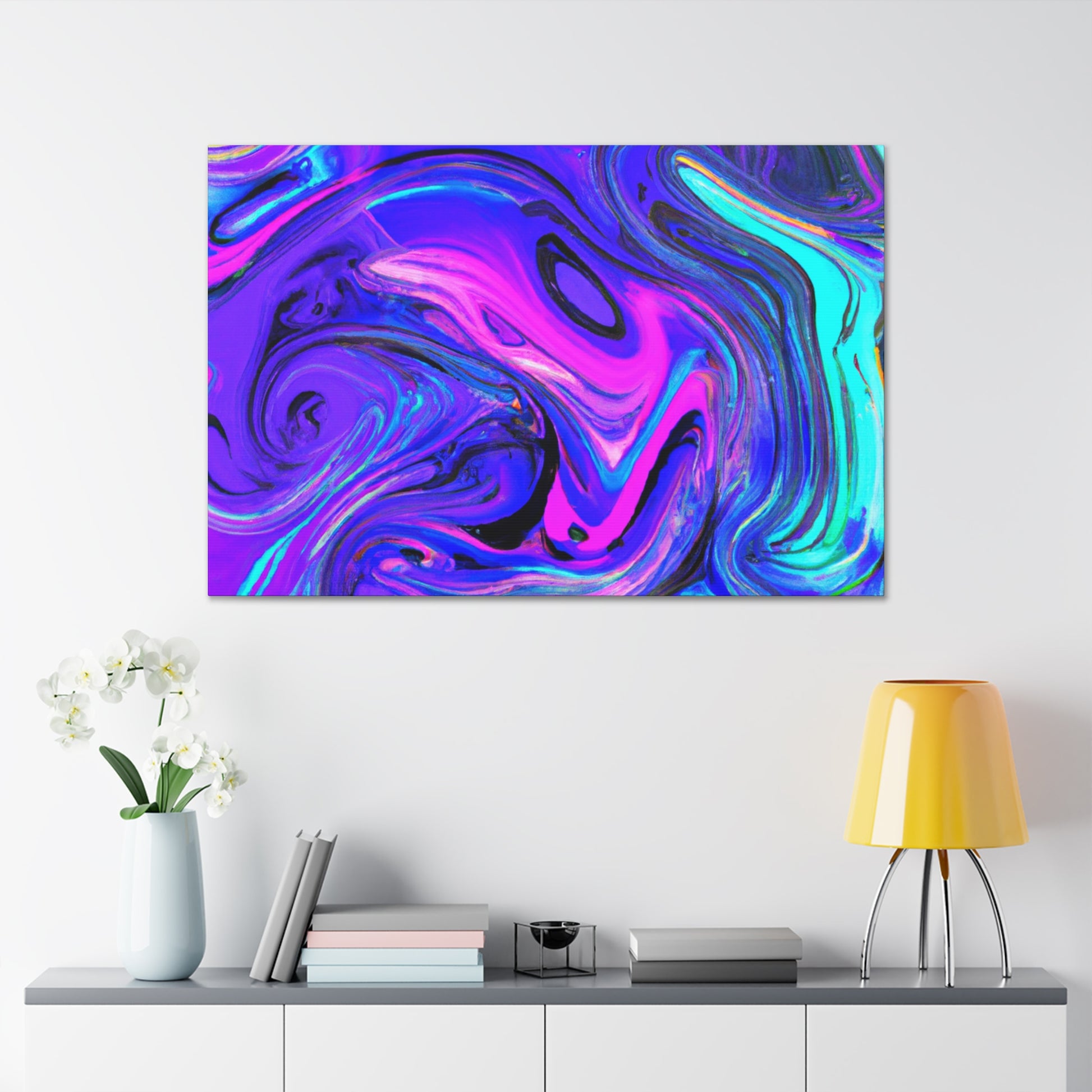 This vibrant and unique artwork is made with metallic paints, creating an eye-catching piece of digital art. Printed on thick gallery-style canvas, this is a perfect collection piece and is a must-have for art lovers. Feel inspired and create a conversation in your home with this stunning trippy canvas painting! #art #digitalart #painting #homeart #decor #canvas #style #interiordecor #gallerystyle #trippypainting #homestyling