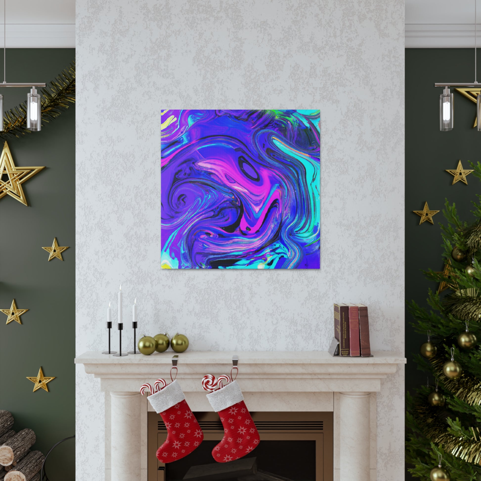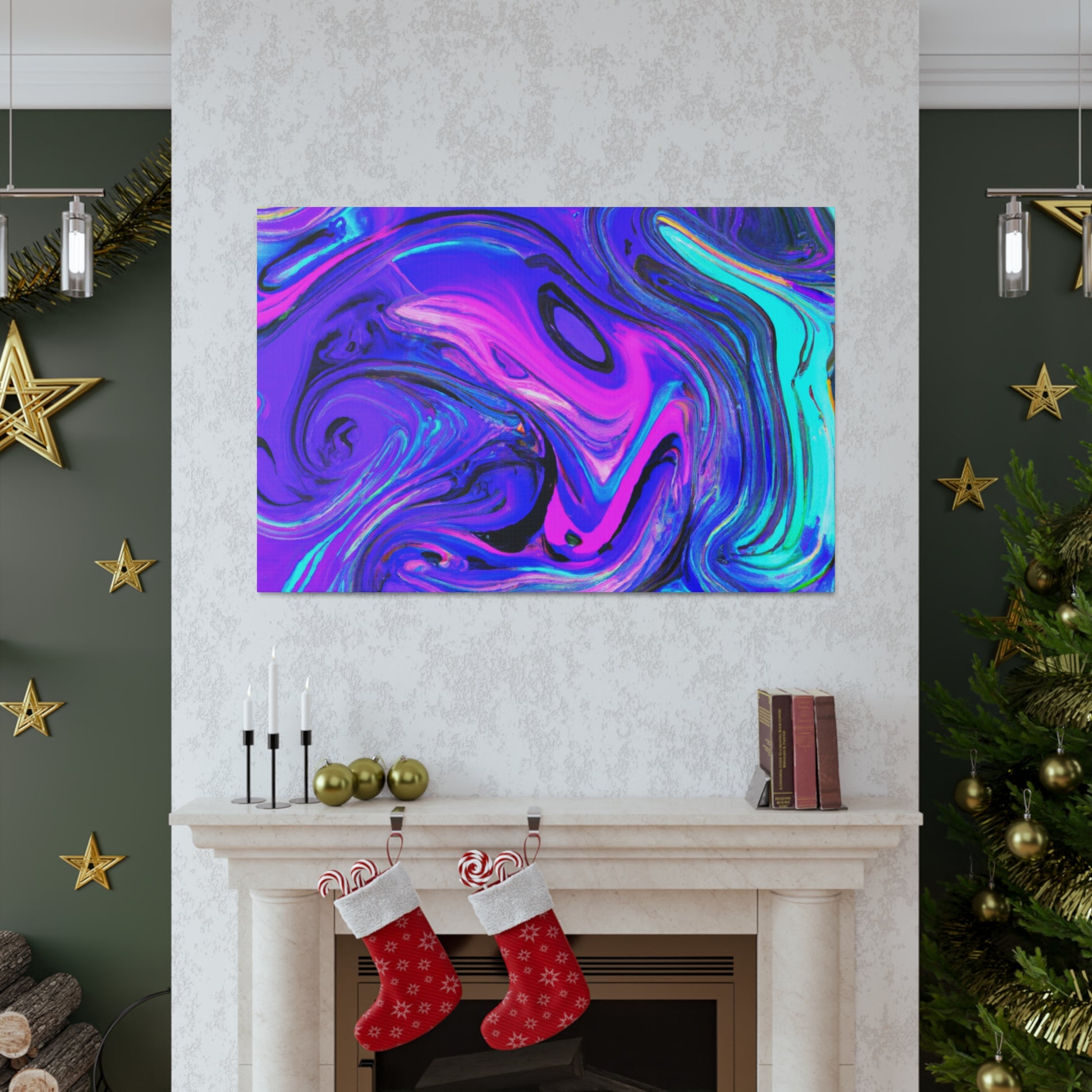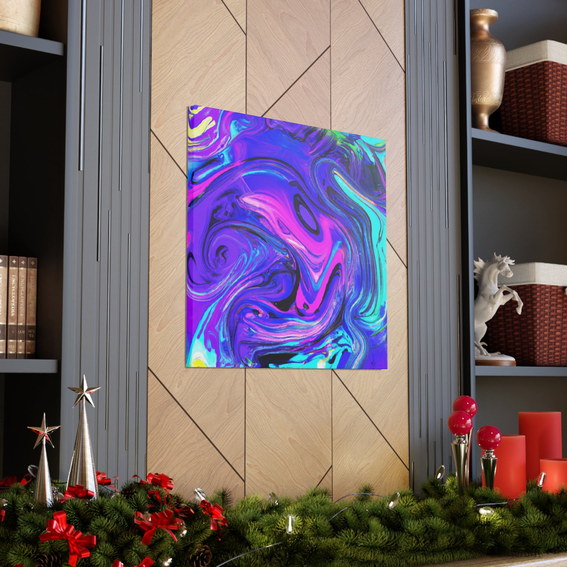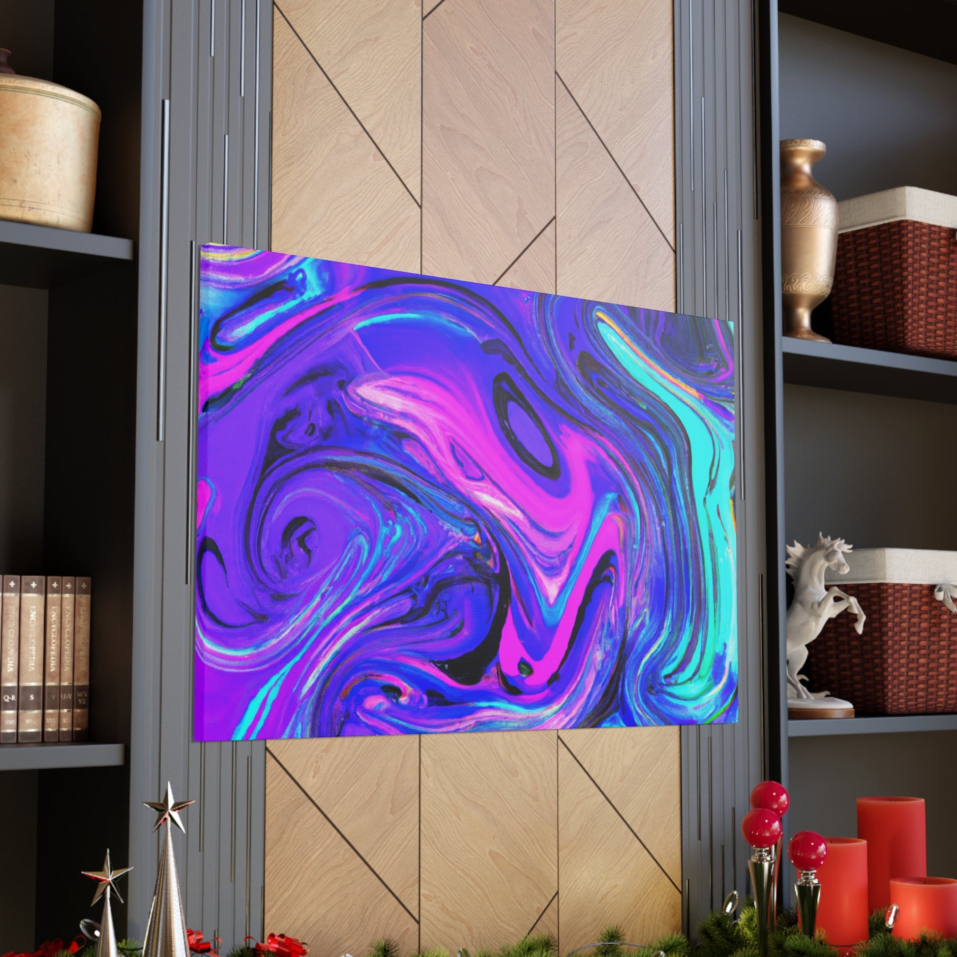 This vibrant and unique artwork is made with metallic paints, creating an eye-catching piece of digital art. Printed on thick gallery-style canvas, this is a perfect collection piece and is a must-have for art lovers. Feel inspired and create a conversation in your home with this stunning trippy canvas painting! #art #digitalart #painting #homeart #decor #canvas #style #interiordecor #gallerystyle #trippypainting #homestyling
