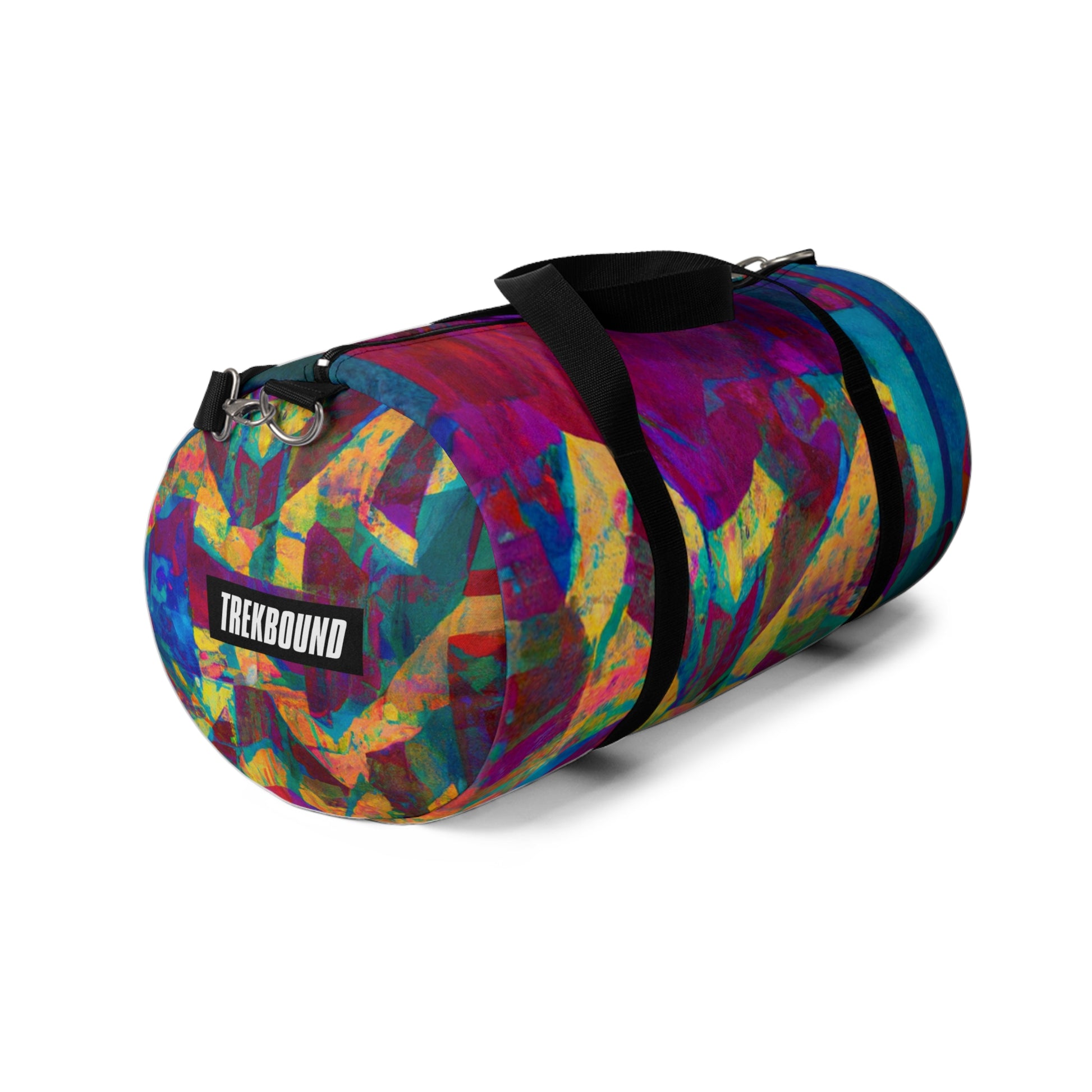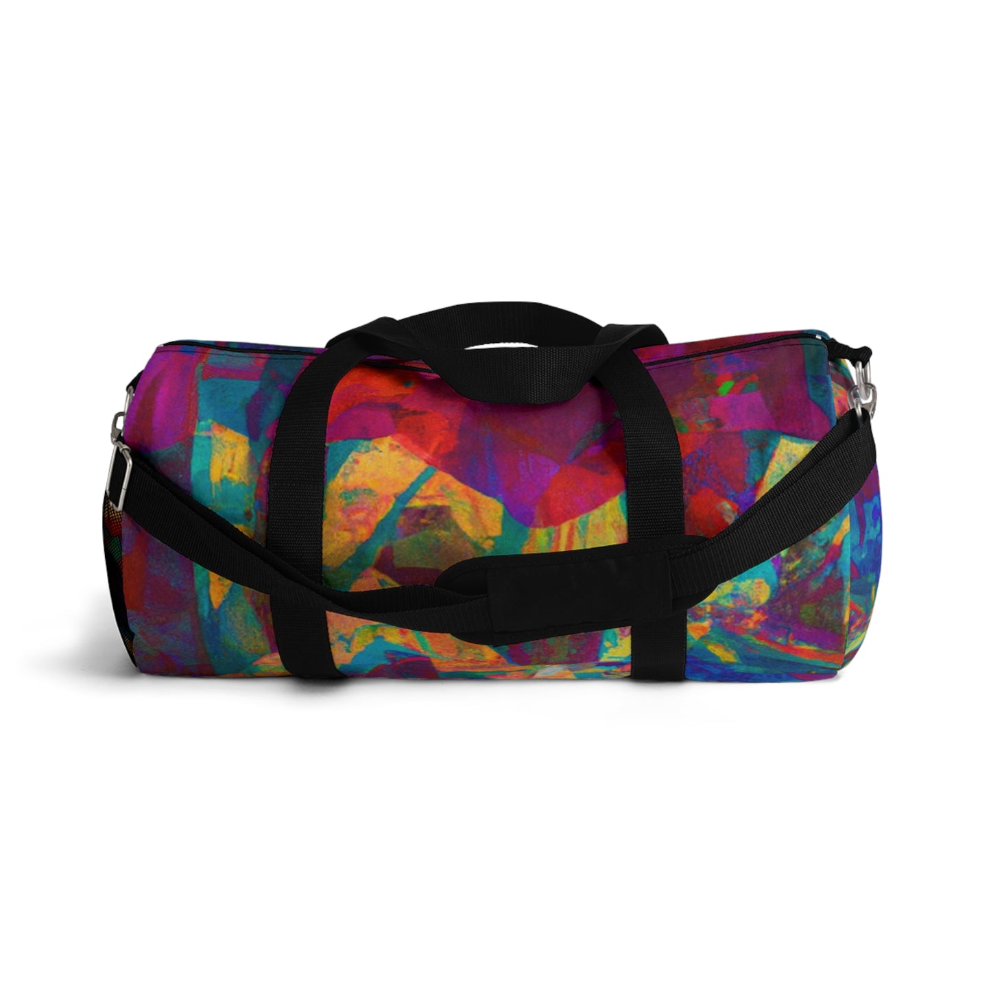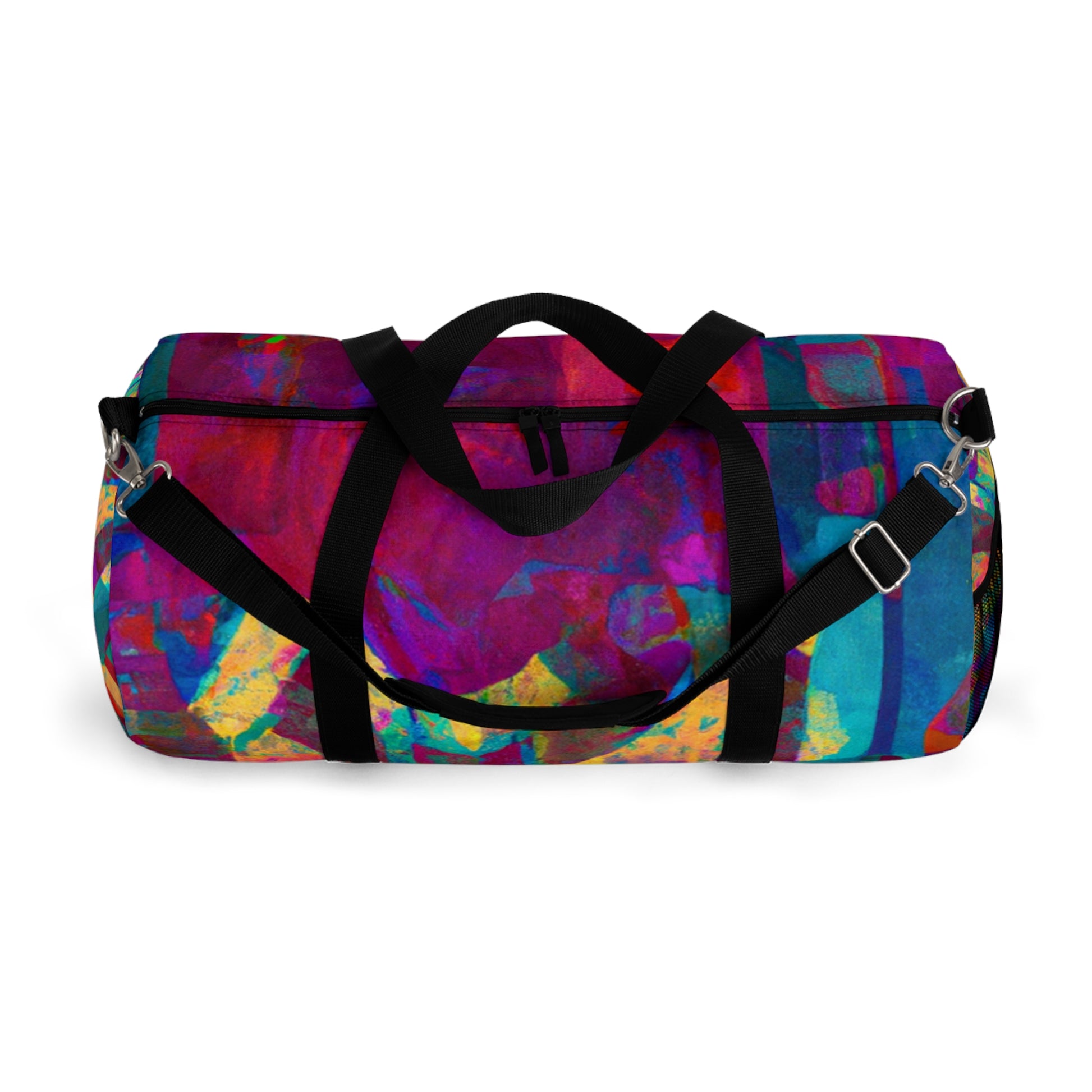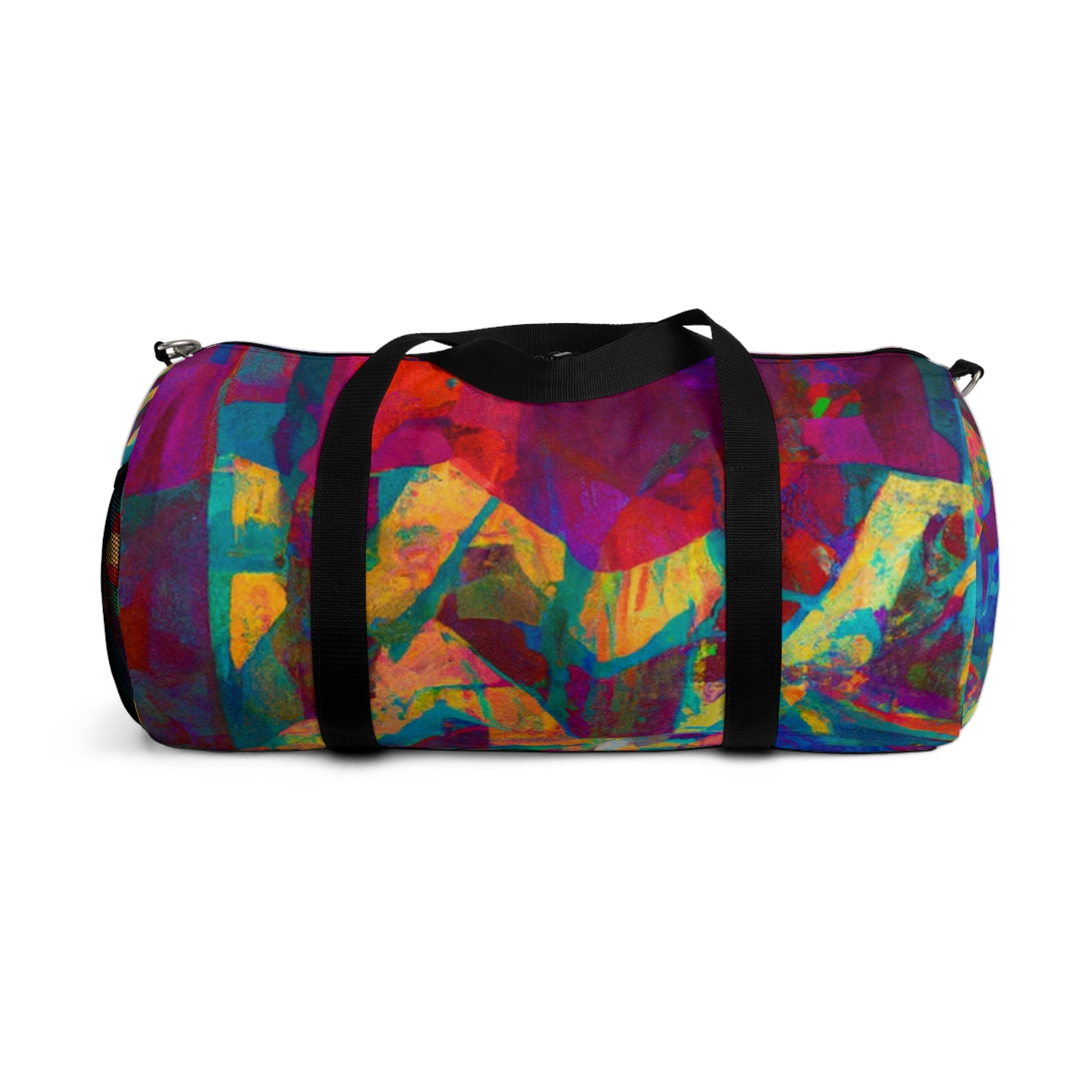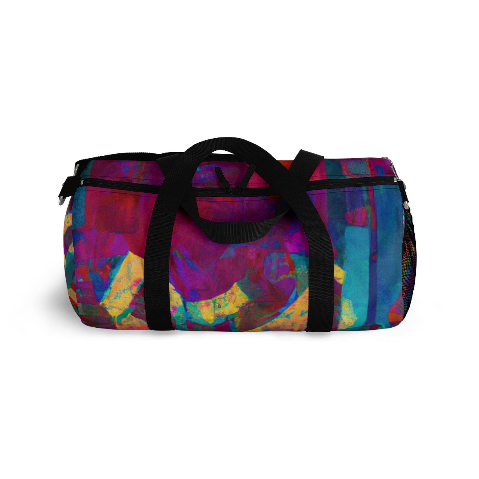 This duffel bag is perfect for art lovers! It has a unique abstract geometric pattern with cool colors to give your look an edge. Great for storing art supplies, it has a detachable shoulder strap and plenty of pockets for easy access to all your belongings. Whether heading out or staying in, this bag will have you looking stylish and modern. #duffelbag #artlovers #abstractpattern #geometric #coolcolors #digitaldesign #storage #shoulderstrap #modernstyle #easyaccess #functionalfashion