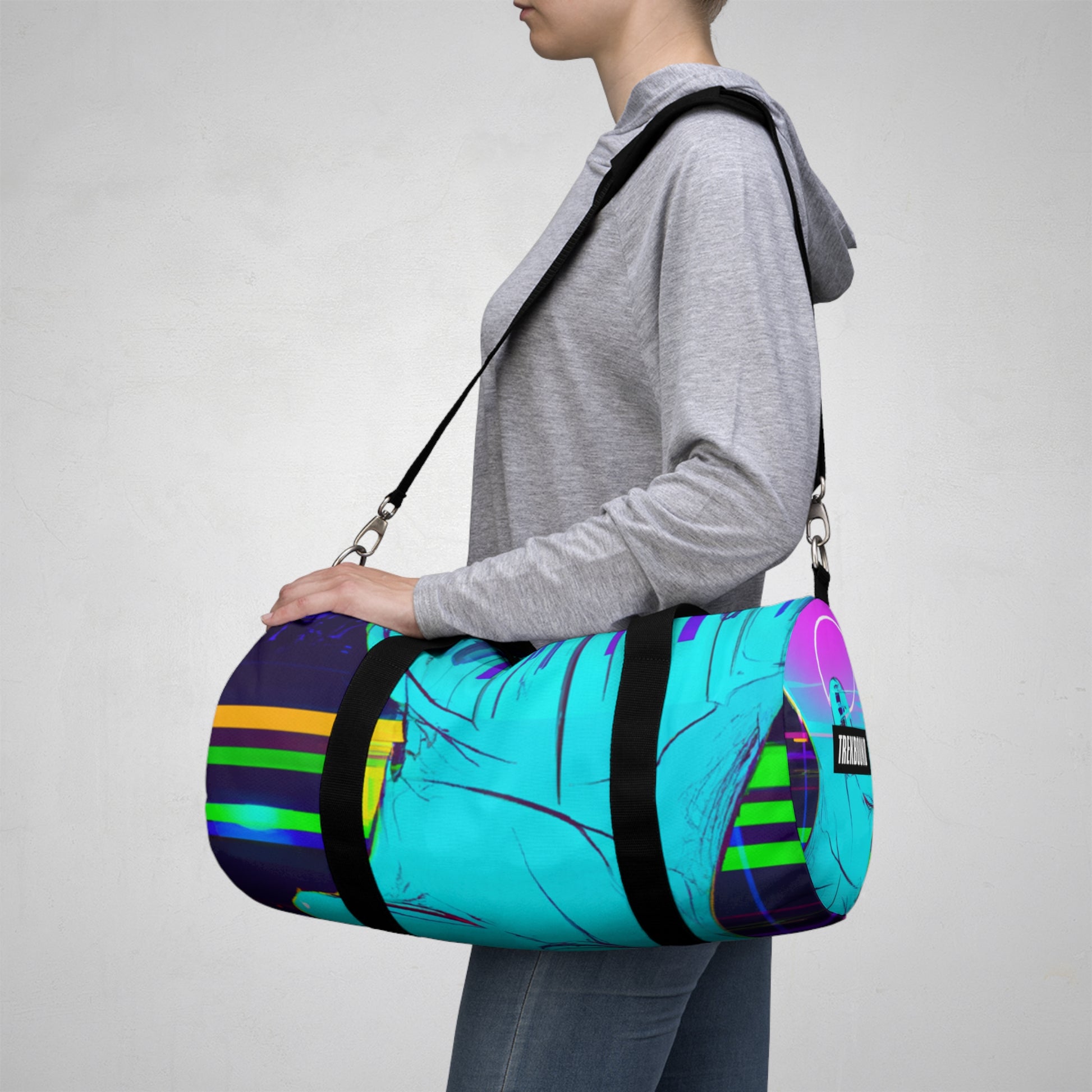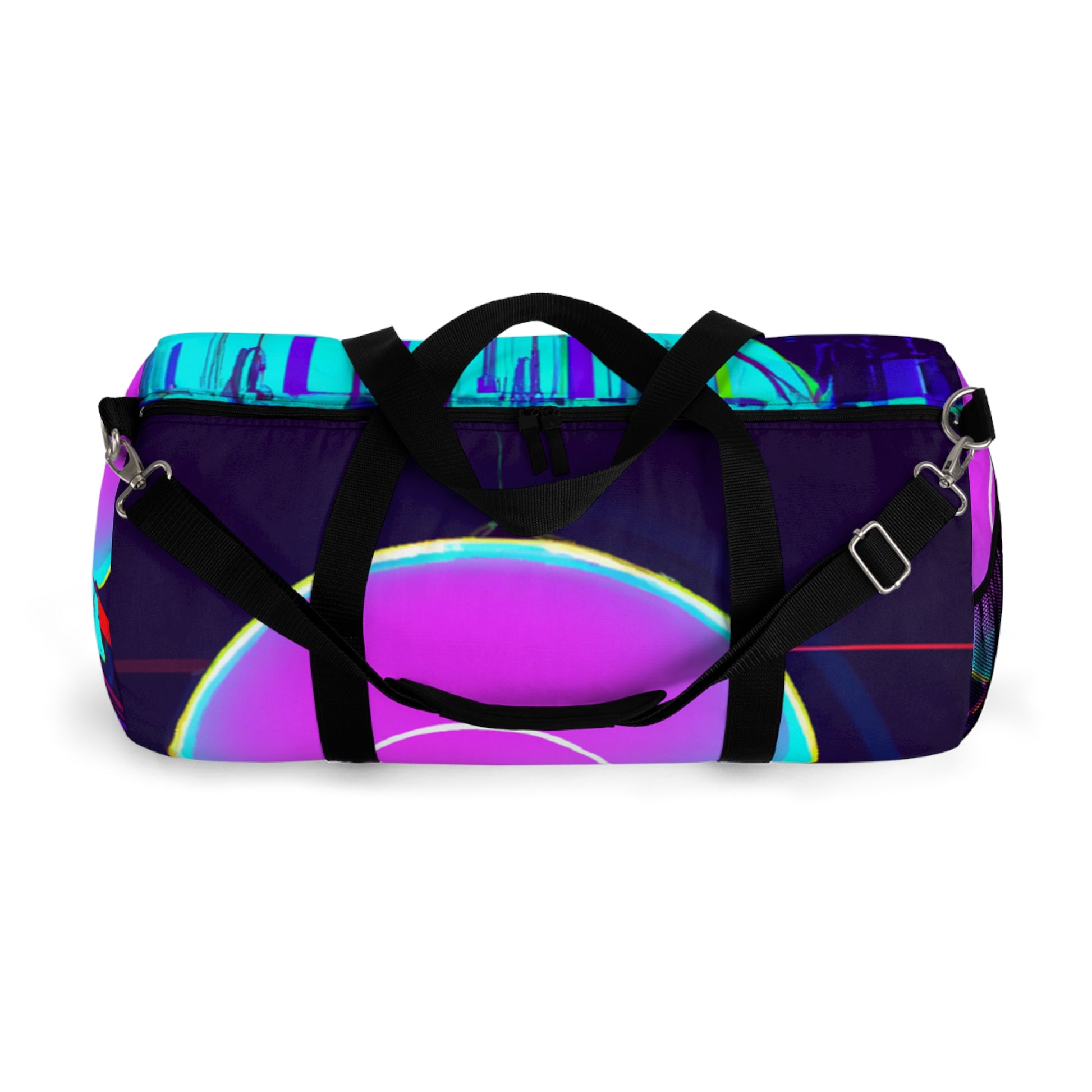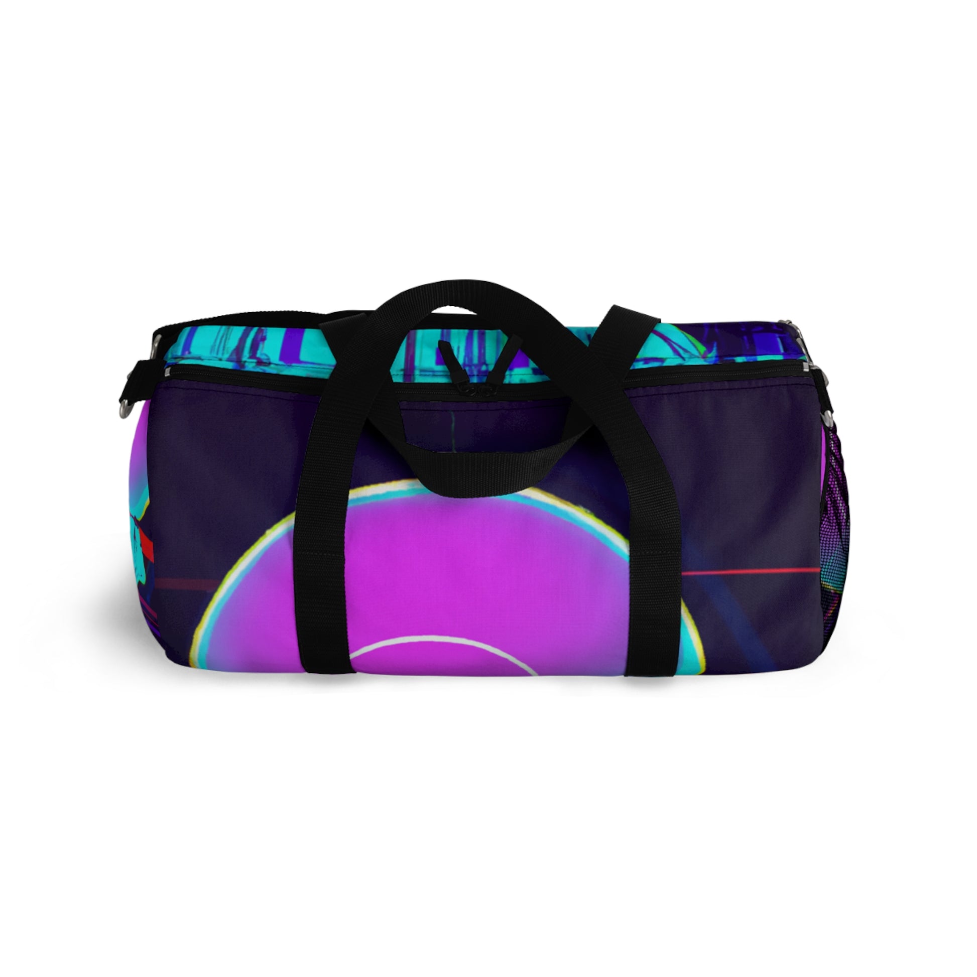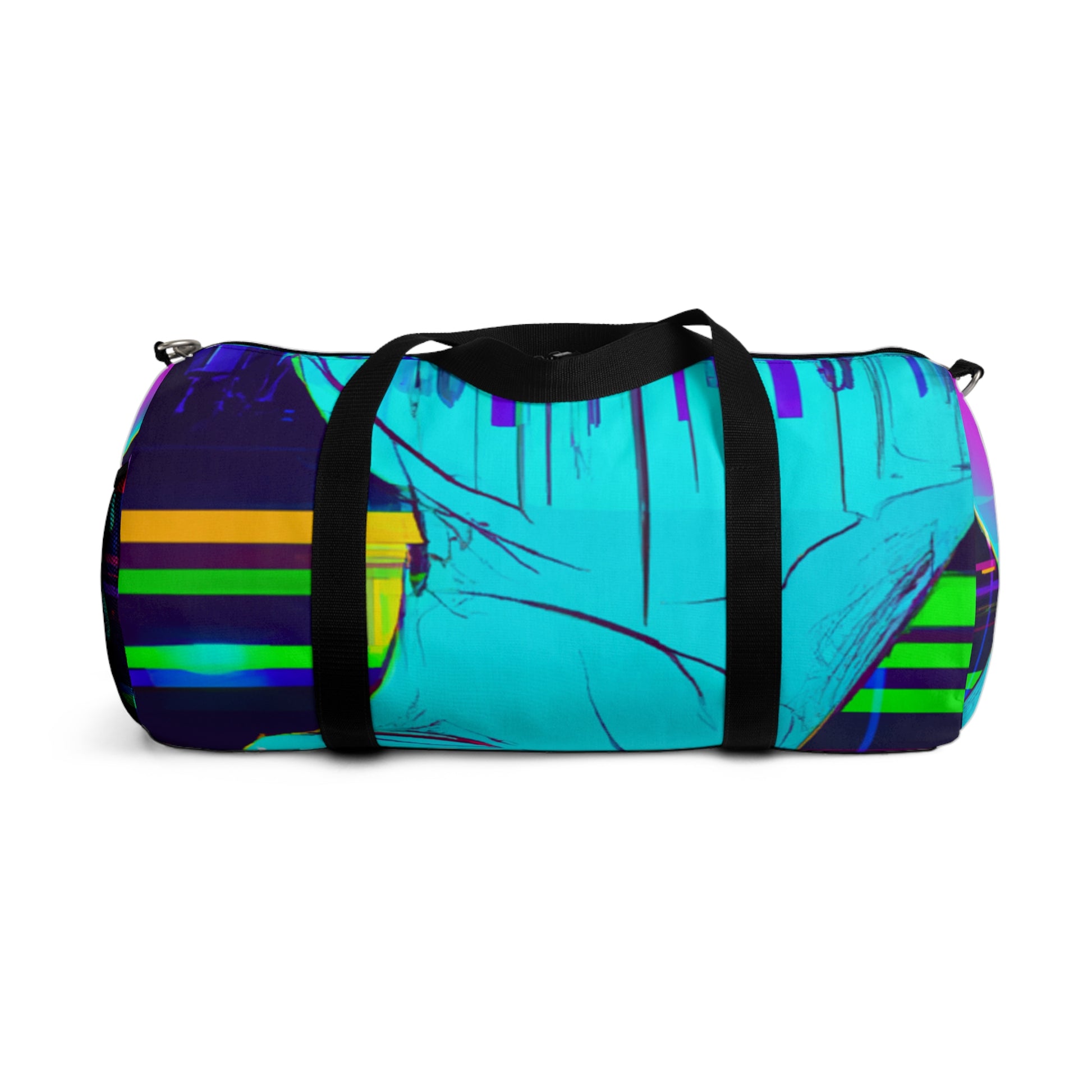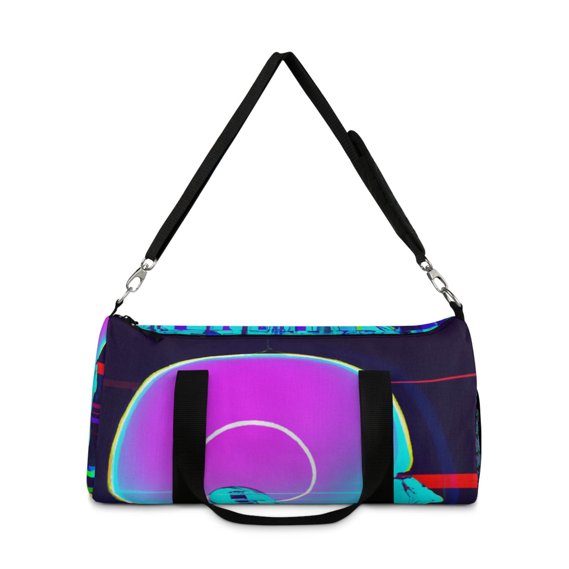 Explore a whole new world with this vibrant and stylish duffel bag. Featuring a sleek design full of futuristic digital ethereal neon colors, this bag is perfect for your active lifestyle. With its lightweight material and adjustable straps, it'll be sure to provide you with ultimate comfort for your travels. Say goodbye to mundane style and hello to eye-catching designs – explore the world with this duffel bag today! #duffelbag #style #neon #ethereal #stylish #travelbag #sporty #modern #lightweight #comfort #lifestyle