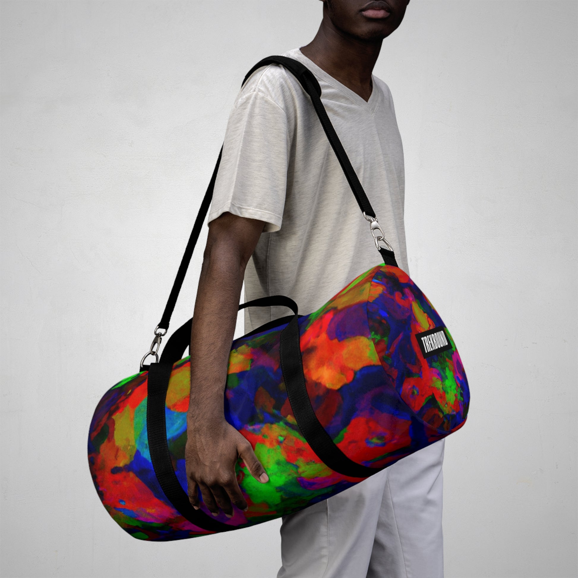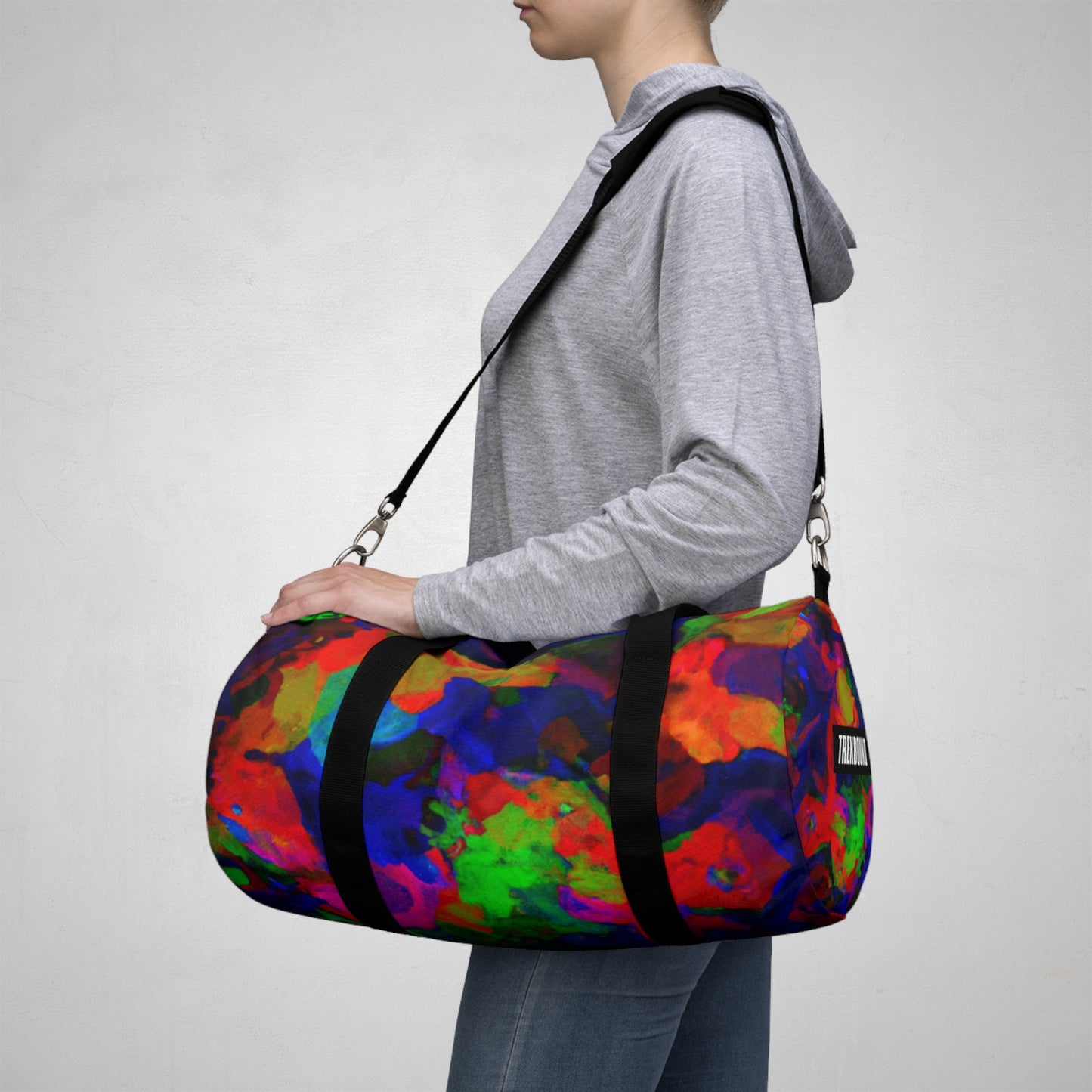 This duffel bag is perfect for the creative digital artist. Featuring an abstract geometric textured pattern with cool colors, this stylish and practical bag is perfect for transporting your artwork or any other items you need. It's great for sports, travel, everyday use, and more. It's a great way to stand out as a creative artist and have the practicality and convenience of a duffel bag. #GeometricDesigns #DigitalArt #ArtistsGear # DuffelBag #AbstractTilePattern #GraphicDesign #CoolColors #SportyStyle #TravelEssentials #UrbanLife #FashionAndFunction