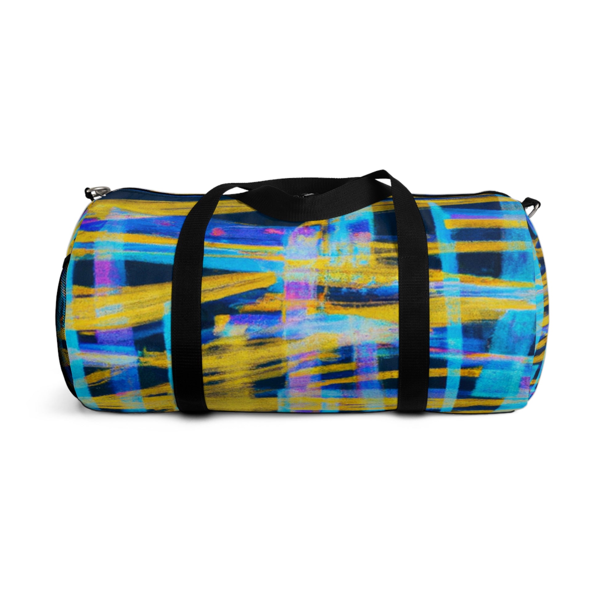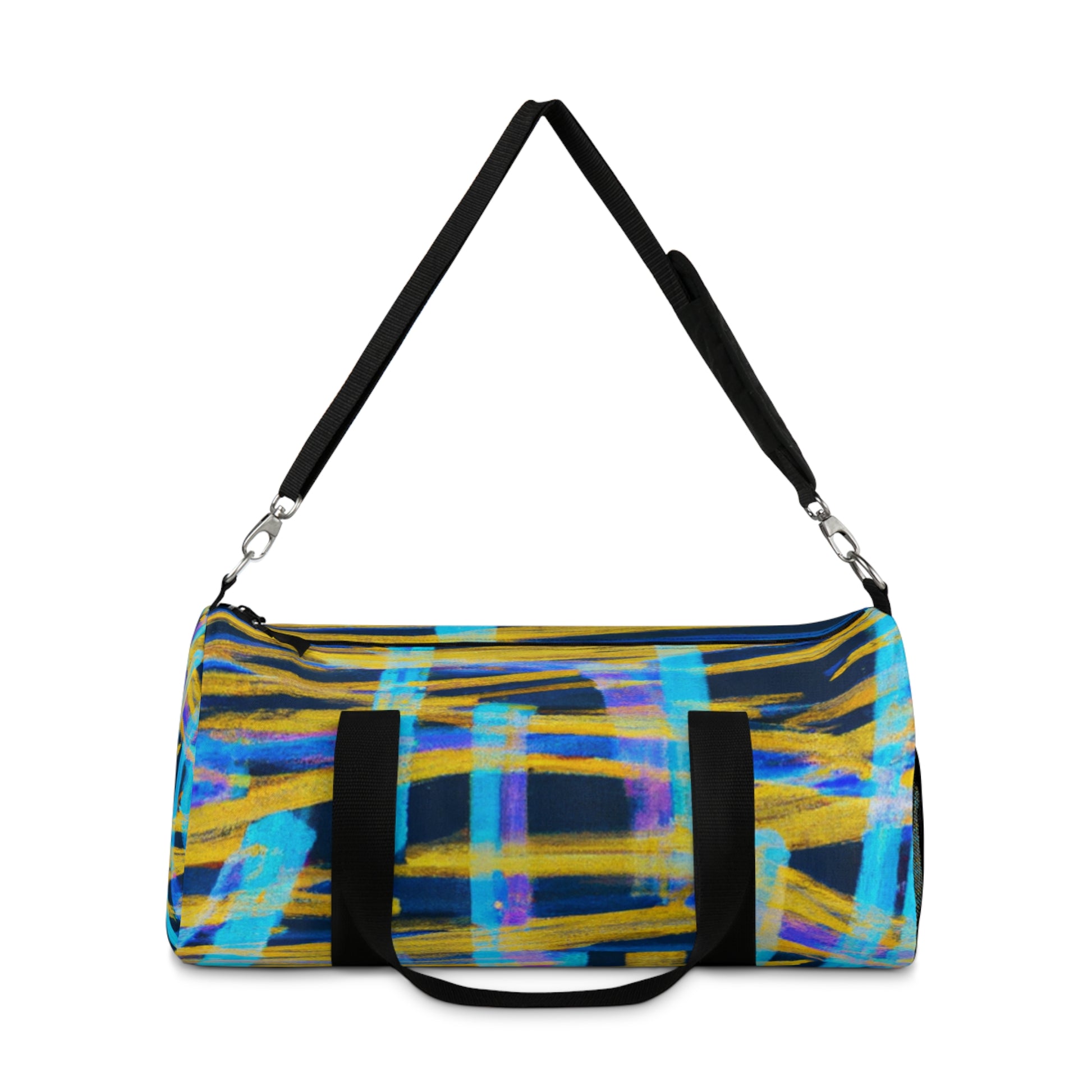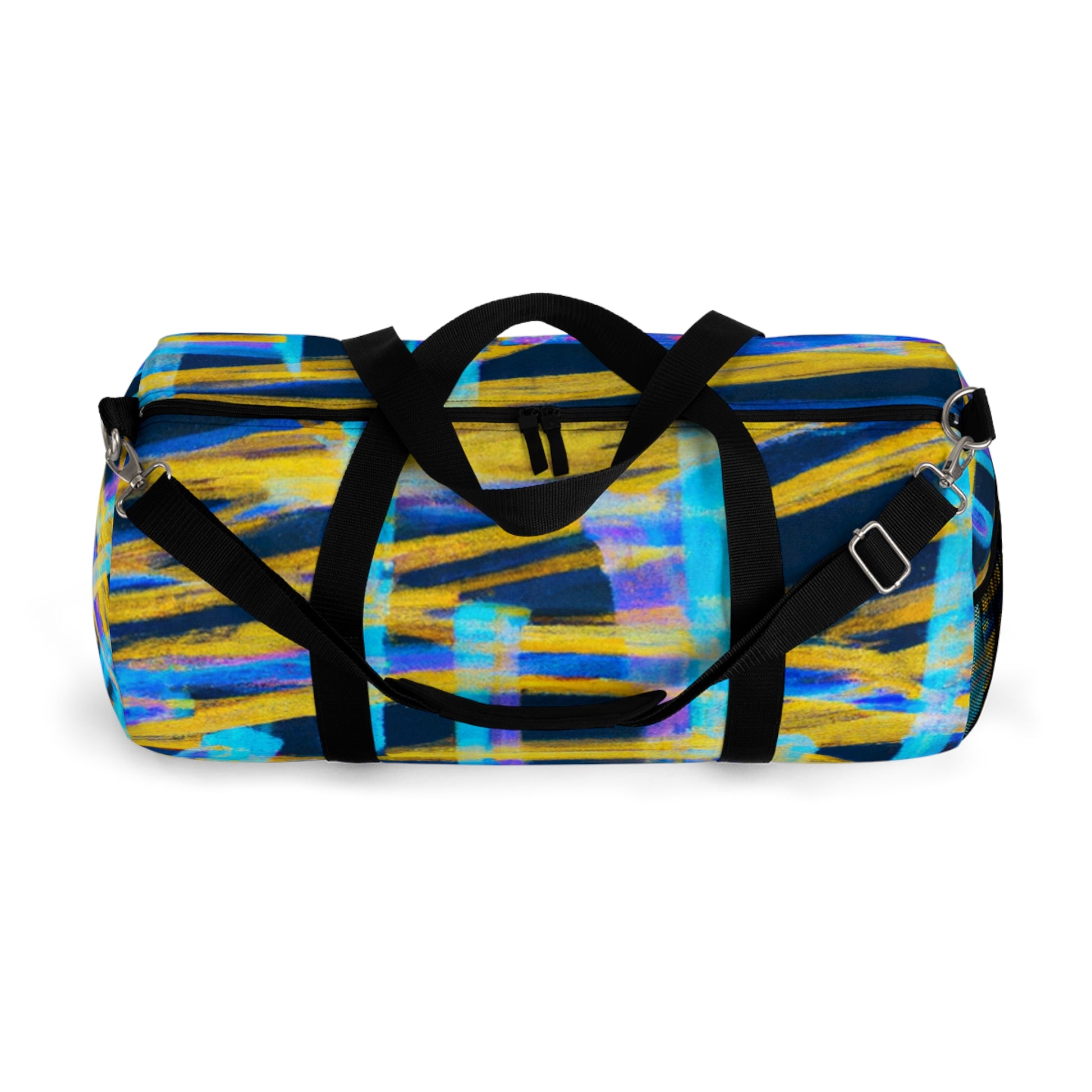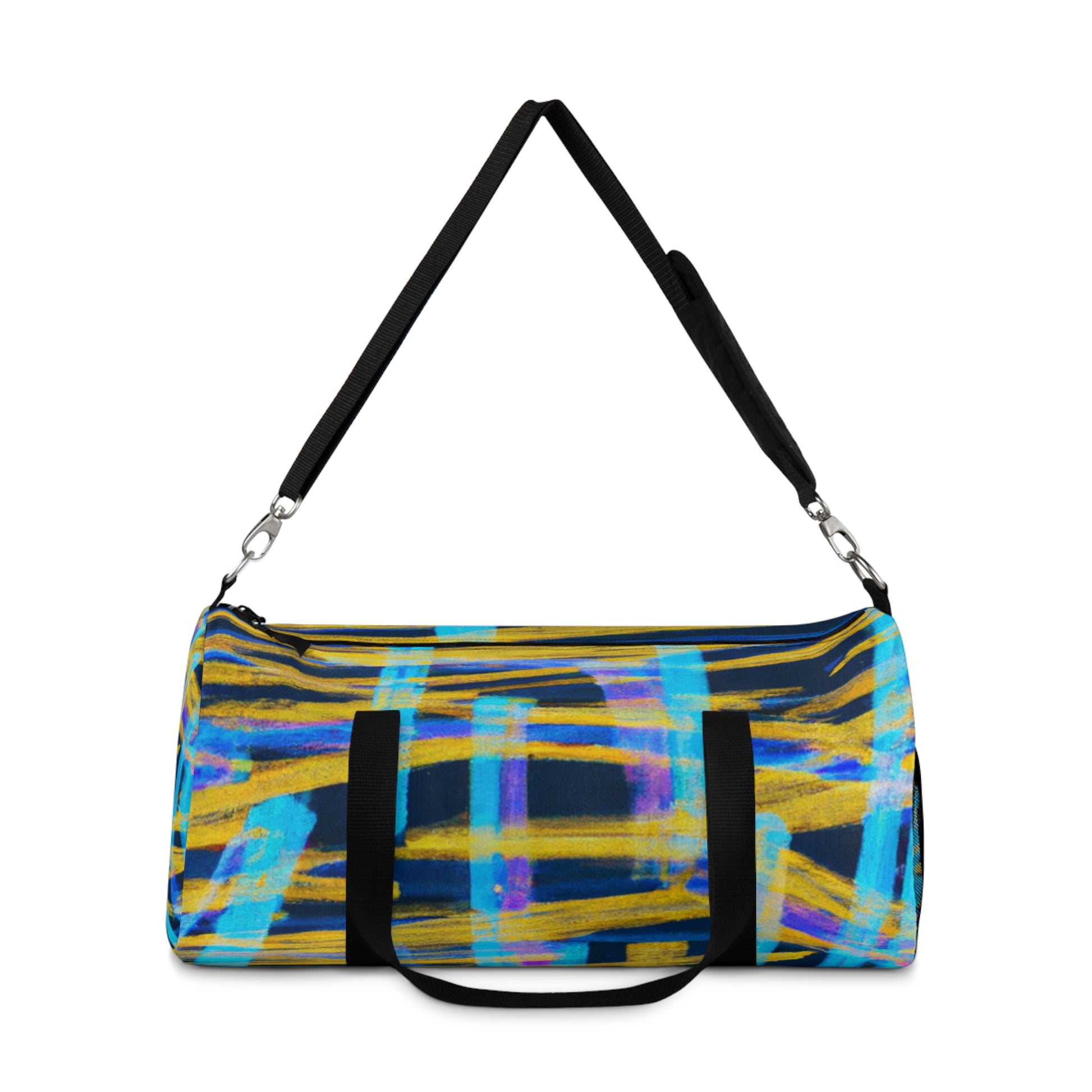 Bring style to your travels with this vibrant and modern duffel bag. An abstract geometric textured pattern with cool colors adds a touch of chic and makes it the perfect choice for stylish globetrotters. Crafted from a durable fabric, it is perfect for taking with you on your adventures. Functional and stylish, it has ample space with convenient pockets and a zip closure. #AbstractGeometric #Patterns #TravelEssentials #TravellerStyle #DuffelBag #GeometricDesign #DigitalDesigns #VibrantColors #CoolColors #FunctionalStyle #Jetsetter