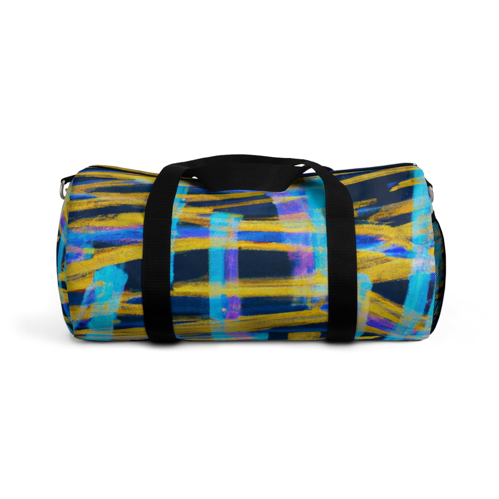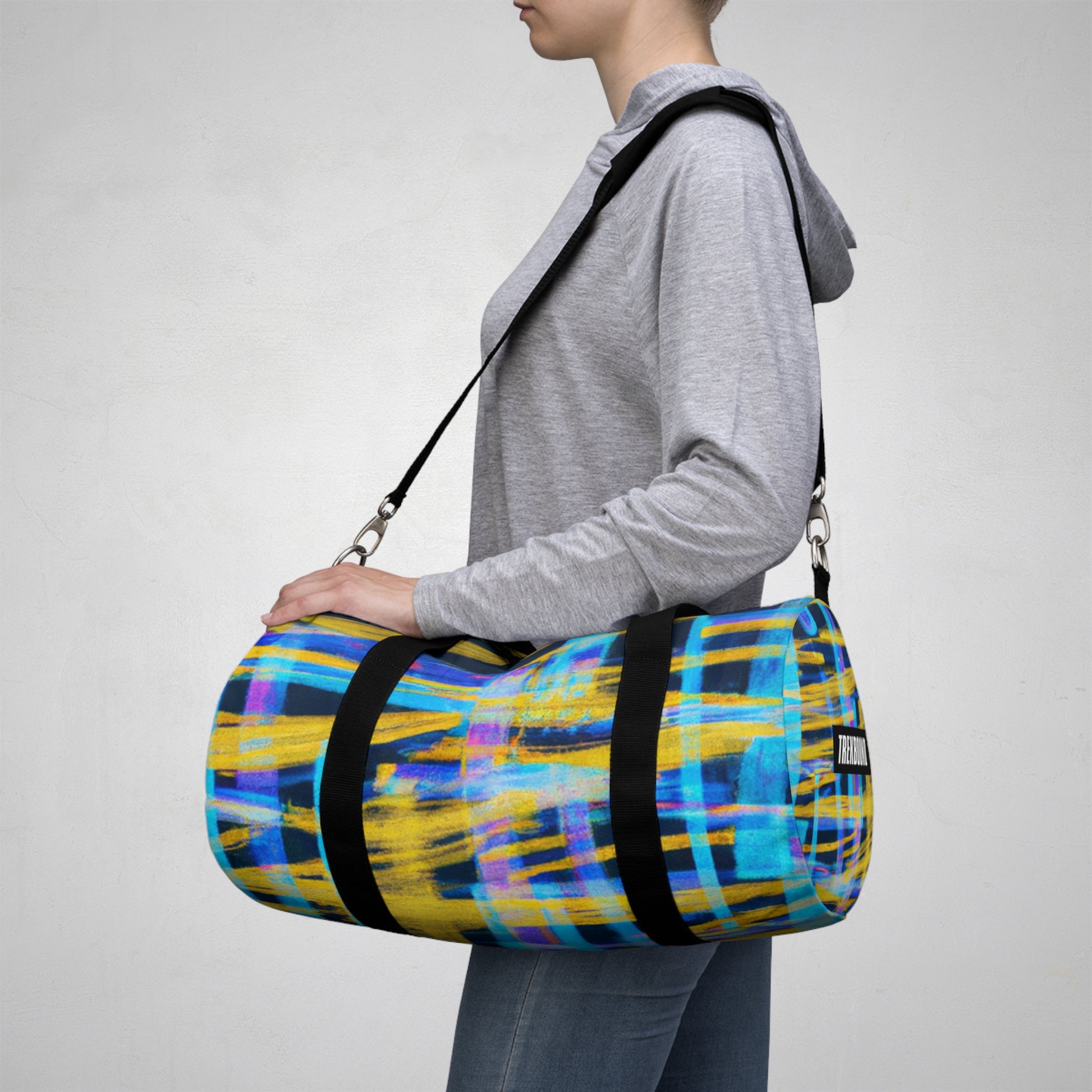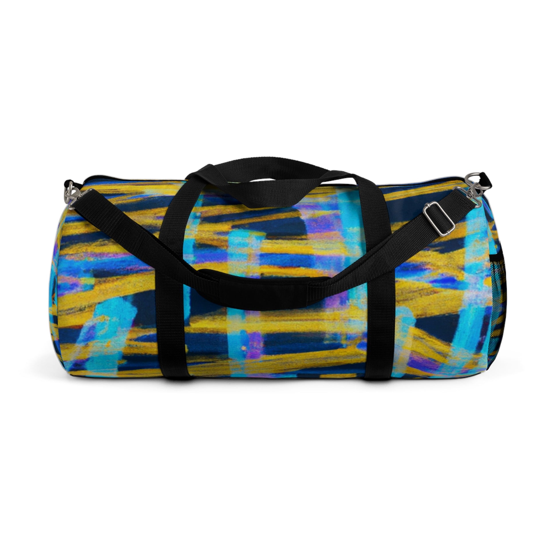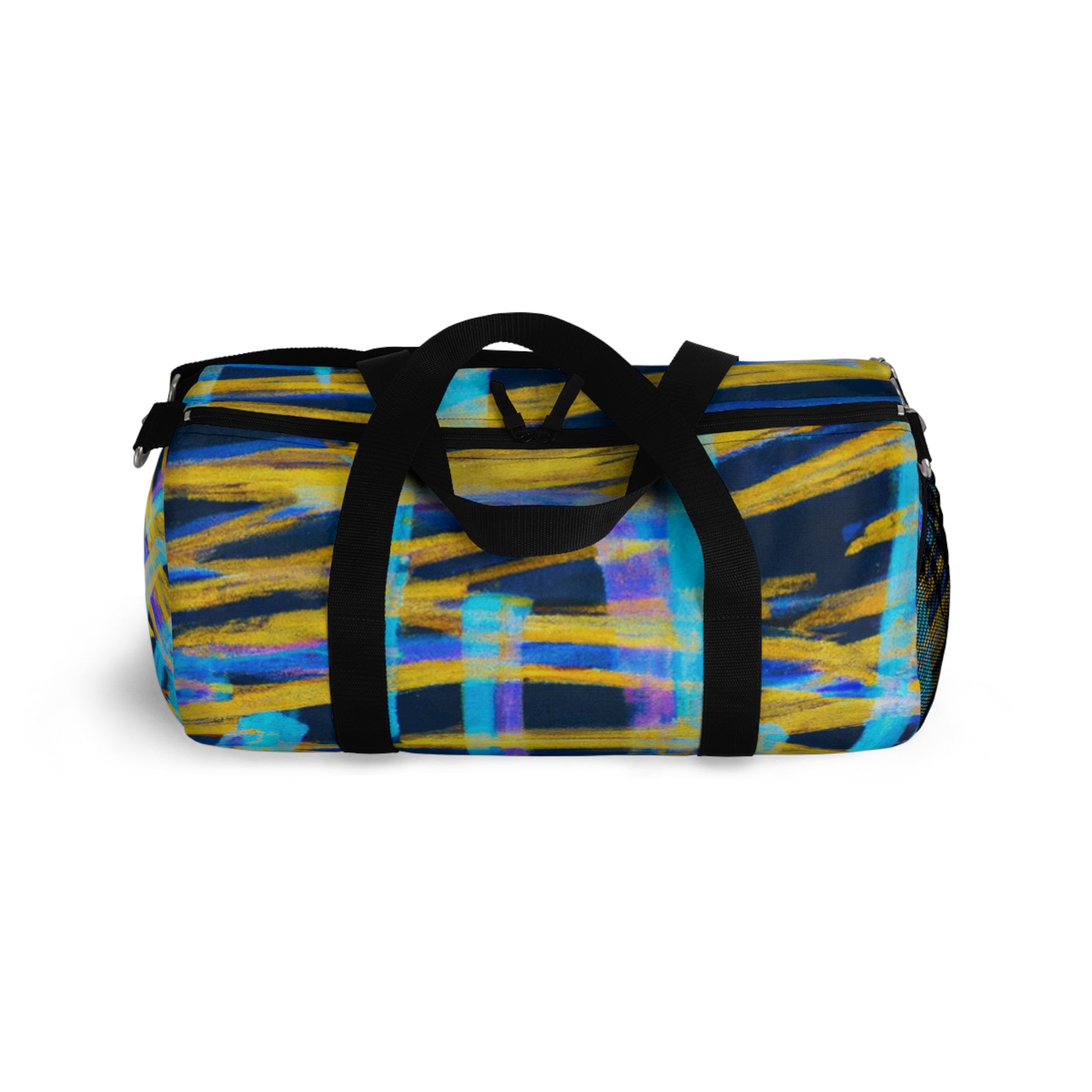 Bring style to your travels with this vibrant and modern duffel bag. An abstract geometric textured pattern with cool colors adds a touch of chic and makes it the perfect choice for stylish globetrotters. Crafted from a durable fabric, it is perfect for taking with you on your adventures. Functional and stylish, it has ample space with convenient pockets and a zip closure. #AbstractGeometric #Patterns #TravelEssentials #TravellerStyle #DuffelBag #GeometricDesign #DigitalDesigns #VibrantColors #CoolColors #FunctionalStyle #Jetsetter