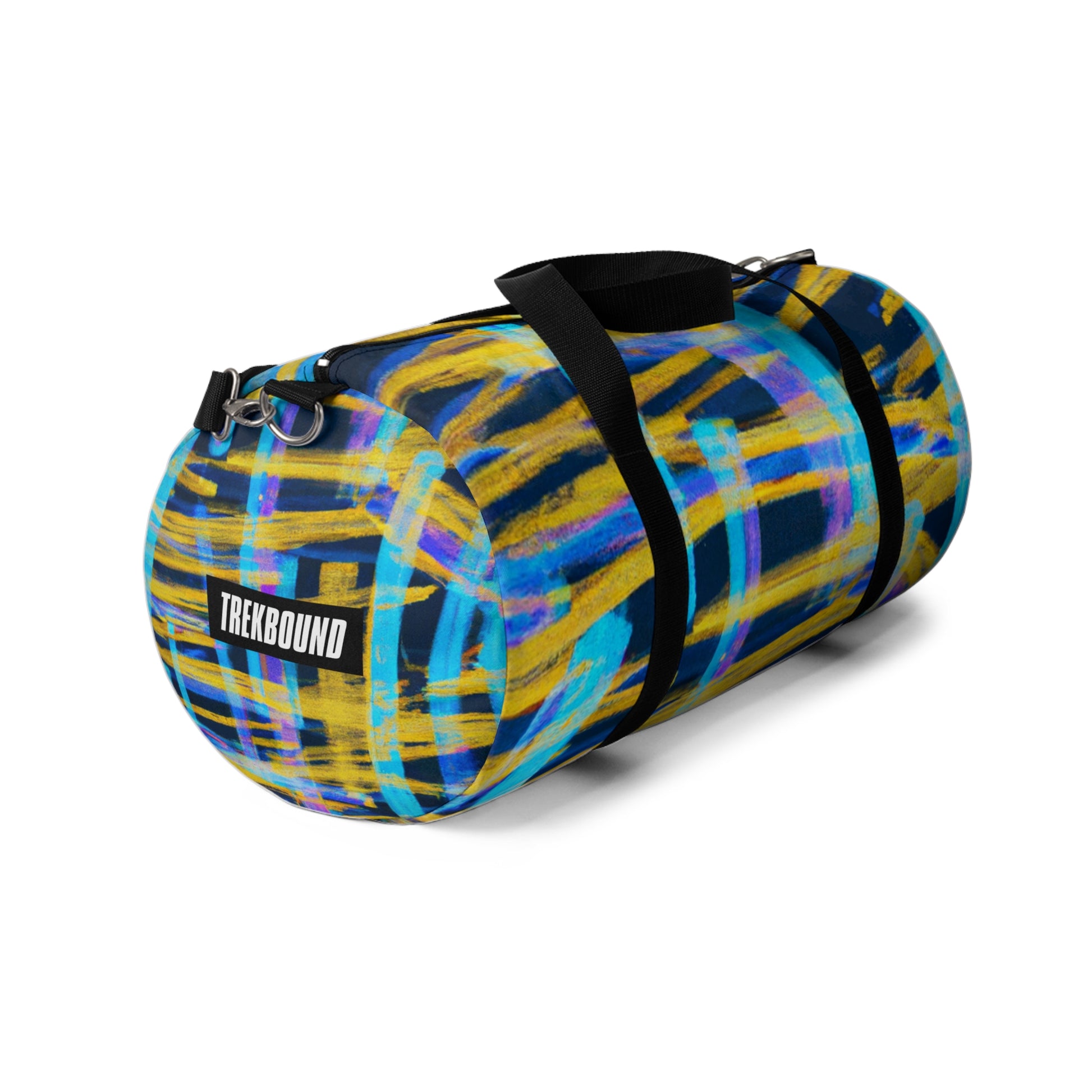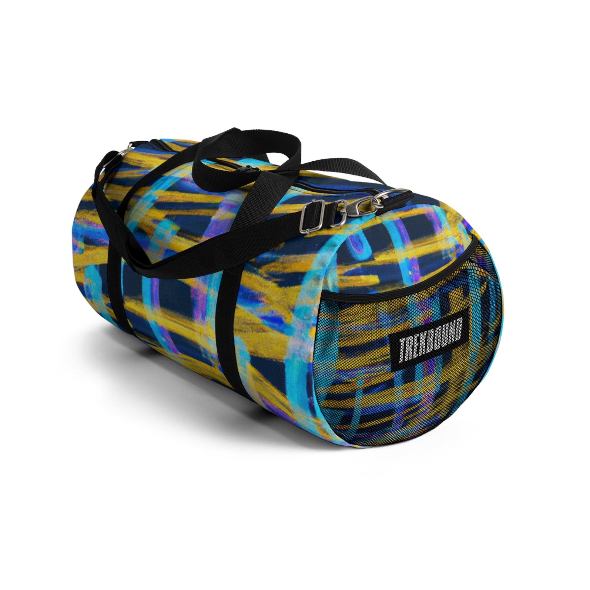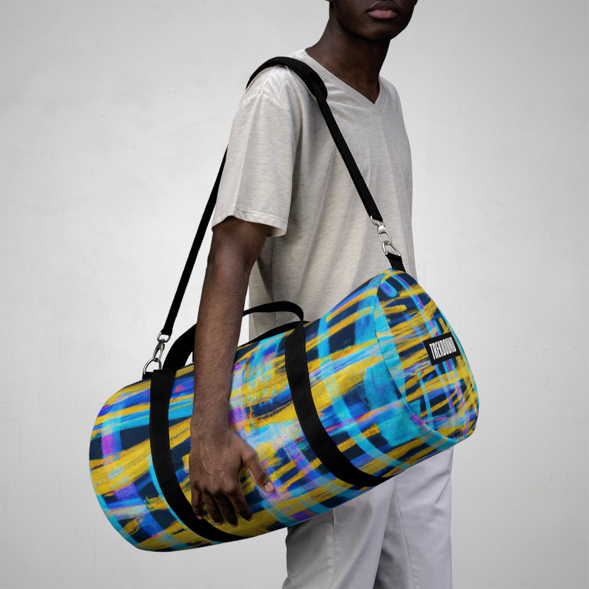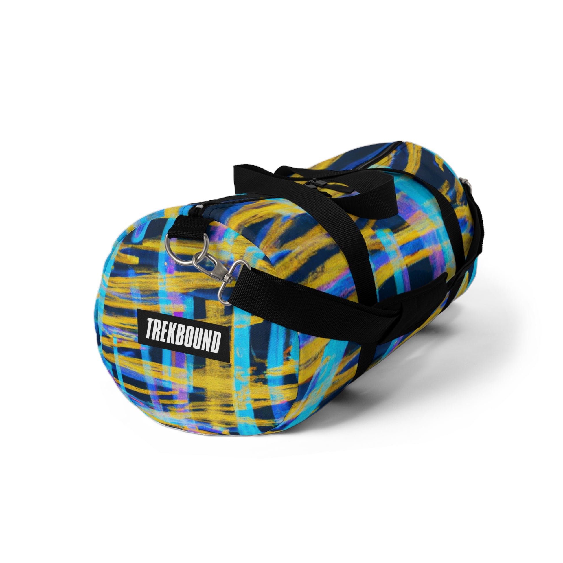 Bring style to your travels with this vibrant and modern duffel bag. An abstract geometric textured pattern with cool colors adds a touch of chic and makes it the perfect choice for stylish globetrotters. Crafted from a durable fabric, it is perfect for taking with you on your adventures. Functional and stylish, it has ample space with convenient pockets and a zip closure. #AbstractGeometric #Patterns #TravelEssentials #TravellerStyle #DuffelBag #GeometricDesign #DigitalDesigns #VibrantColors #CoolColors #FunctionalStyle #Jetsetter