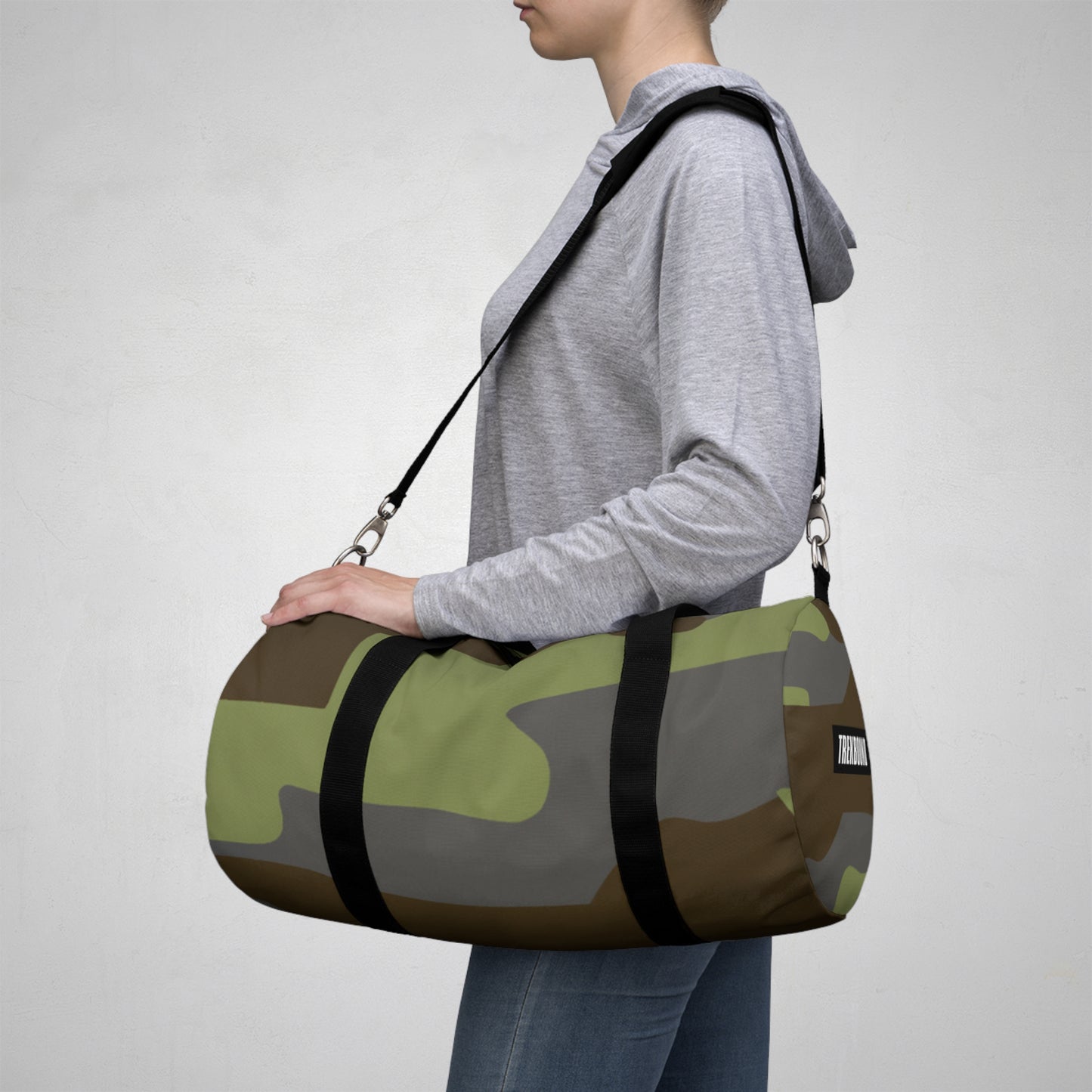 This durable duffel bag is designed around contemporary camouflage designs in military colors. Show off your style while hauling your belongings in style. The bag is equipped with two compartments & two external pockets to keep all your essentials organized and easily accessible. Enjoy adventures in smart style carry with this unique and stylish duffel bag #camouflage #duffelbag #contemporary #style #militarystyle #adventure #travelbag #duffel #multipocket #durable #smartstyle #organized