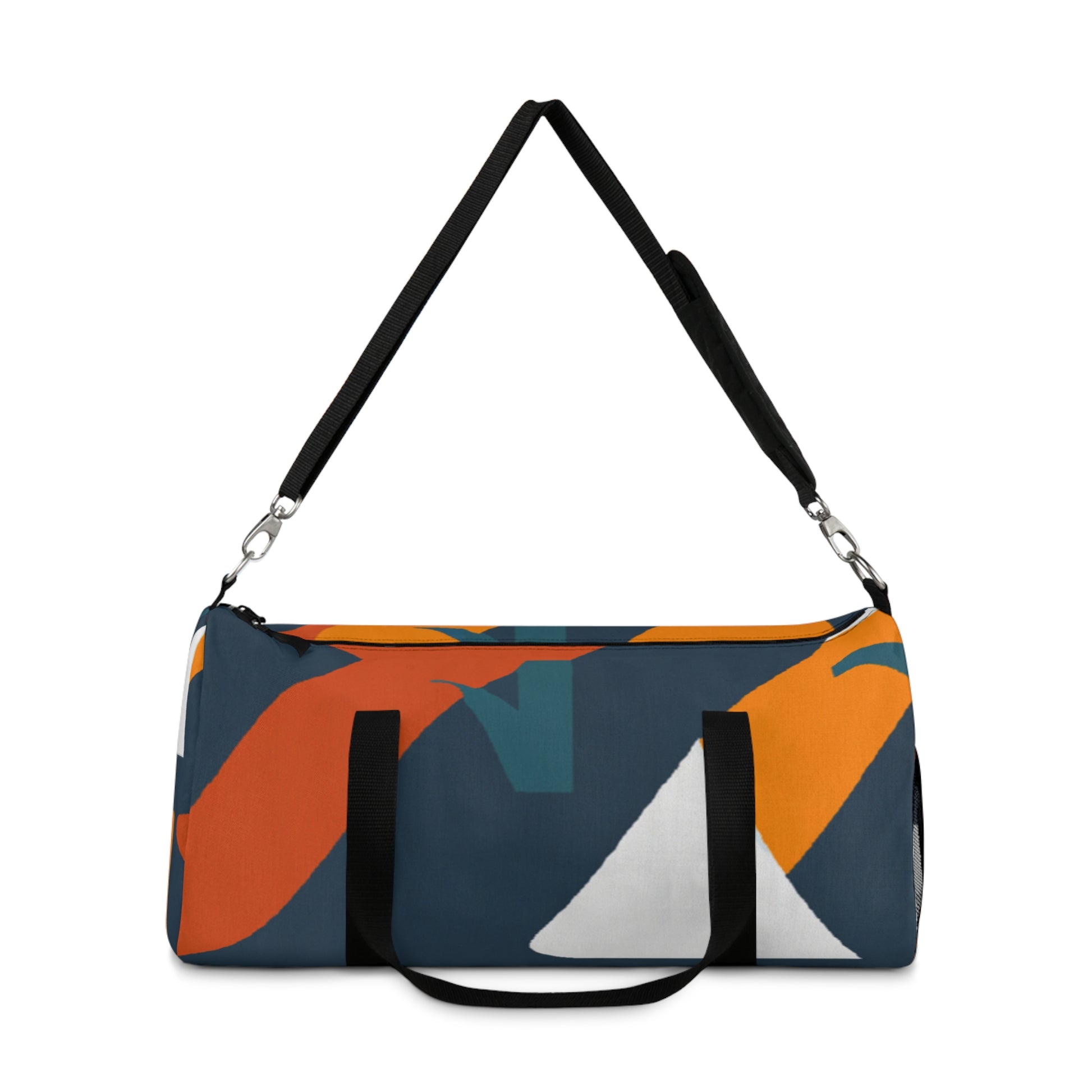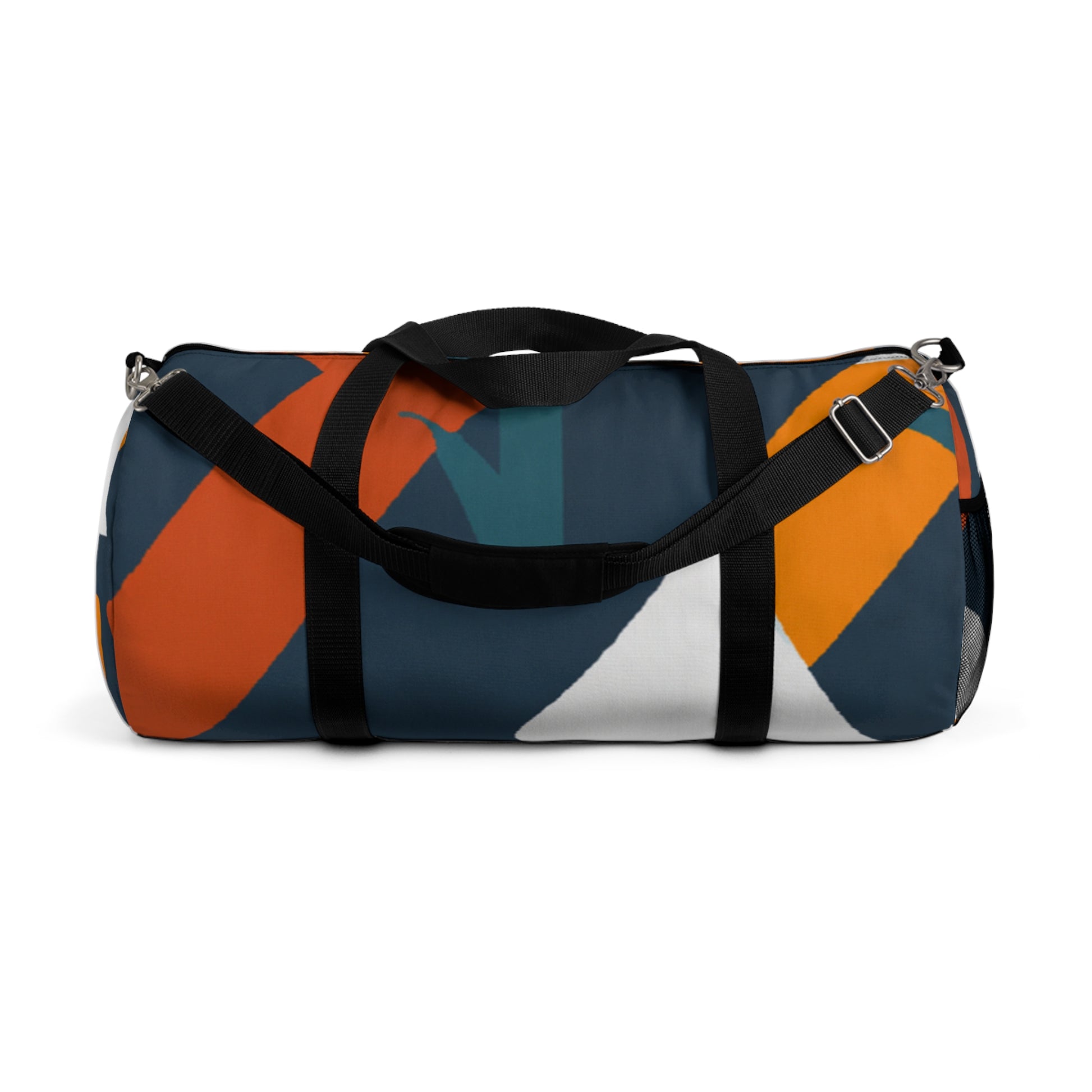 This stylistic duffel bag will make a perfect travel companion. It is designed with a modern look inspired by the Bauhaus movement, featuring sleek geometric textile designs in smart colours. The spacious main compartment and side pockets offer plenty of organization for all your packing needs. With adjustable carrying handles and a removable shoulder strap, you'll be ready to go anywhere. #duffelbag #bauhaus #modernbag #style #geometric #colourful #versatile #travelcompanion #classystyle #elegance #organize