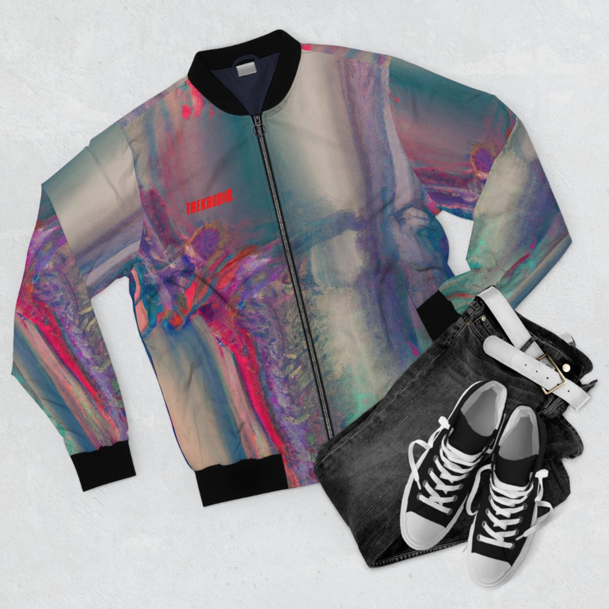 This jacket inspired by Owen Jones features a unique and dynamic holographic pattern that's sure to make a stunning statement in any wordrobe. With a variety of dynamic colors, the painting adds depth and interest to the space that's impossible to duplicate. All this in a high-quality jacket to ensure its timeless beauty. #holographic #pattern #painting #OwenJones #statementpiece #holographicstyle #beautifulart #statementdecor #dynamiccolor #timelessbeauty
