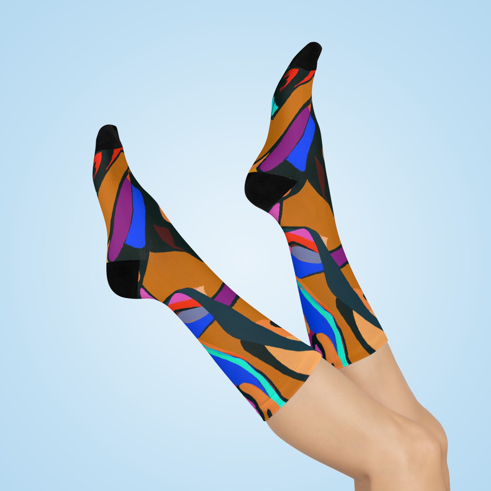 These cushioned socks feature contemporary abstract paintings with neon colors that are perfect for cozy jackets! Brighten up your day with the perfect blend of fashion and comfort. Each pair is designed to caress your feet with its magical hues and breathable material. Showcase your unique style with our vibrant collection today! #socks #style #neon #cushioned #cozy #contemporary #abstractart #painting #wearableart #fashion #comfort