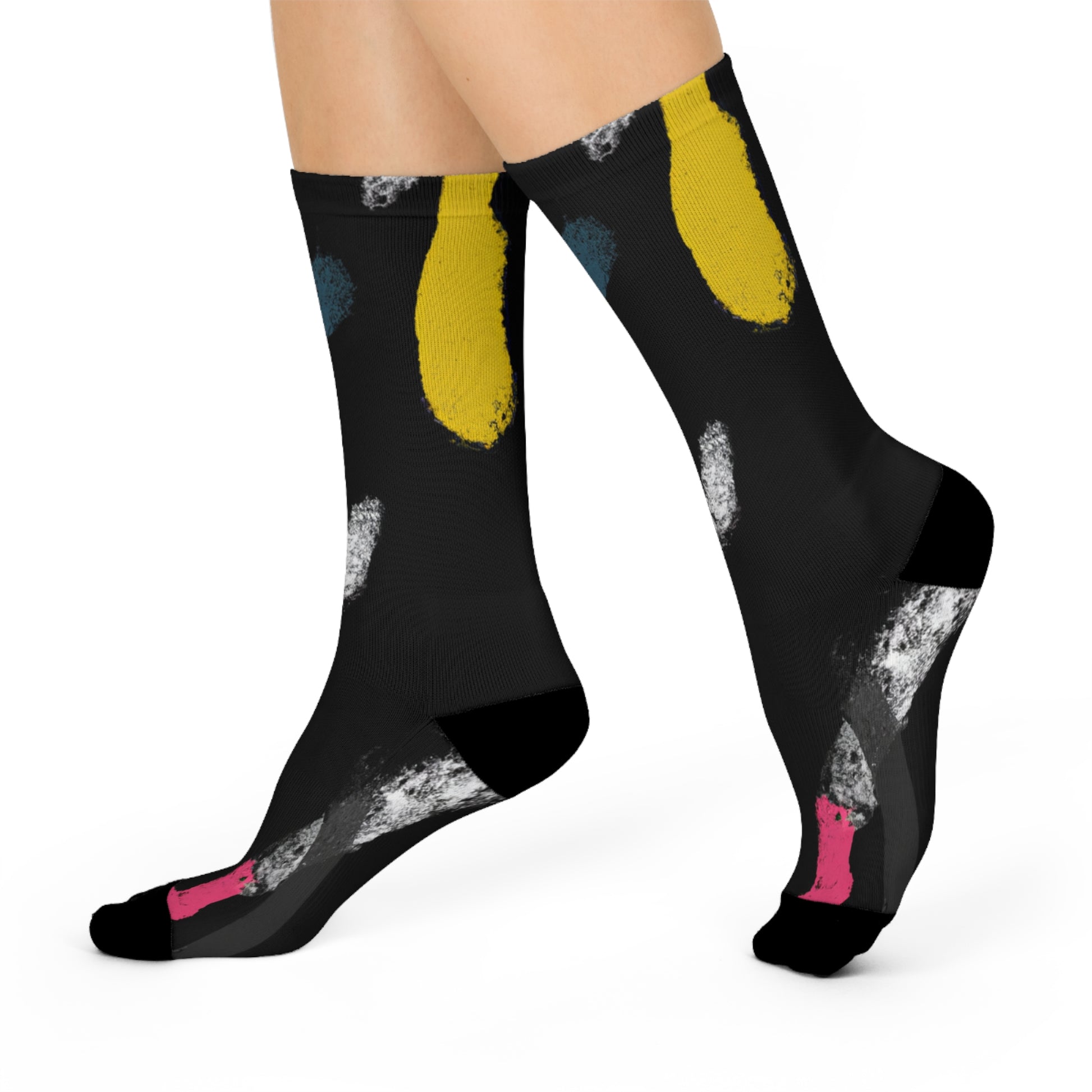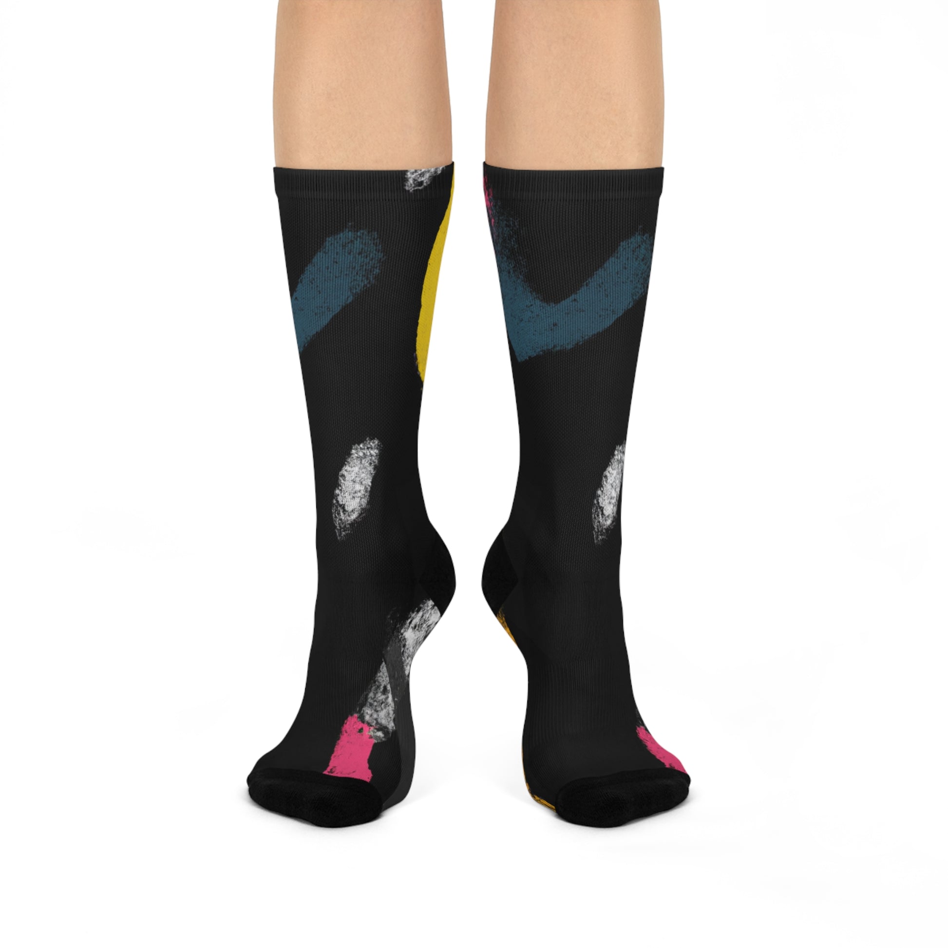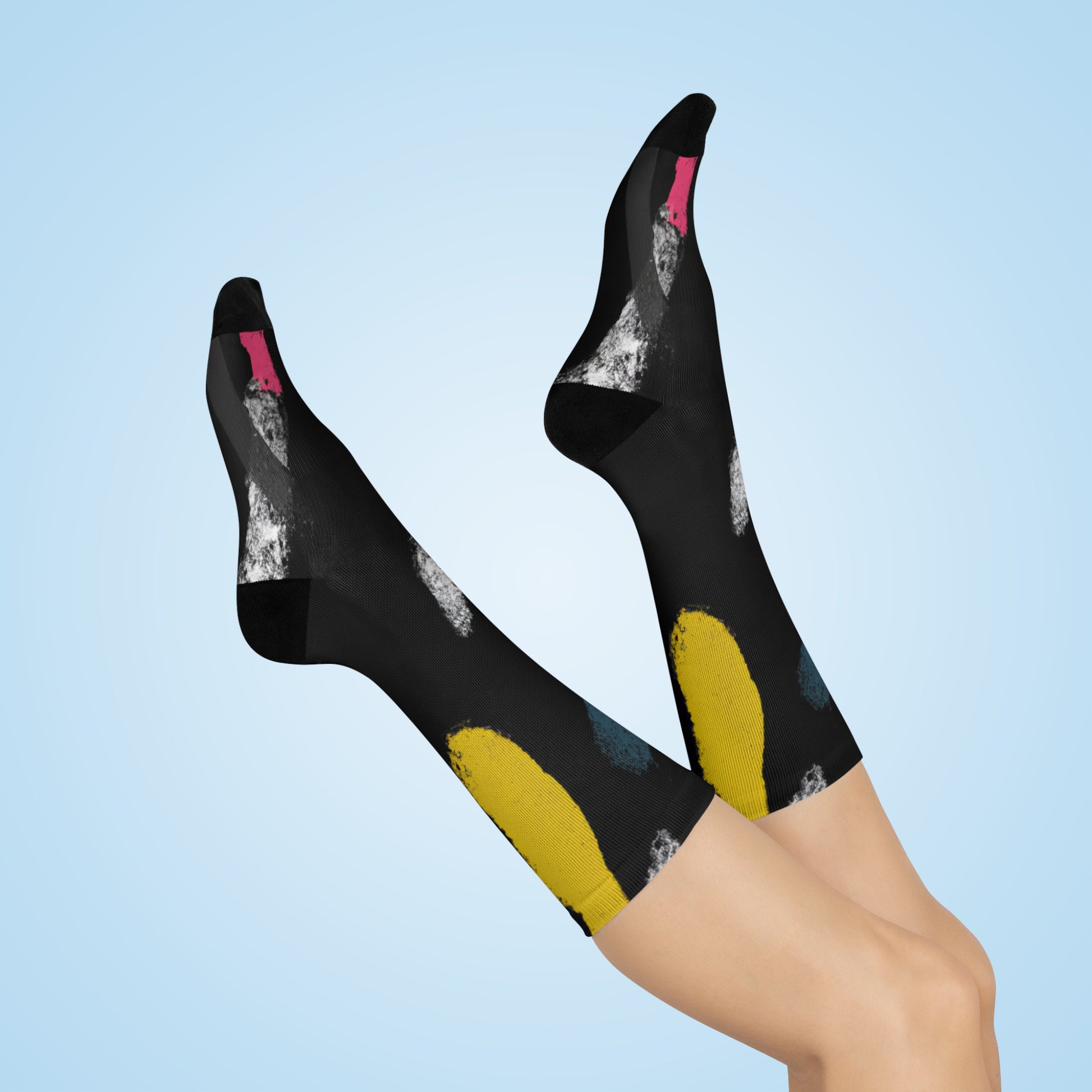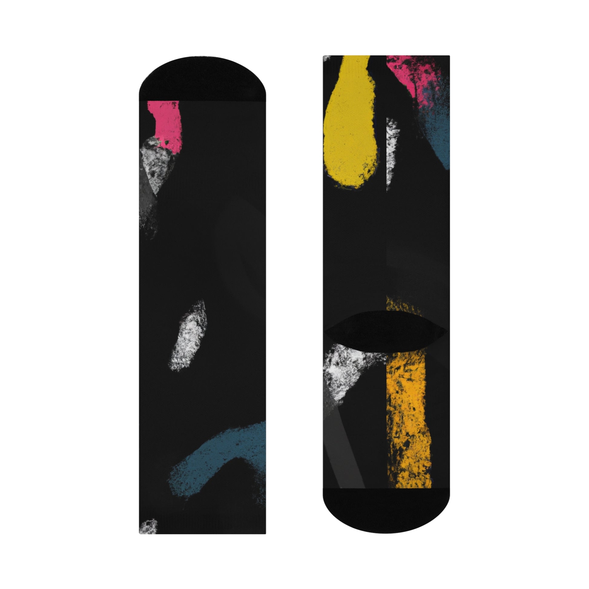 These cushioned socks bring abstract contemporary art right to your feet! Take your style to the next level with these beautiful neon colored designs, perfect for adding a funk and fun to jackets and other outfits. Don't be afraid of standing out from the crowd with these statement pieces. Perfect for those wanting to add a bit of color & pizzazz. #AbstractArt #SocksStyle #Cushioned #Neon #NeonStyle #AbstractDesign #PaintedSocks #AbstractPainting #FashionStatement #ContemporaryArt #StatementPiece