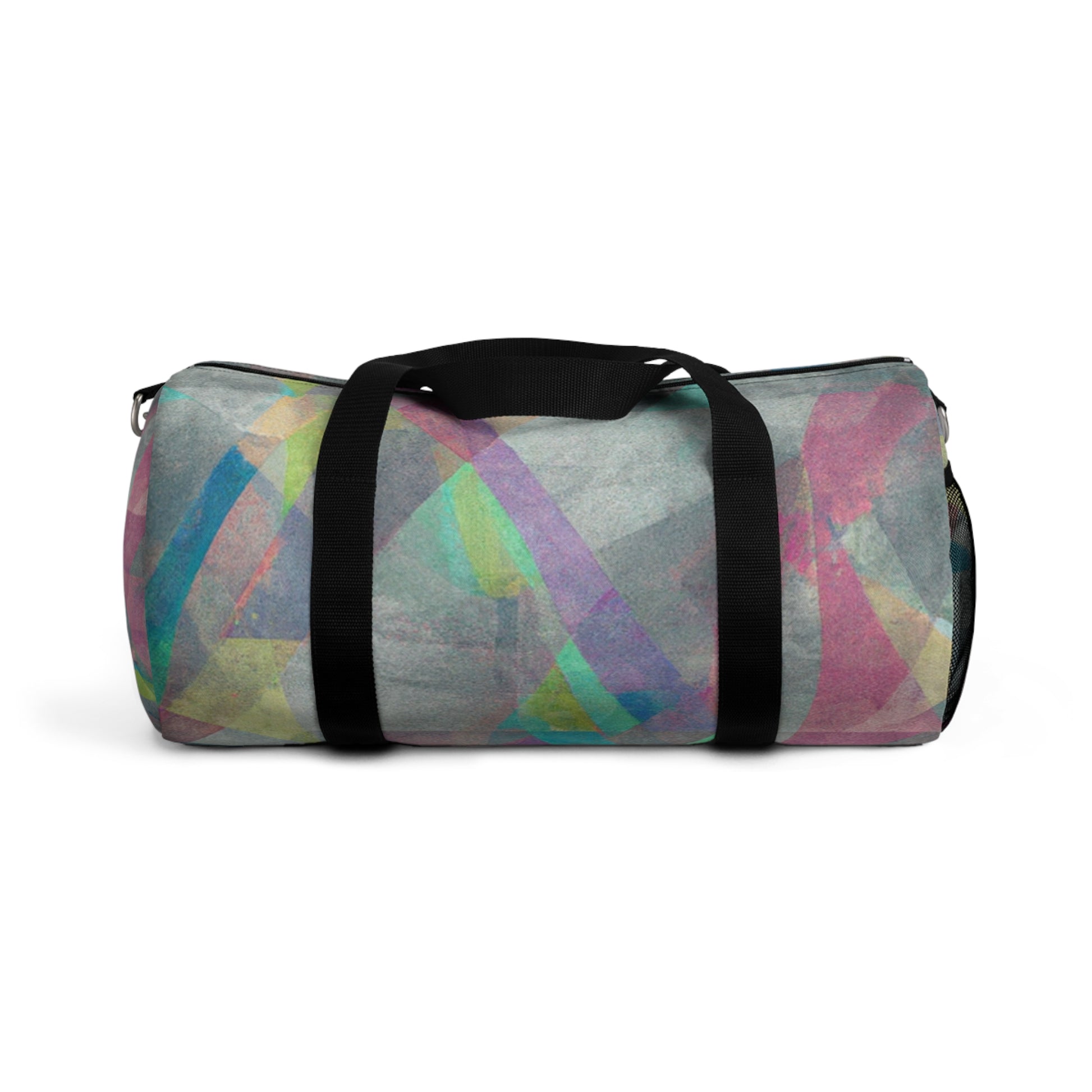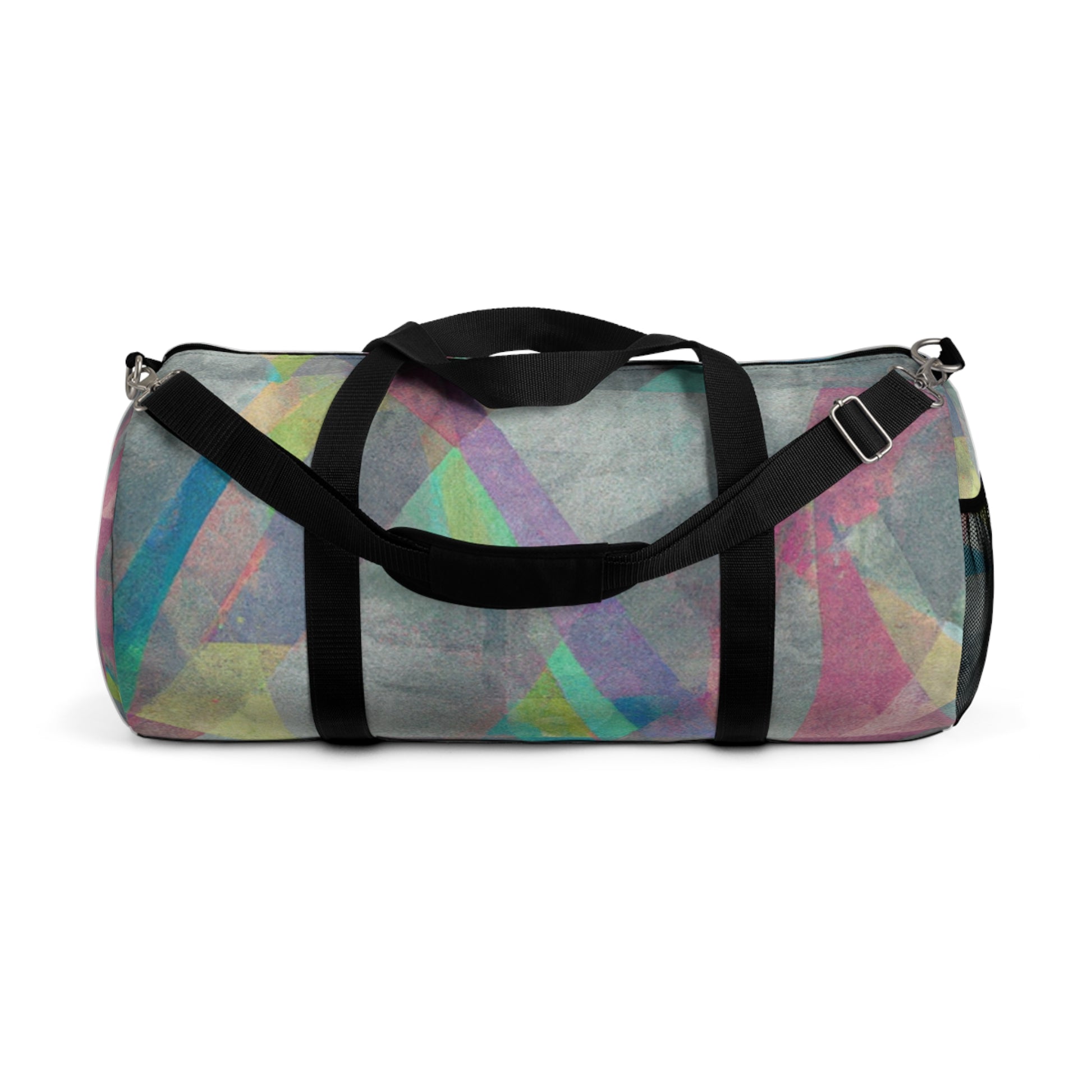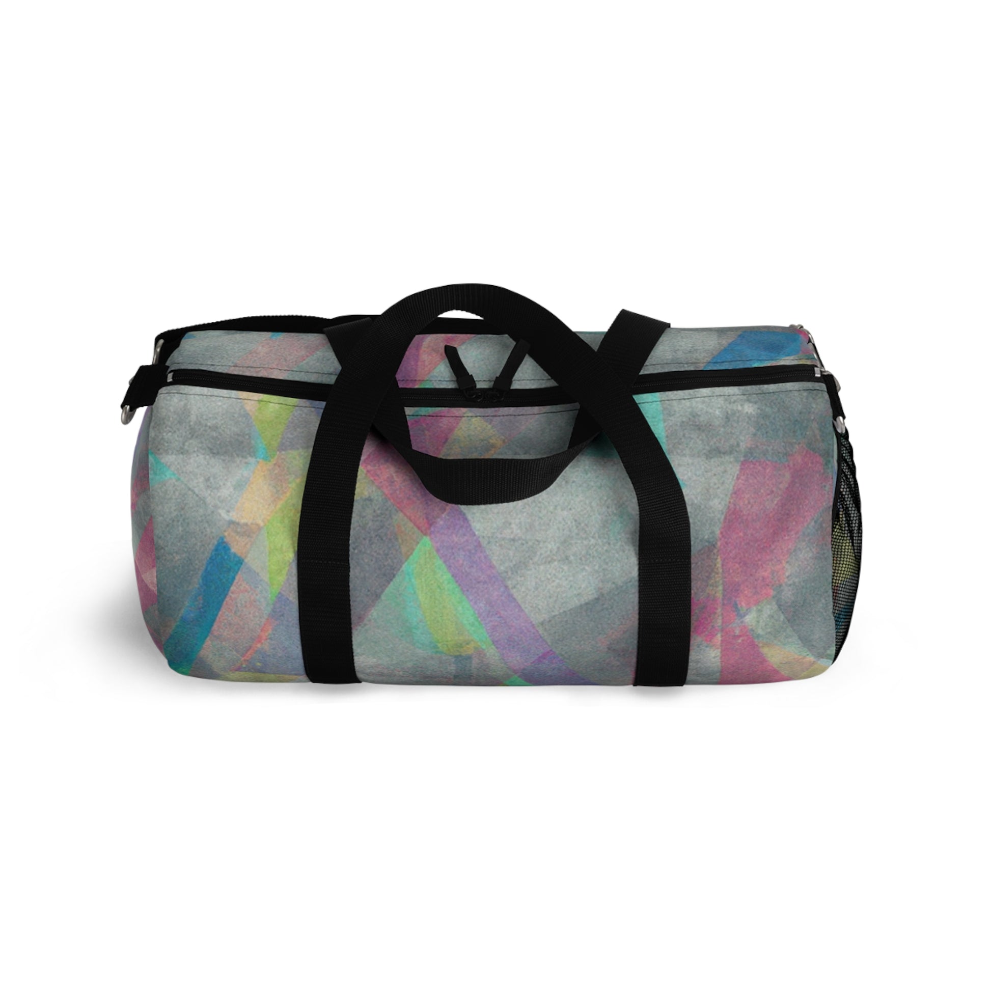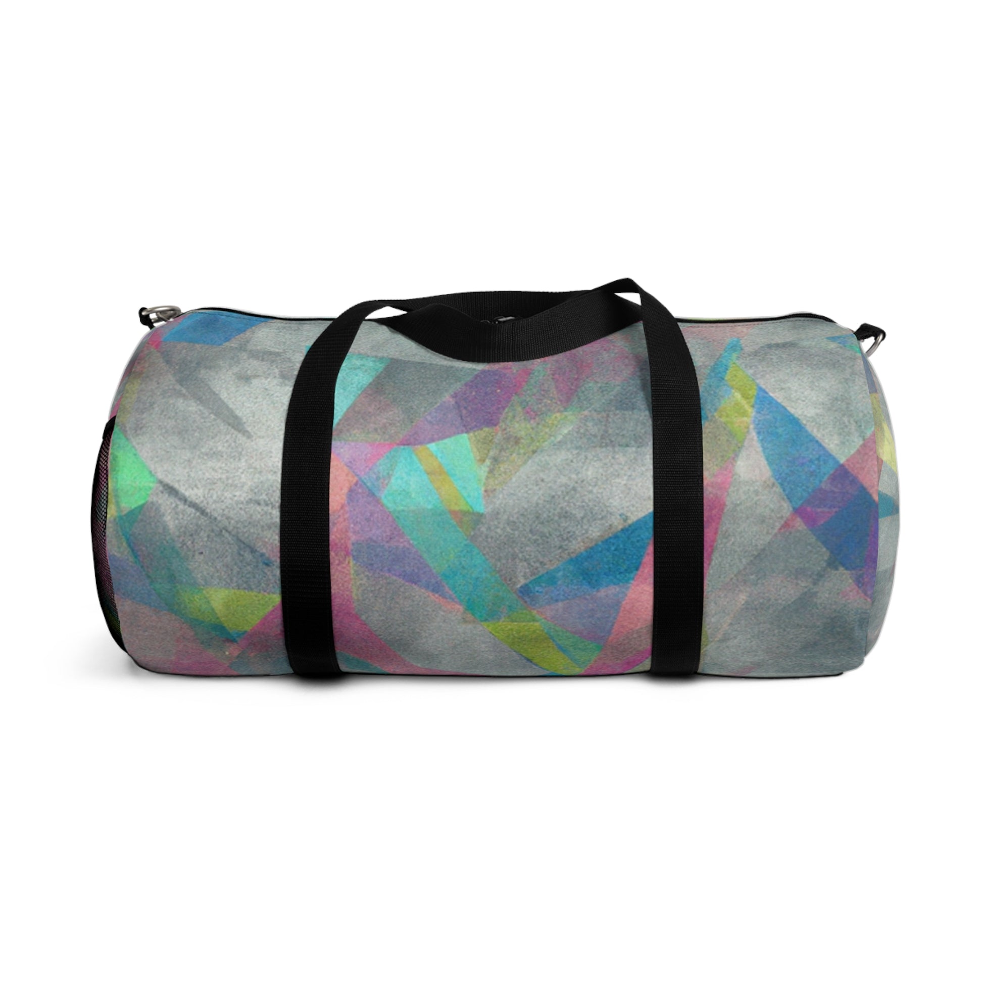This stylish duffel bag features a unique abstract geometric pattern, and cool colors perfect for digital art designs. It's built with practicality in mind, with plenty of pockets and compartments for organized carrying - so you can easily store your laptop and all the supplies you need for a full day out. #duffelbag #geometrictextured #fashionaccessories #coolcolors #digitalart #stylishbag #practicalstorage #contemporarydesign #abstractpattern #organizedcarrier #travelaccessories