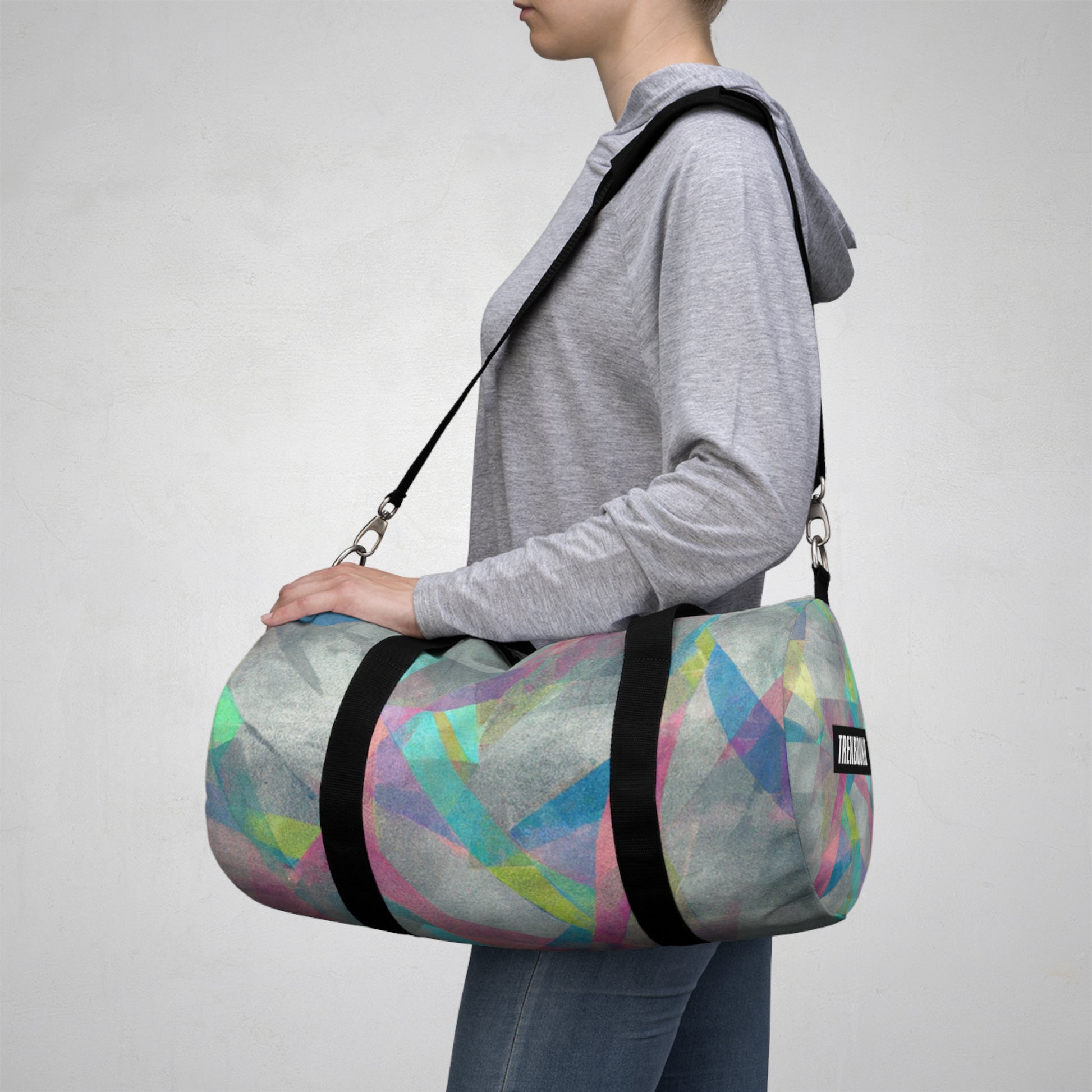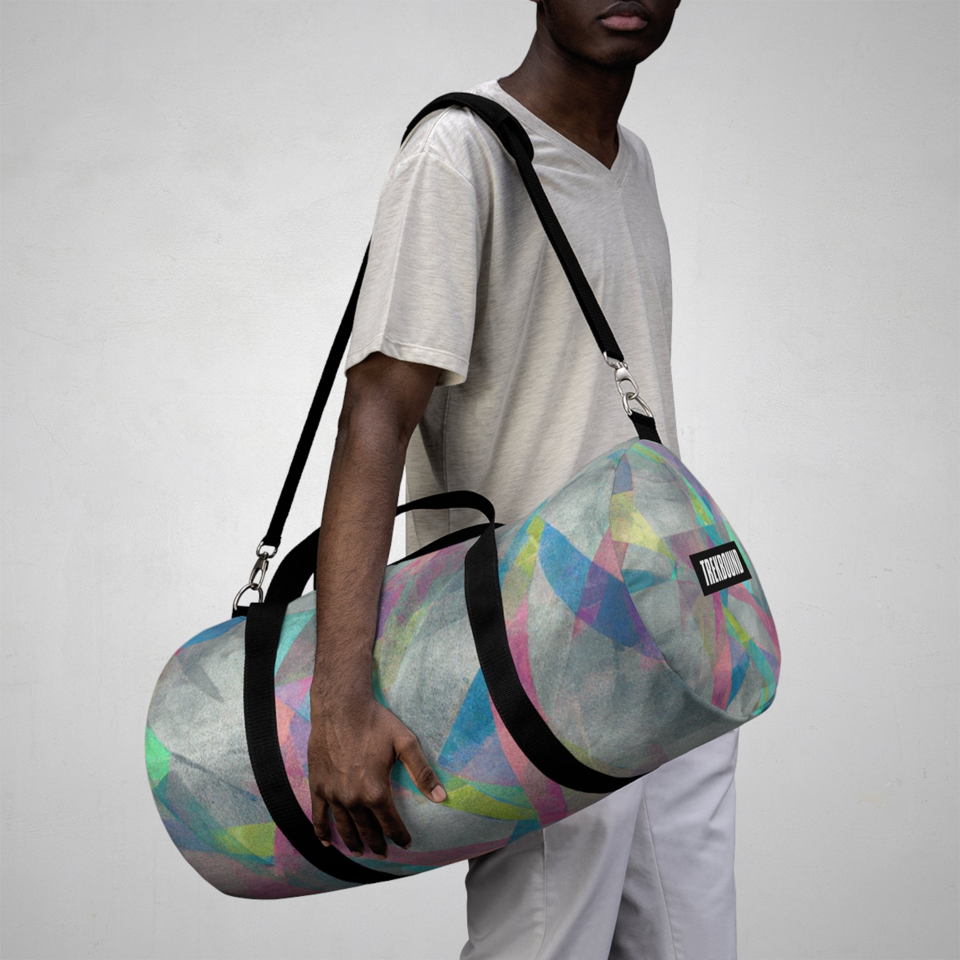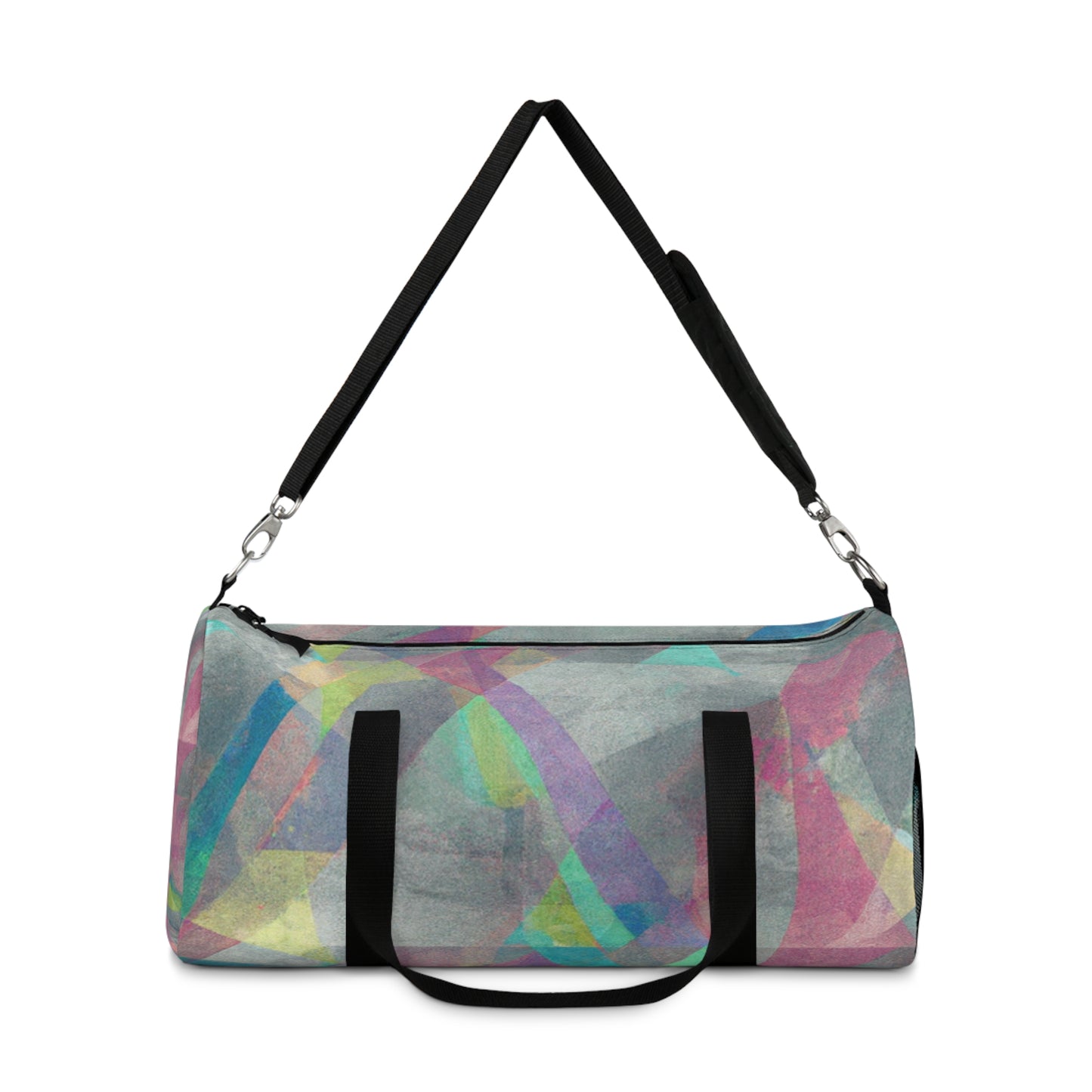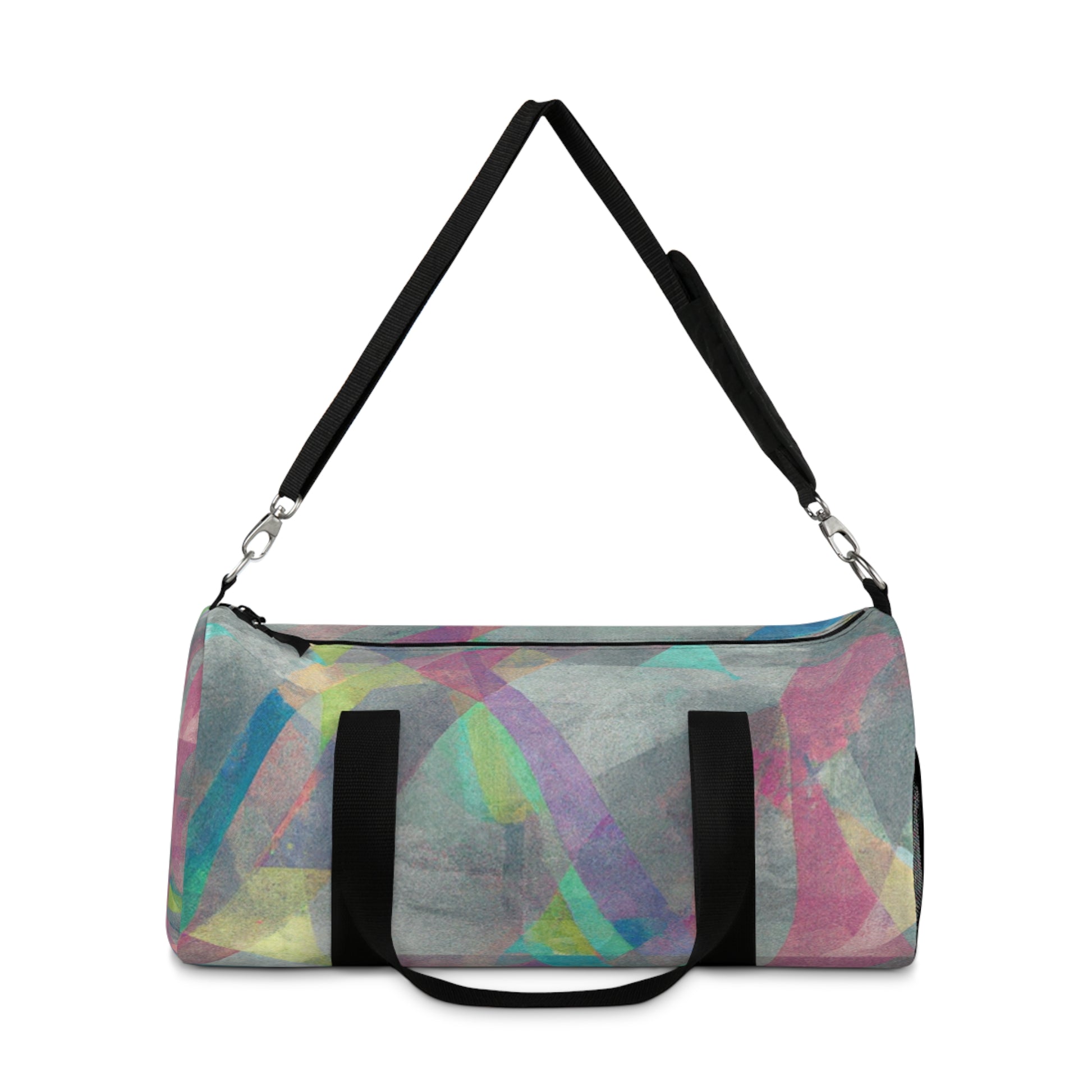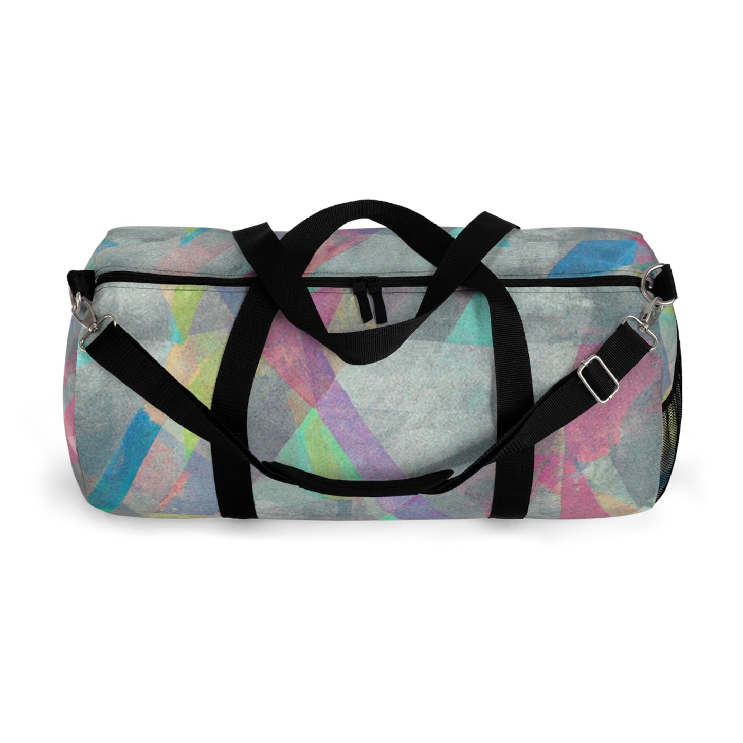 This stylish duffel bag features a unique abstract geometric pattern, and cool colors perfect for digital art designs. It's built with practicality in mind, with plenty of pockets and compartments for organized carrying - so you can easily store your laptop and all the supplies you need for a full day out. #duffelbag #geometrictextured #fashionaccessories #coolcolors #digitalart #stylishbag #practicalstorage #contemporarydesign #abstractpattern #organizedcarrier #travelaccessories