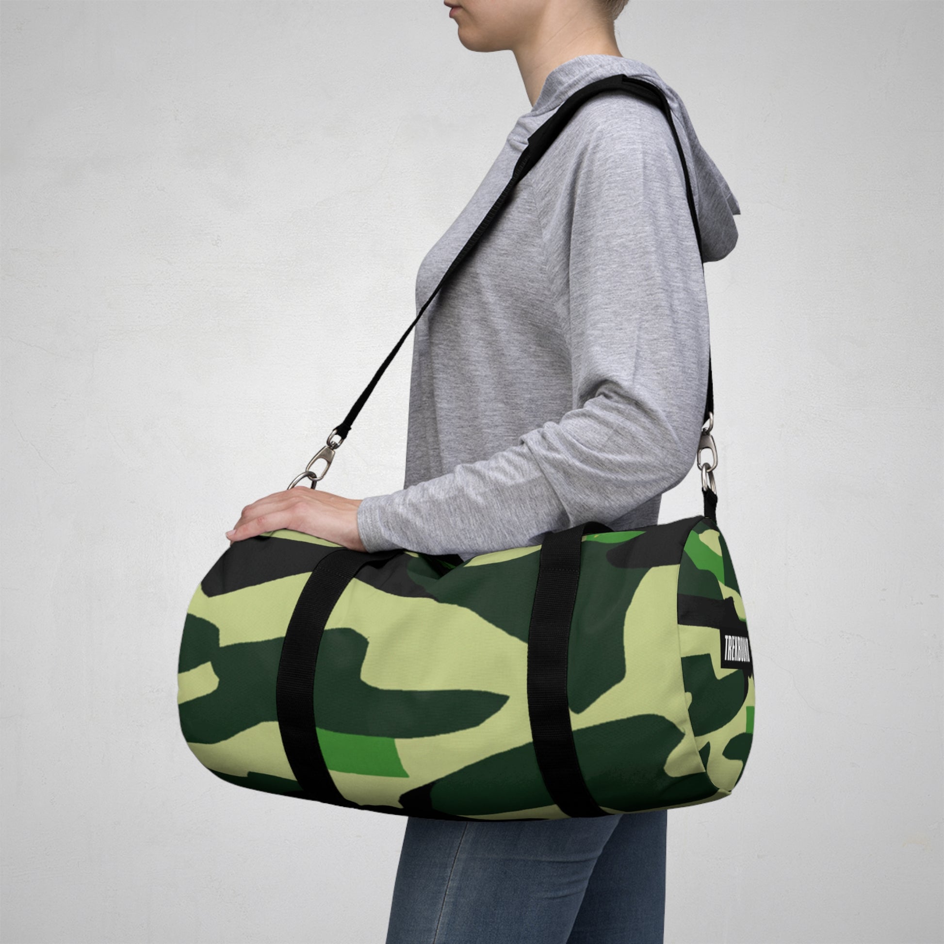 This duffel bag is perfect for those who like a bold statement. Its contemporary camouflage pattern with military colors creates an on-trend yet masculine look that turns heads. The bag is made with high quality materials with just the right amount of padding and compartments, so you know your valuables will be safe and secure. Make a statement with this stylish and functional duffel and turn heads wherever you go. #CamoDuffel #Style #Functional #Fashion #Functionality #MilitaryColors #BoldStyle #ContemporaryCamo #HeadTurner #OutdoorActivities #Masculine