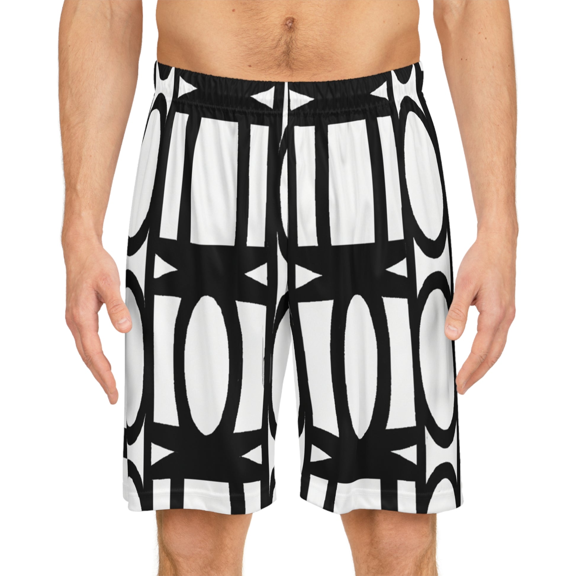 This beautiful, original pair of shorts of geometric surface pattern design is the perfect way to make a bold statement.. The black and white design is eye-catching and captivating. #SurfacePatternDesign #GeometricDesign #BlackAndWhite #Modern #AbstractDesign #Geometry #Artwork
