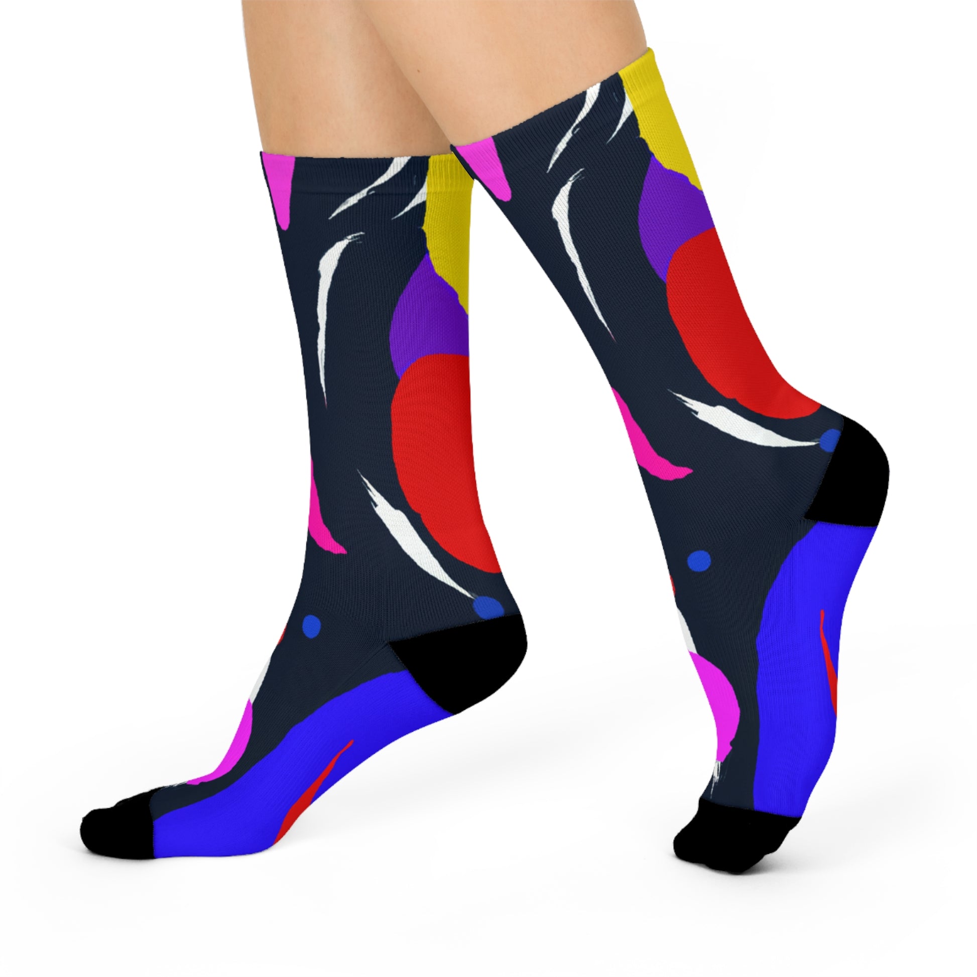 Introducing our cushioned socks with contemporary abstract painting designs in neon colors for jackets! These innovative socks provide great arch support and comfort. Brighten up your wardrobe with these lively and vibrant fashion pieces. #CushionedSocks #AbstractPainting #NeonColors #FashionPieces #RunningSocks #ArchSupport #ContemporaryDesign #Comfort #Vibrant #FashionForward #Innovative
