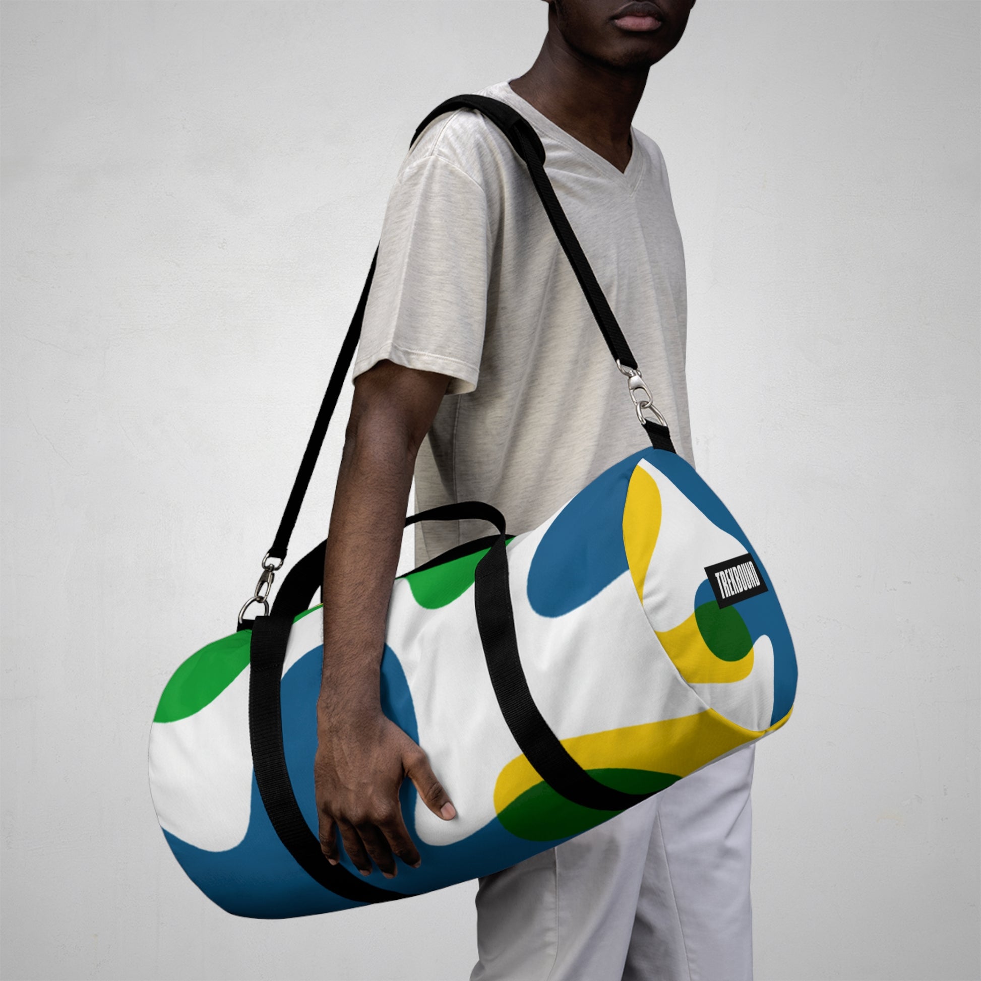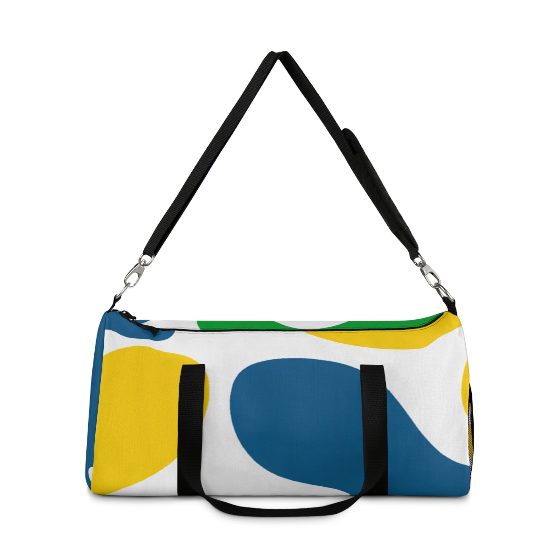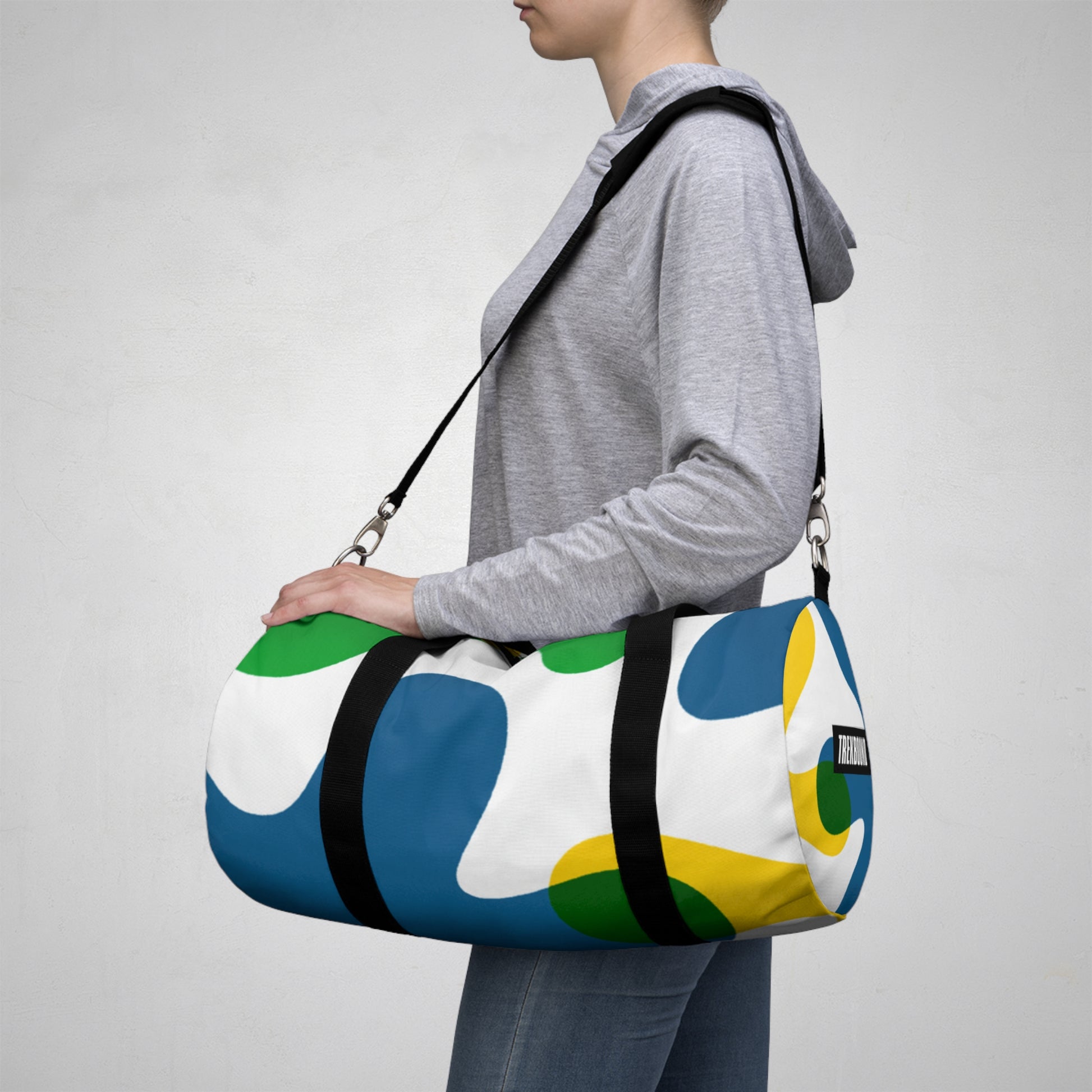 This stylish duffel bag adds a fashionable flair to your everyday look. The abstract geometric pattern comes in cool colors and adds a unique twist to your bag. Its spacious interior and zippered pockets make it the perfect size for everything you need and comes with an adjustable padded shoulder strap for comfort and convenience. Carry all of your essential items in style and comfort with this duffel bag. #AbstractGeometry #GeometricPattern #CoolColours #FashionableBag #SpaciousInterior #ZipperedPockets #PaddedShoulderStrap #StylishBag #Convenient #EverydayLook #EssentialItems
