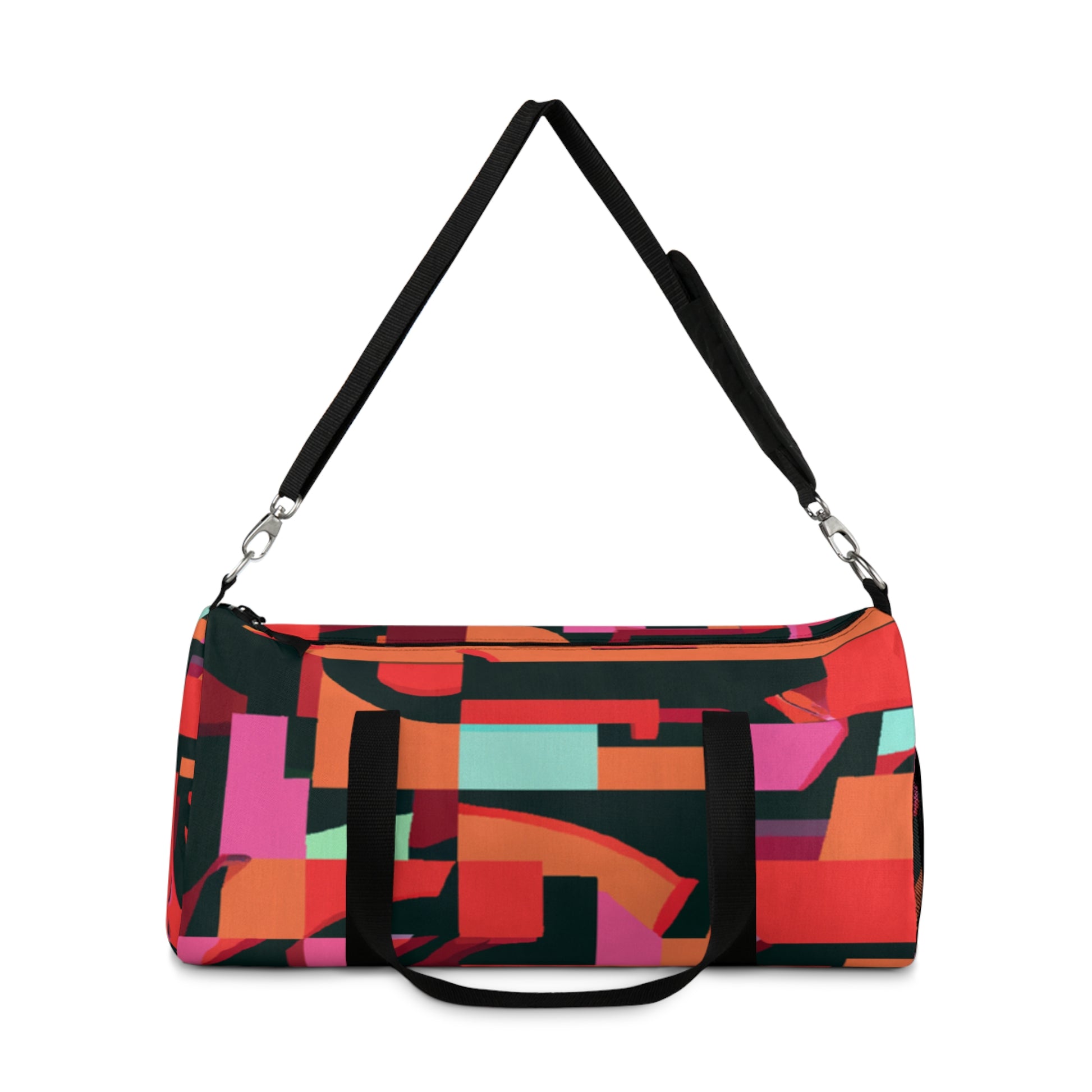 This stylish geometric duffel bag is the perfect bag for your digital art designs. The vibrant textured abstract pattern with cool colors is eye-catching and sure to draw attention. The sturdy construction will keep all your digital design supplies safe. This modern duffel bag can be dressed up or down for any occasion. Look instantly stylish with this and make your digital designs stand out. #geometric #textured #abstract #modern #pattern #vibrant #colors #digitaldesign #style #sturdy #safe