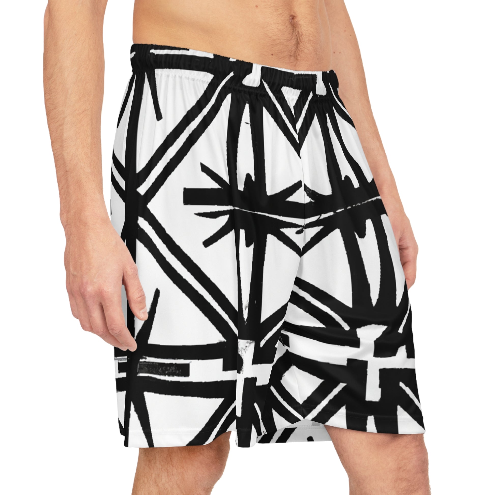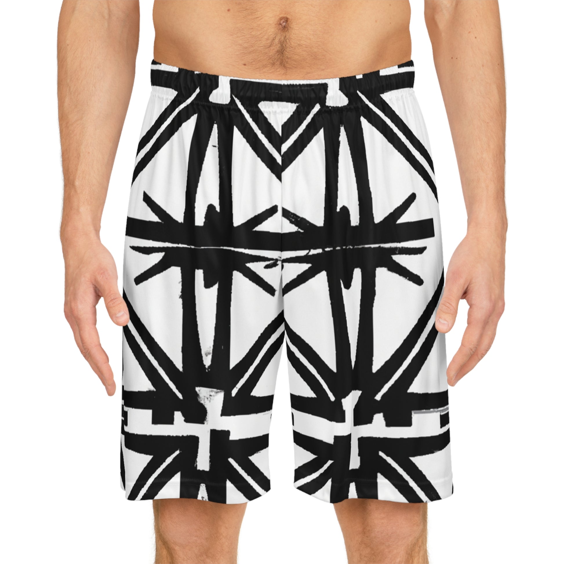 Dive deep into the sophisticated world of black and white with these shorts. Boldly designed with a captivating geometric pattern that oozes elegance. An adjustable drawstring waistband ensures maximum comfort and the perfect fit every time. Stay cool while looking amazing in these lightweight shorts. #style #pattern #blackwhite #shorts #geometry #surface #design #summervibes #comfystyle #streetchic #fashion