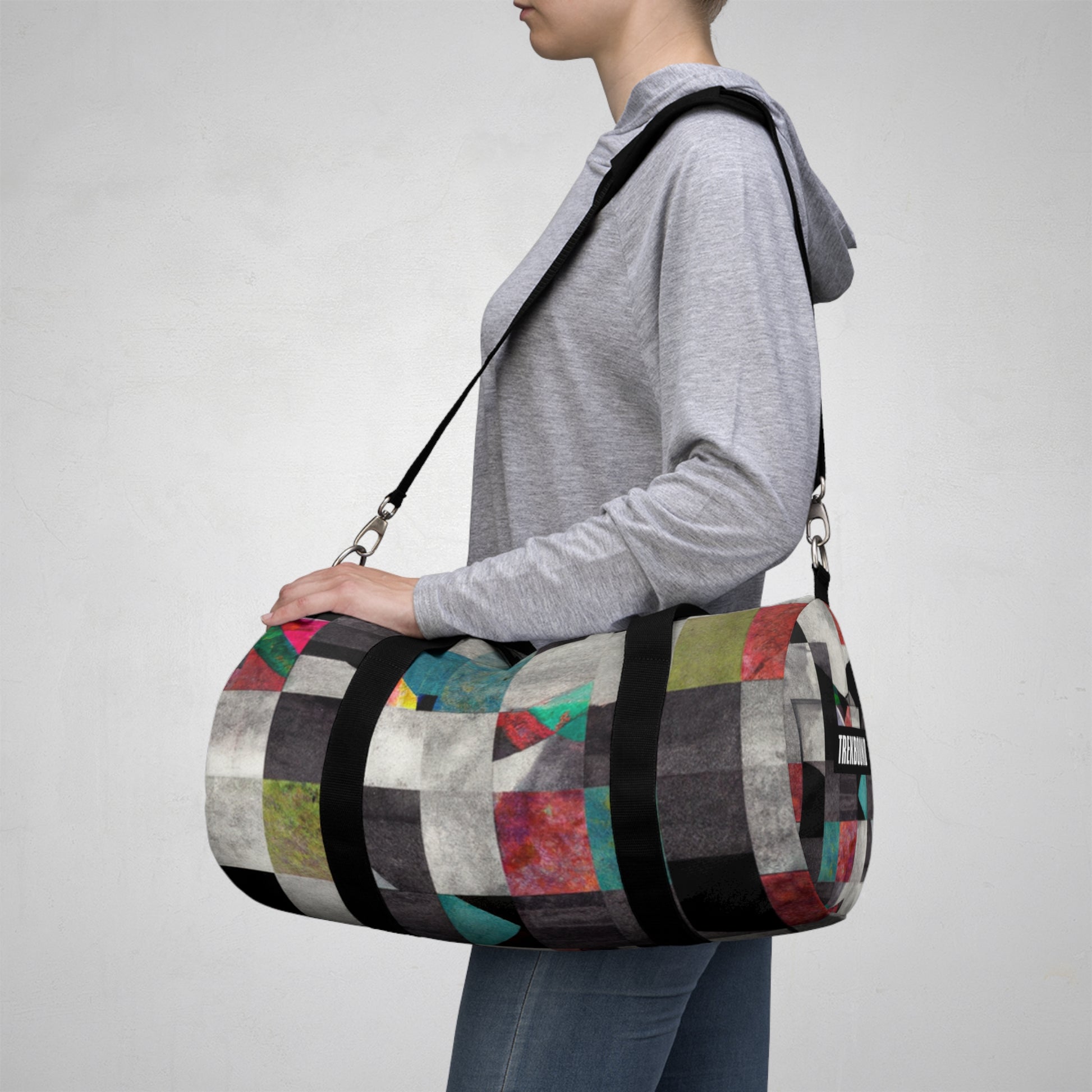 This stylish duffel bag features an abstract geometric textured pattern in cool colors, making it an ideal choice for digital art designs! Its spacious interior is perfect for carrying your laptop, phone, books, and other everyday essentials, and its adjustable straps and top handle give you plenty of options to transport your items in comfort and style. #style #duffelbag #bag #texturedpattern #coolcolors #digitalart #laptop #travelbag #geometric #abstract #designs #luxury #comfortable