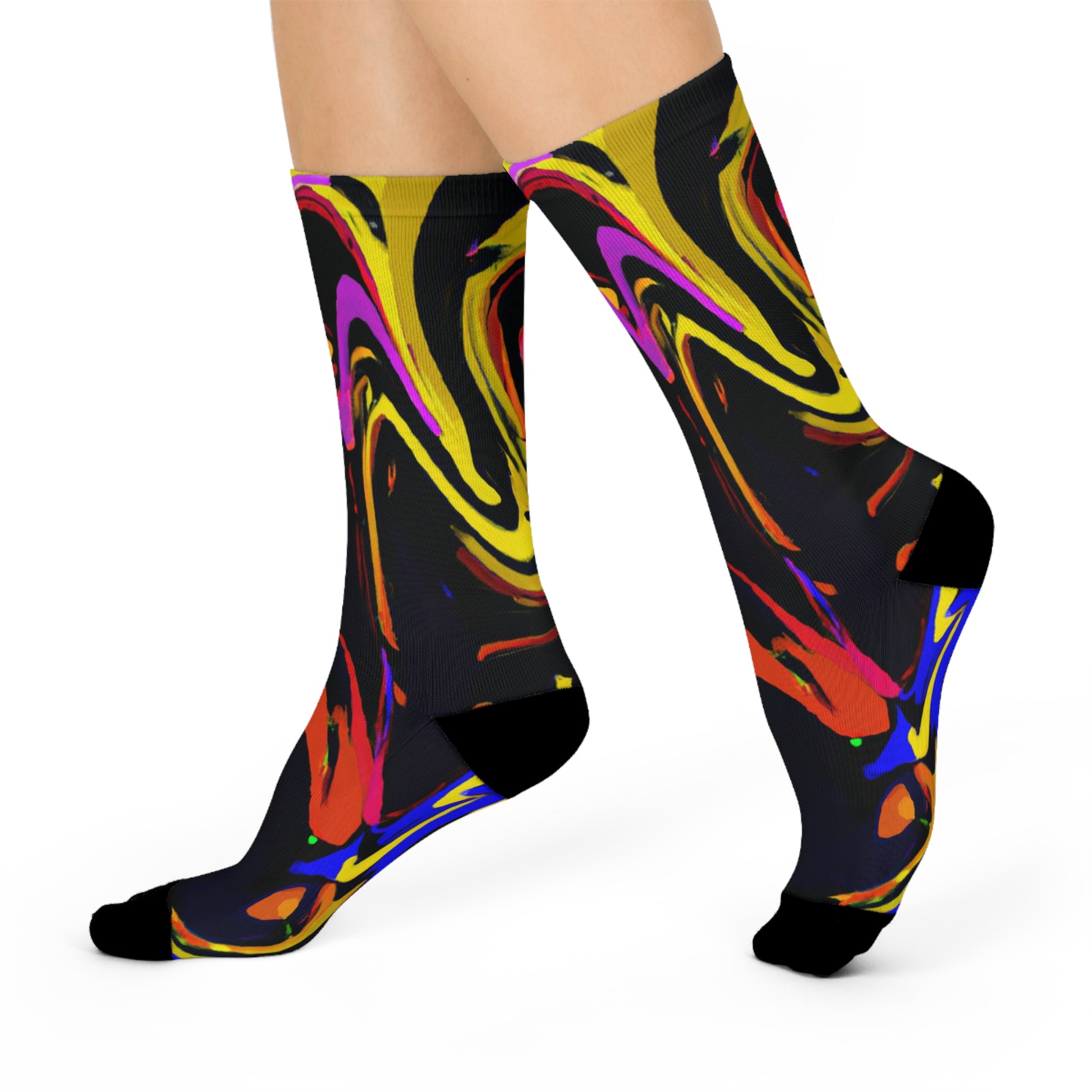 Fashionable yet comfortable, these cushioned socks combine contemporary abstract painting designs with an electrifying mix of neon colors! Now you can show your style while having your feet cushioned against the elements. Featuring a perfect fit for most feet sizes and intended for outdoor activities, this sock set is sure to be a hit with jackets and streetwear fans alike. #style #neoncolors #outdoors #socks #fashion #cushioned #fit #footwear #street #comfortable #abstractpainting